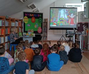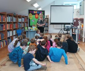 W dniu 16 kwietnia, w Bibliotece przy ul. Bożnicznej 21 odbyły się zajęcia edukacyjne zatytułowane „Wielkanocne cuda i tradycje”,przygotowane dla dzieci z grupy 0 "C" ze Szkoły Podstawowej nr 2 w Łęcznej. Spotkanie rozpoczęło się w świątecznym nastroju – dzieci wspólnie wysłuchały piosenki „Są takie święta”, która wprowadziła wszystkich w klimat zbliżającej się Wielkanocy. Następnie uczestnicy zajęć mieli okazję obejrzeć bajkę „Wielkanocny zajączek” w formie japońskiego teatrzyku obrazkowego Kamishibai, co wzbudziło duże zainteresowanie. Kolejnym punktem zajęć był film edukacyjny pt. „Wielkanoc dla dzieci”, z którego wszyscy dowiedzieli się wielu ciekawostek na temat tradycji i zwyczajów wielkanocnych. Nie zabrakło także aktywności ruchowych, zabawy „Prawda – fałsz”, a także zagadek wielkanocnych, które pobudziły dziecięcą wyobraźnię i kreatywność.