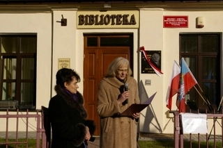 Odczytanie przez Przewodniczącą Rady Miejskiej Panią Krystynę Borkowską aktu nadania bibliotece imienia Zbigniewa Herberta.