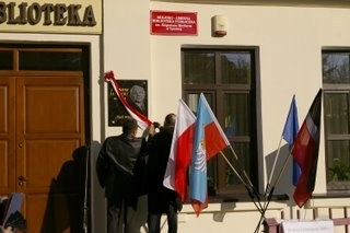 Odsłonięcie tablicy pamiątkowej przez Pana Krzysztofa Pawlosa Dyrektora Gabinetu Wojewody Lubelskiego oraz Burmistrza Łęcznej Pana Teodora Kosiarskiego.