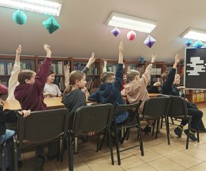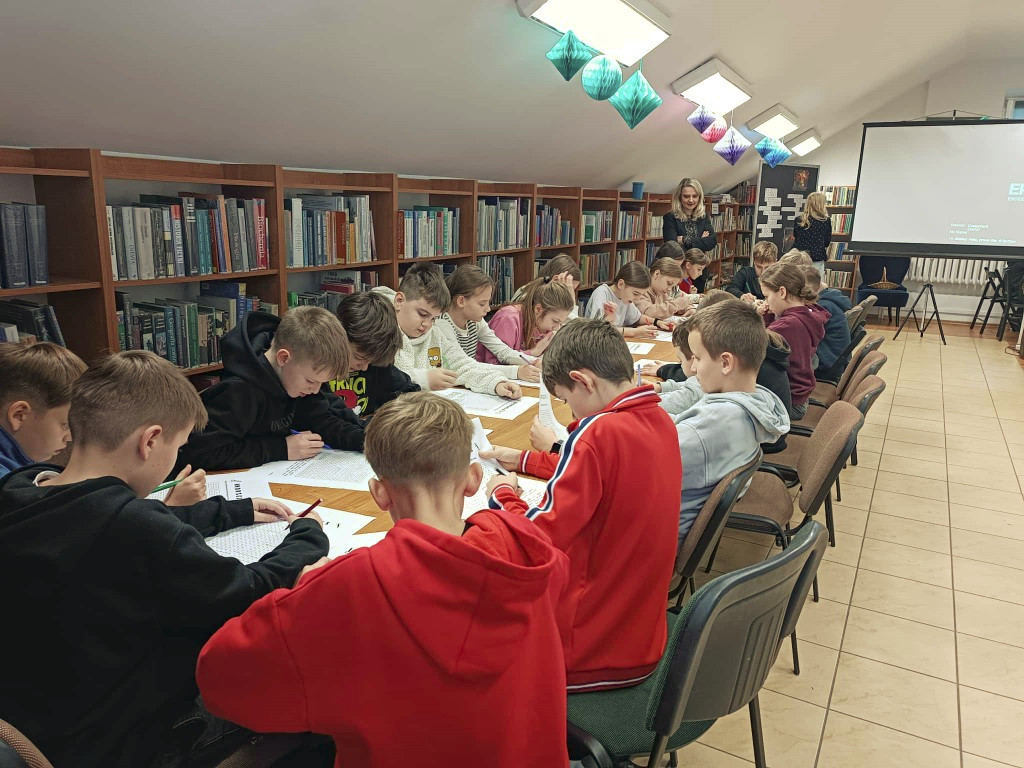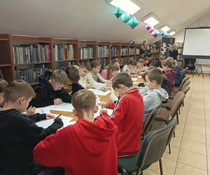 Podczas tegorocznych obchodów andrzejek nasza Biblioteka przy ul. Bożnicznej 21 gościła klasę 4e ze Szkoły Podstawowej nr 2 w Łęcznej wraz z wychowawczynią. Uczniowie brali udział w specjalnie zorganizowanych andrzejkowych zabawach. Na początek dzieci zmierzyły się z krzyżówką i wykreślanką, w których pojawiły się hasła i wyrazy związane z tradycjami andrzejkowymi. Następnie przyszedł czas na to, co w andrzejki najważniejsze – wróżby! Uczniowie poznawali imiona przyszłego męża lub żony, sprawdzali, kto pierwszy wyjdzie za mąż lub ożeni się, a także próbowali szczęścia w rzucie monetą do miski z wodą, który według zwyczaju przepowiada powodzenie w najbliższym czasie. Spotkanie zakończyła zabawa ruchowa – wspólny układ taneczny, który dostarczył wszystkim mnóstwo śmiechu i pozytywnej energii.