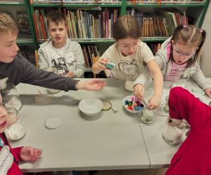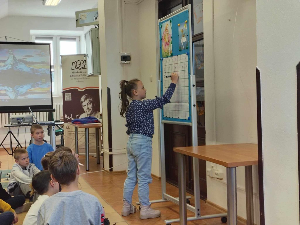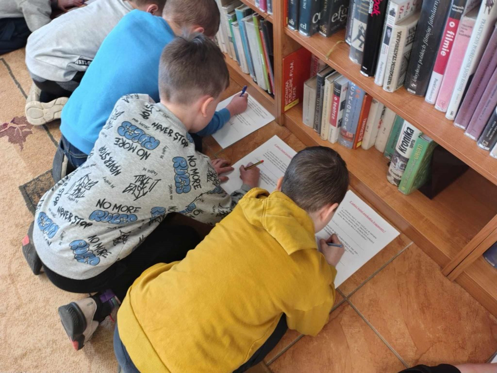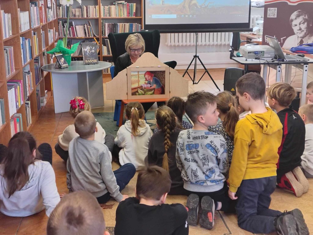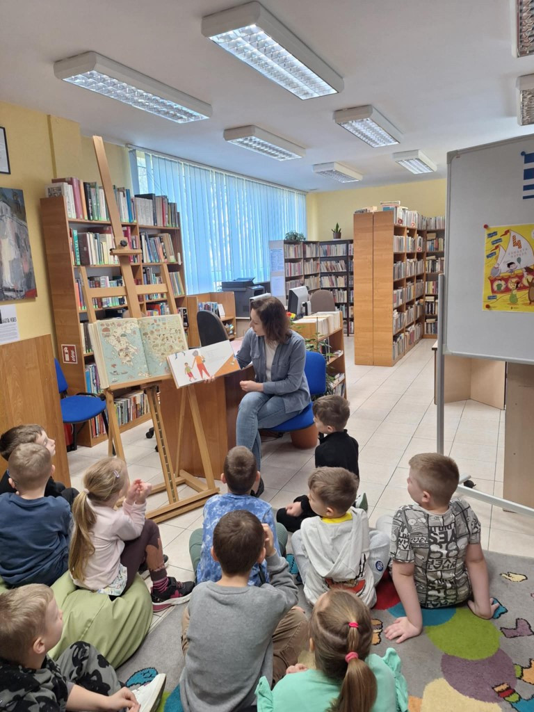 Dnia 28 marca Filia nr 1 miała przyjemność gościć klasę 0A ze Szkoły Podstawowej nr 2 wraz z wychowawczynią Panią Emilią Romaniuk- Formelą. Spotkanie odbyło się w ramach projektu Nasza Mała Biblioteka: https.//www.ezop.com.pl/nasza-mala-biblioteka/. Tym razem wybraliśmy się w podróż do słonecznej Grecji. Dzieci wysłuchały książki autorstwa Pani Ewi Jerokosty pt. „Rzepy”. Opowieść o chłopcu, który mierzy się z wyzwaniem zawiązania sznurowadeł była furtką do świata emocji i myśli uczestników spotkania. Druga część zajęć miała charakter praktyczny. Każdy otrzymał egzemplarz „Łamigłówek Literackich”, pełen zadań nawiązujących do treści omawianej książki. Na zakończenie dzieci miały możliwość doskonalenia sztuki wiązania na przygotowanych do tego celu „kolorowych bucikach”.