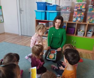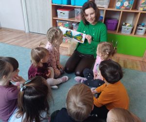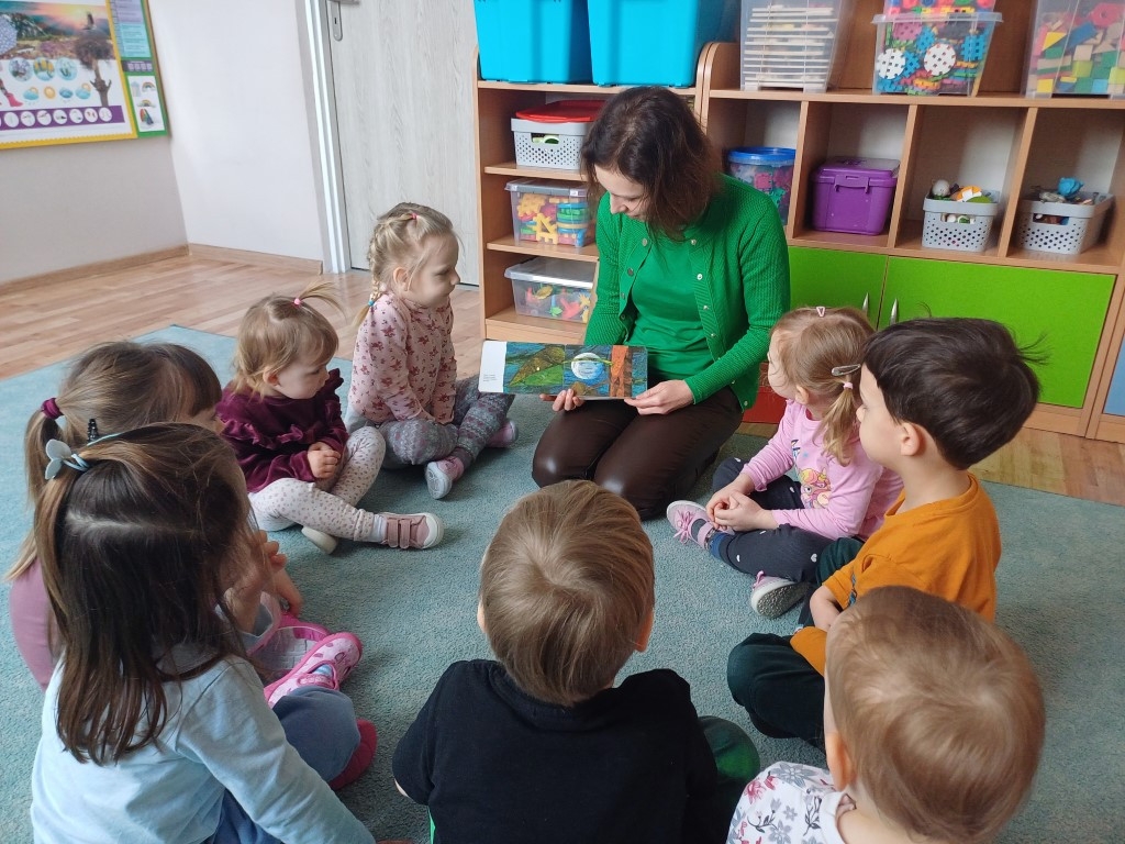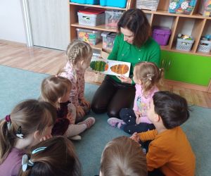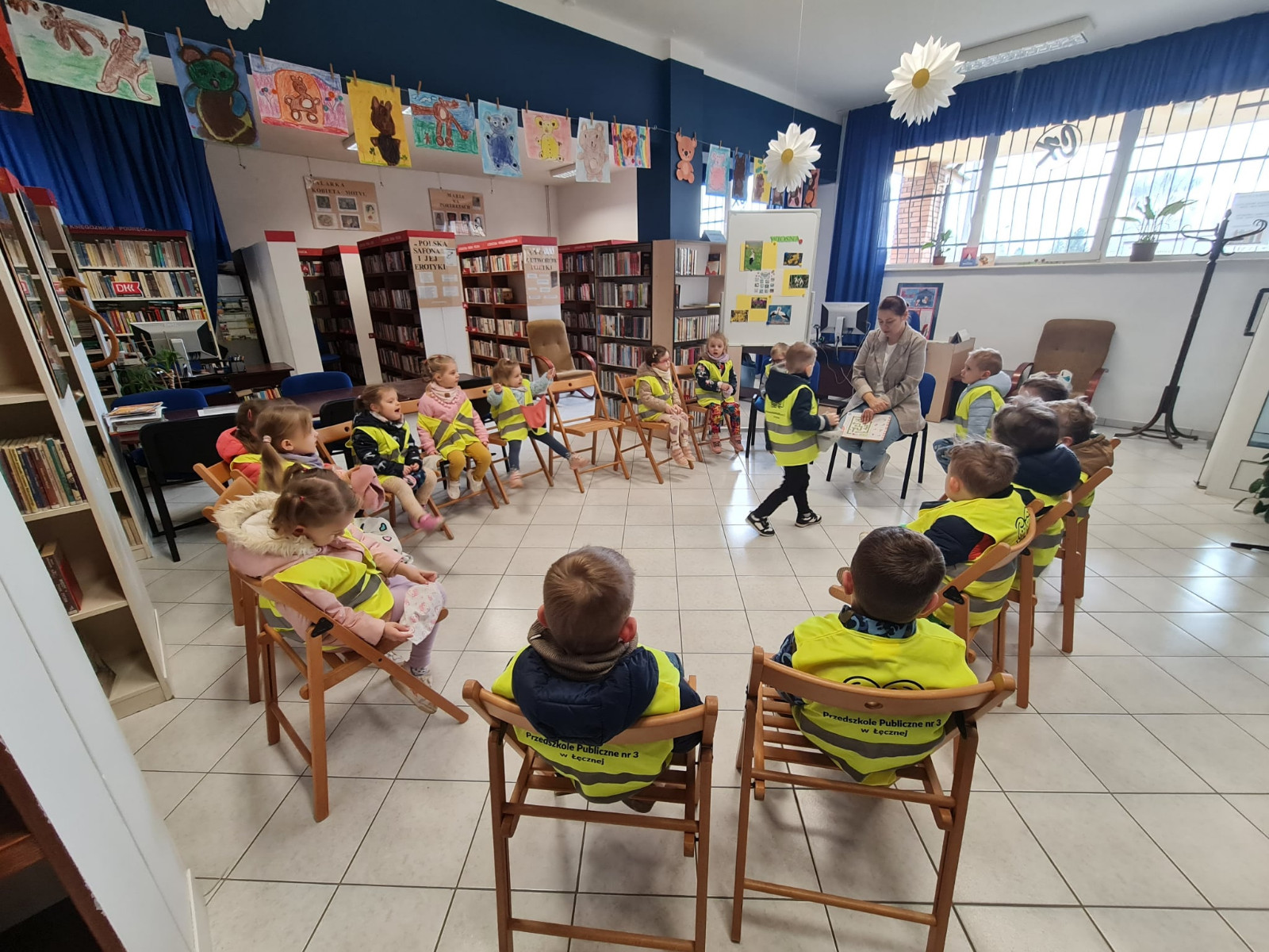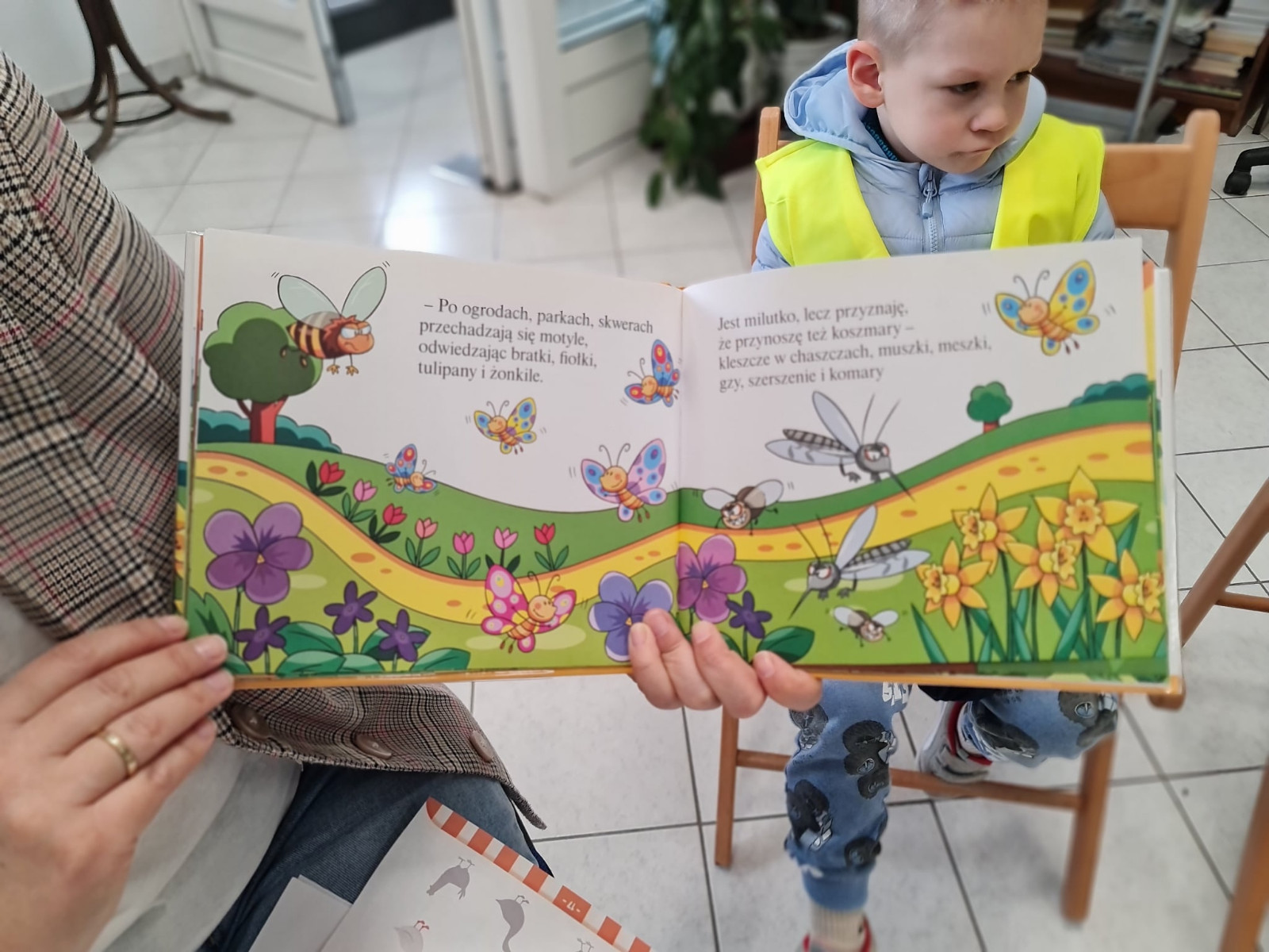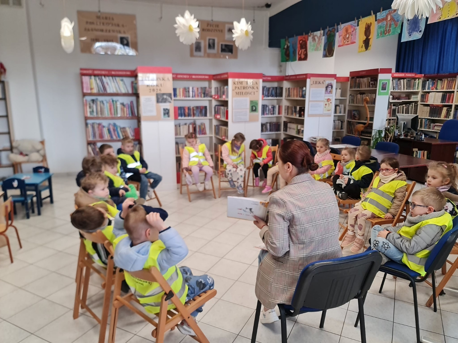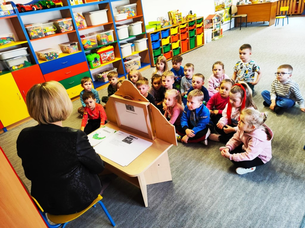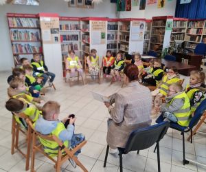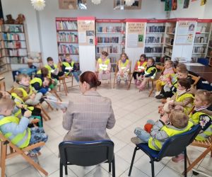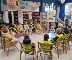 z Przedszkola Mali Odkrywcy wysłuchały książki autorstwa Erica Carle „Bardzo głodna gąsienica”. Przedszkolaki poznały cykl rozwojowy motyla oraz znaczenie prawidłowego odżywiania. Maluchy aktywnie uczestniczyły w spotkaniu i skorzystały z możliwości wypożyczenia książeczek do domu.