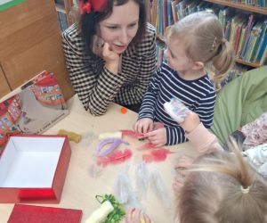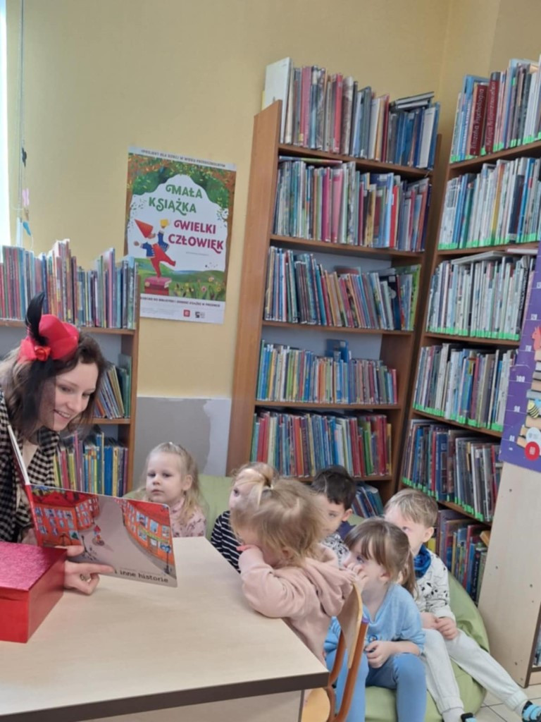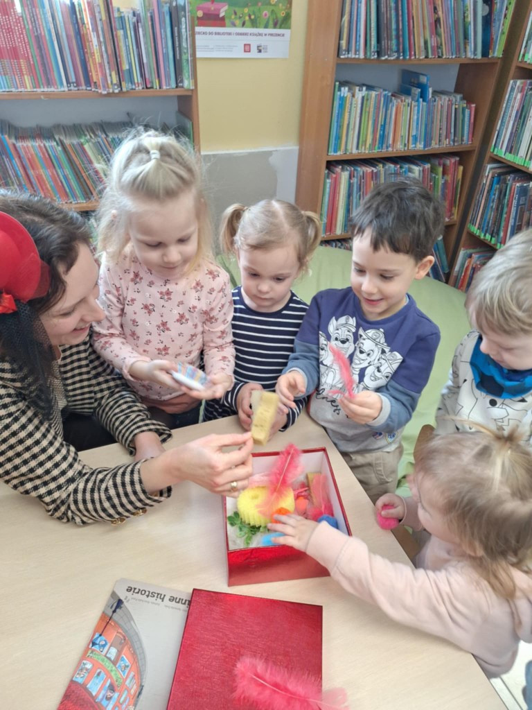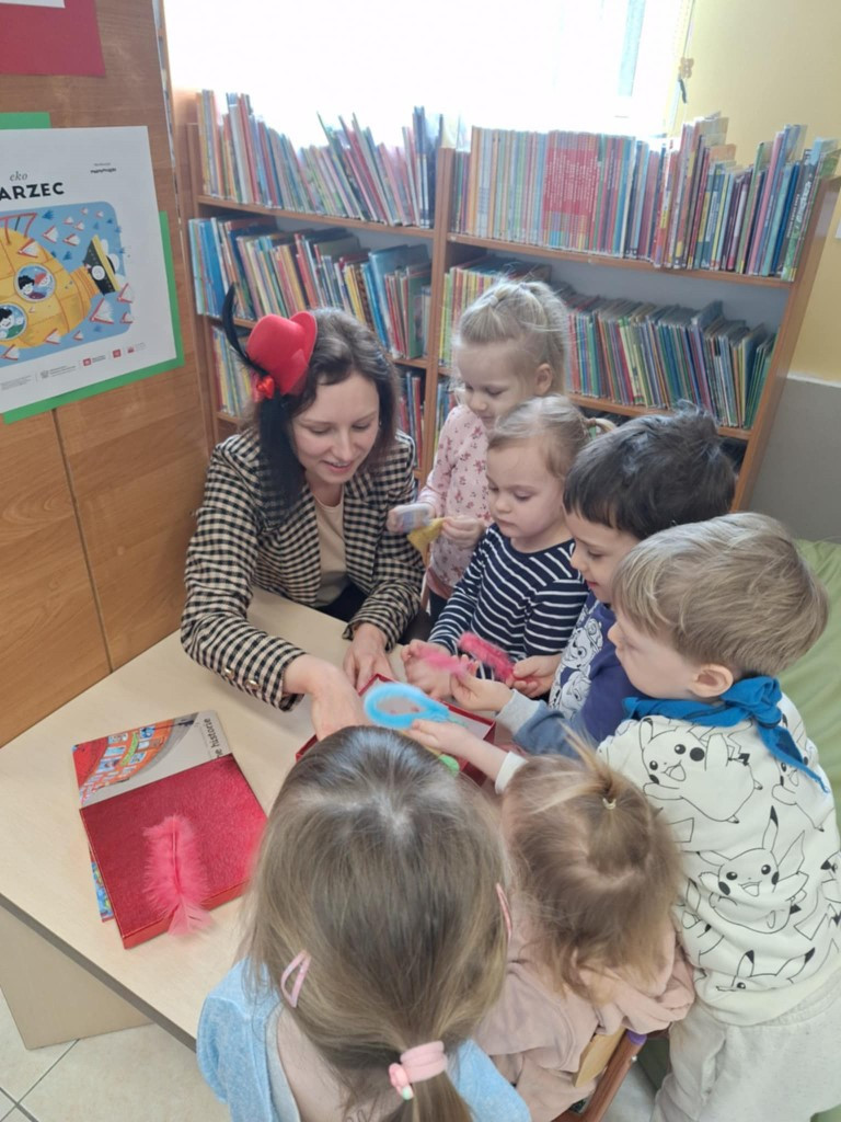 Dnia 10 marca Filia nr 1 miała przyjemność gościć dzieci z Przedszkola Niepublicznego Mali Odkrywcy. Bibliotekarka, p. Monika, przeczytała dzieciom wiersz autorstwa Agnieszki Glinko pt.” Ciotka Klotka”. Maluchy słuchały wiersza z ogromnym zainteresowaniem, a przygotowane przez bibliotekarkę rekwizyty były doskonałym dopełnieniem głośnego czytania. Dzieci nie tylko słuchały, ale również aktywnie uczestniczyły w zabawie. Przedszkolaki miały możliwość testowania przyborów na gilgotki z „Sekretnego pudełka Ciotki Klotki”.