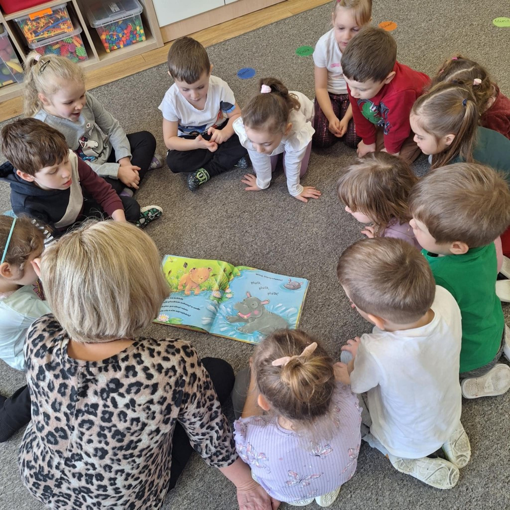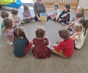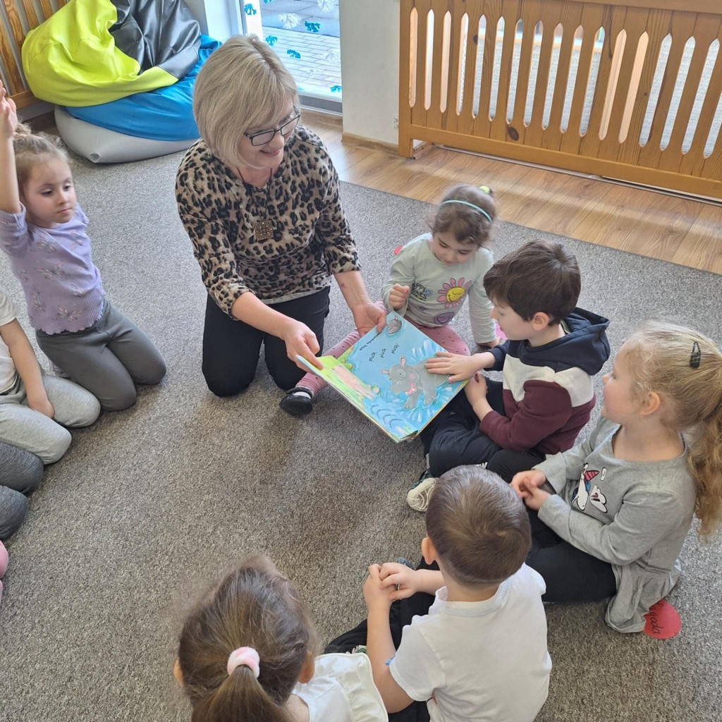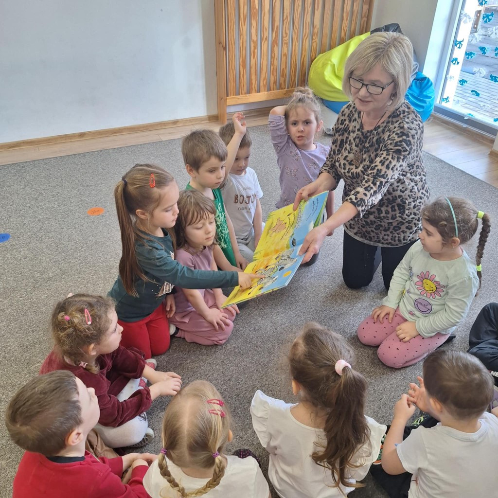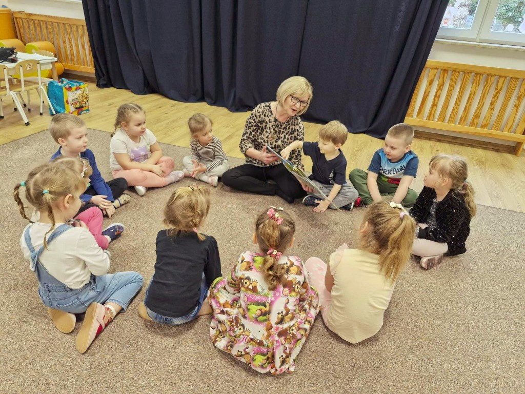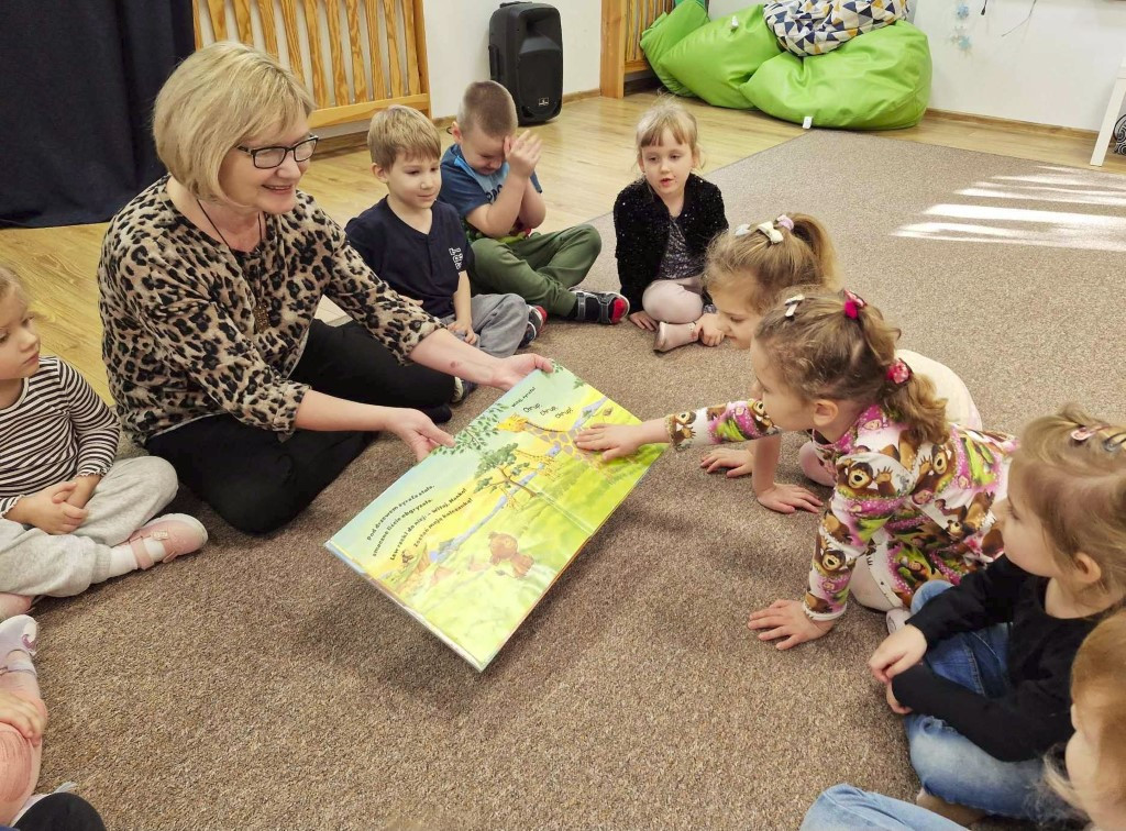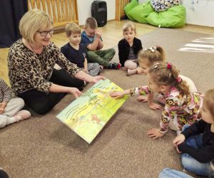 W dniu 29 stycznia 2025 r. bibliotekarka spotkała się z dziećmi w Przedszkolu "Casper" w Łęcznej na głośnym czytaniu. Spotkanie odbyło się w ramach akcji "Koszyk z książkami", któremu każdego miesiąca towarzyszy czytanie wybranej wcześniej książki. Podczas spotkania dzieci wysłuchały książeczki autorstwa I. Whybrow pt. "Przywitaj się ze zwierzątkami!". Przedszkolaki z ogromnym zainteresowaniem śledziły opowieść o lwiątku, które wędruje przez dżunglę w poszukiwaniu nowych przyjaciół. Dzieci z zaangażowaniem oglądały ilustracje, a także aktywnie brały udział w spotkaniu, chętnie odpowiadając na pytania bibliotekarki. W trakcie czytania dzieci miały niecodzienną okazję pogłaskać puszyste zwierzątka na każdej stronie książki, co jeszcze bardziej wciągnęło je w świat opowiadania. Przedszkolaki z radością naśladowały głosy zwierząt, które pojawiały się w książce, co wywołało mnóstwo uśmiechów i radości. Na zakończenie spotkania, w ramach akcji "Koszyk z książkami", każde dziecko miało okazję wybrać książeczkę, którą mogło zabrać do domu. To świetna okazja, by rozwijać pasję do książek i zachęcać najmłodszych do dalszego odkrywania literackiego świata.