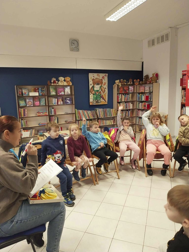 22 stycznia Filię nr 3 odwiedziły „Sówki” z Niepublicznego Przedszkola „Mali Odkrywcy”. Dzieci wysłuchały wierszyków i piosenek nawiązujących do Dnia Babci i Dziadka oraz obejrzały film edukacyjny na temat rodziny i szczególnej roli dziadków. Przedszkolaki zapoznały się również z książeczkami o niezwykłych babciach i dziadkach oraz opowiadały o swoich ciepłych uczuciach do swoich babć i dziadków. Dziękujemy za miłe spotkanie i zapraszamy na kolejne.