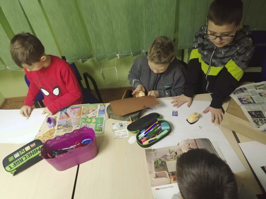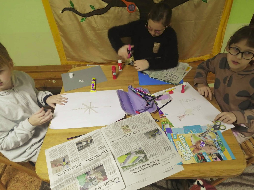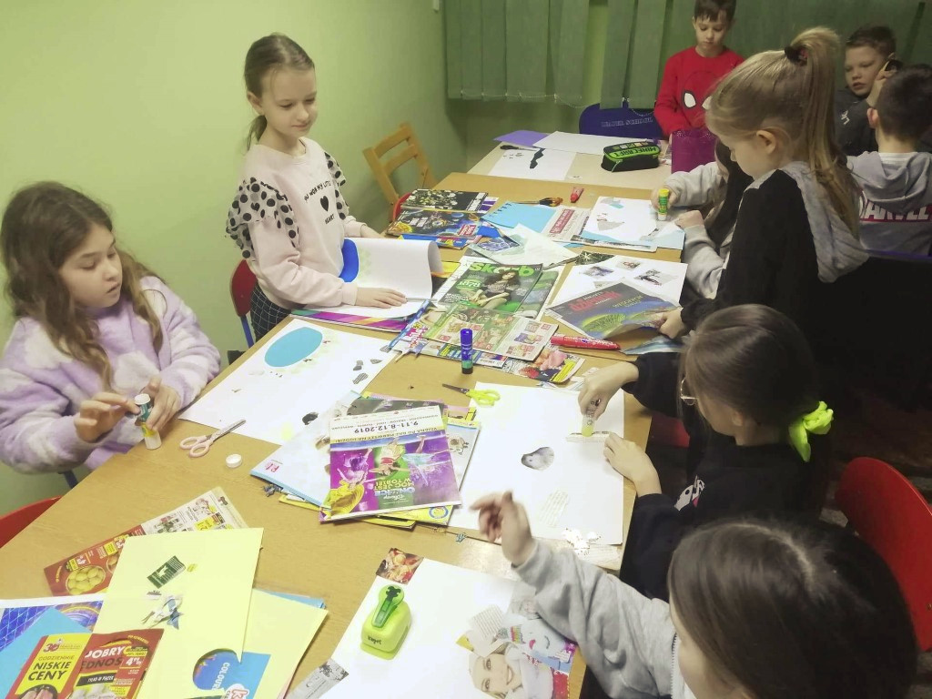 W piątkowy poranek 24 stycznia klasa III d przybyła do Filii nr 3 na warsztaty plastyczne w ramach „Klubu Kreatywnych”. Na początku uczniowie wysłuchali muzyki klasycznej – A. Vivaldi, „Zima” w celu wyciszenia się, skoncentrowania i zainspirowania. Następnie pracowali z zaangażowaniem. Wycinali, przyklejali, ozdabiali, aż każdy stworzył jedyną w swoim rodzaju, niepowtarzalną pracę techniką kolażu. Dziękujemy za odwiedziny i zapraszamy ponownie.