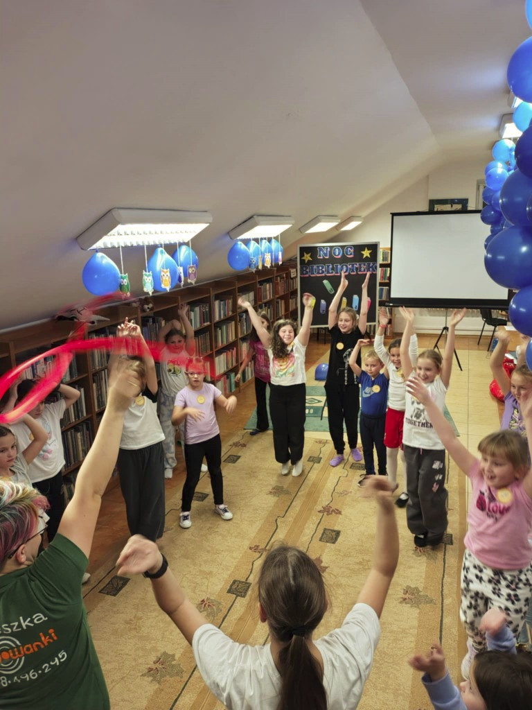 Po części literackiej przyszedł czas na aktywność ruchową i twórczą. Pani Agnieszka Cegłowska z Animowanek poprowadziła pełne energii zajęcia animacyjne. Było mnóstwo śmiechu, zabaw i kreatywności – dzieci wykazały się pomysłowością, sprytem i ogromnym entuzjazmem.
