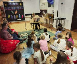 Nie zabrakło również bajkowych historii – dzieci z zainteresowaniem wysłuchały opowieści pt. „Noc w bibliotece”, w której bohaterowie pomagają zagubionemu krasnoludkowi odnaleźć drogę do jego bajki. Historia pełna ciepła i humoru pokazała, jak ważne są przyjaźń, odwaga i współpraca.