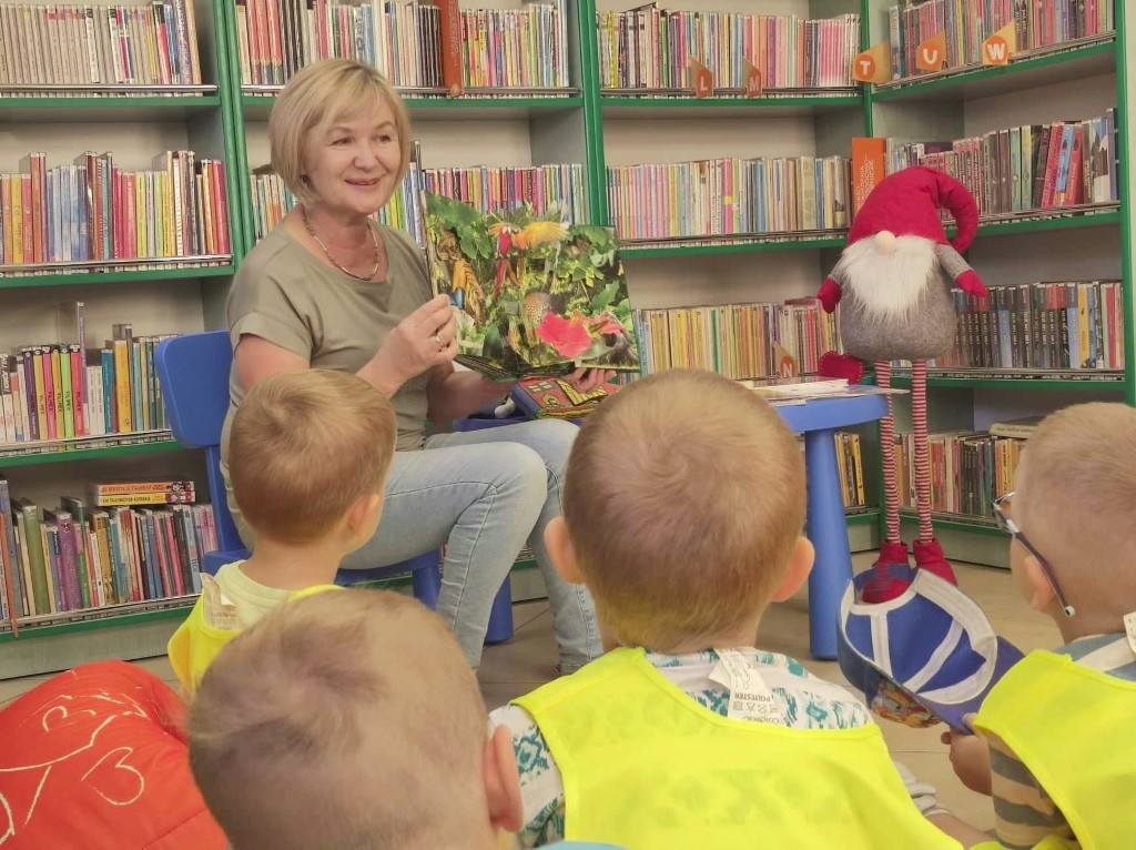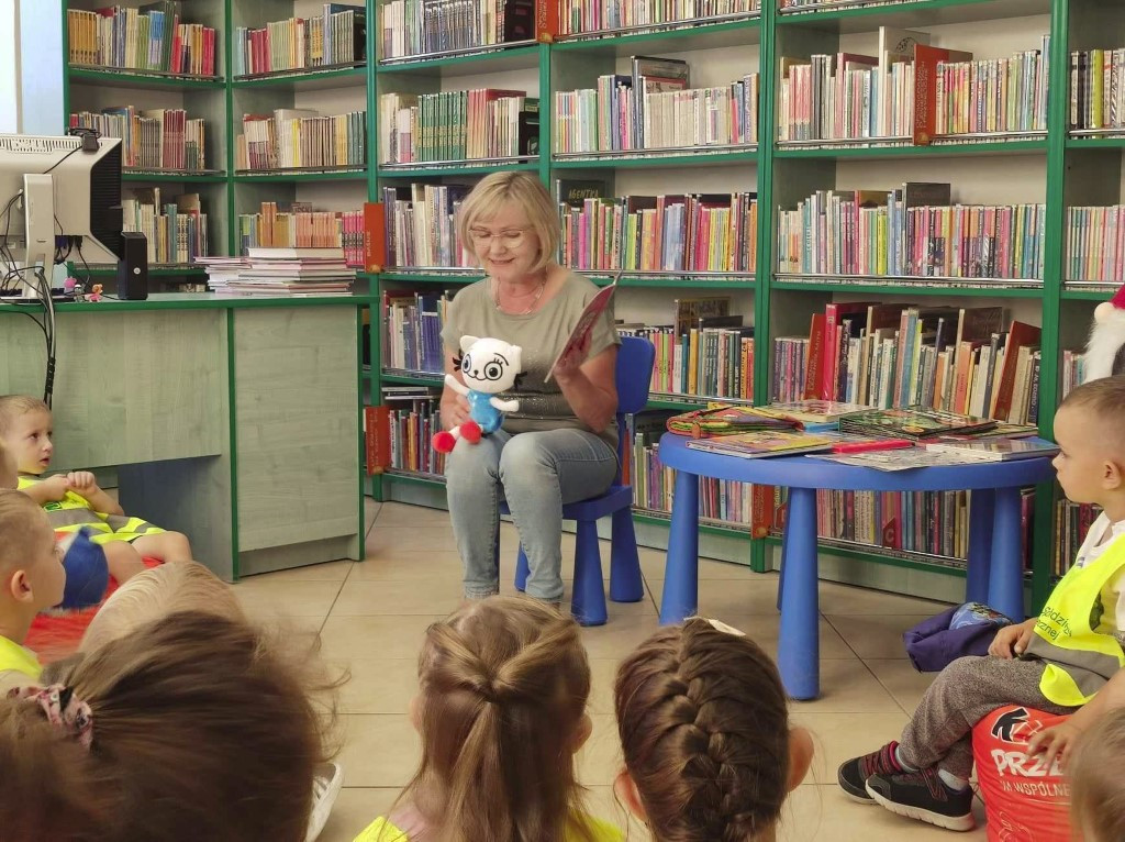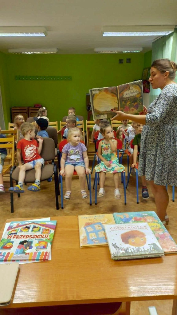 Po wakacyjnej przerwie bibliotekarka Ola z Filii Nr 1 odwiedziła najmłodszą grupę w Przedszkolu Mali Odkrywcy.