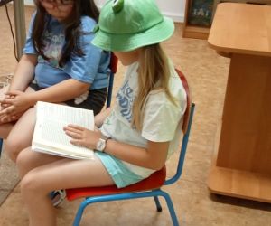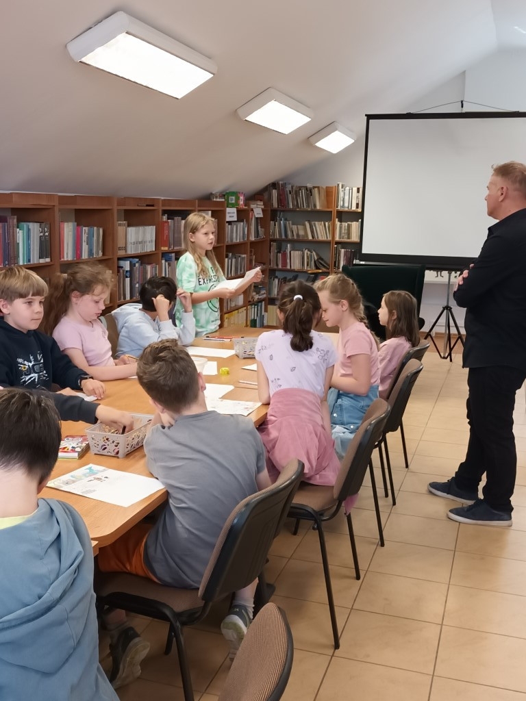 18 czerwca 2024 r. Filię nr 3 na ulicy Jaśminowej odwiedziła klasa III b z wychowawczynią panią Wiolettą Tchórzewską. W ramach podsumowania dotychczasowej współpracy z biblioteką Pani Ewa zaprosiła uczniów na spotkanie i poznawanie ciekawych książek na wakacje. Dzieci wzięły udział w głośnym czytaniu fragmentów opowiadania „Wakacje Mikołajka” Rene Gościnny i poznawały najbardziej popularne utwory wśród dzieci i młodzieży. Bibliotekarka zachęciła uczestników do czytania ulubionych książek swojego dzieciństwa: „Szatan z siódmej klasy” Kornela Makuszyńskiego, „Pan Samochodzik i Fantomas” Zbigniewa Nienackiego oraz książek Martina Widmarka z serii Biuro Detektywistyczne Lassego i Mai i „Gorzka czekolada i inne opowiadania o ważnych sprawach” pod red. Doroty Koman. Nasi goście z zainteresowaniem wzięli udział we wspólnym czytaniu fragmentów książki „Szatan z siódmej klasy” Kornela Makuszyńskiego, z której poznali niezwykłe przygody Adasia Cisowskiego.