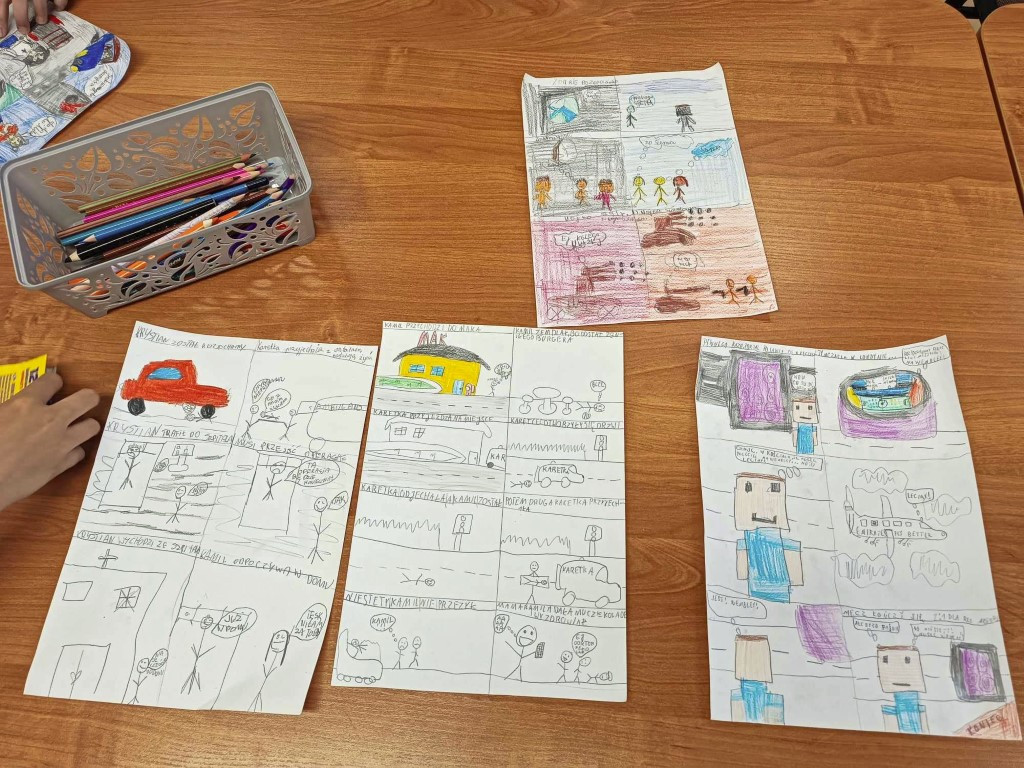Dziękujemy za spotkanie - Autorowi za cenne uwagi dotyczące tworzenia komiksów, Uczniom za inwencję twórczą.