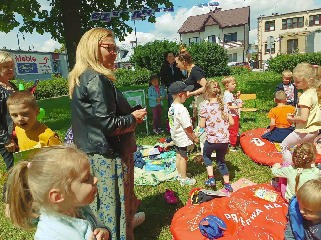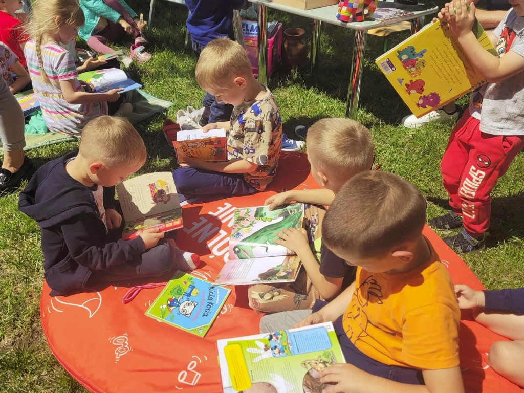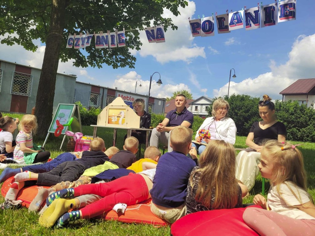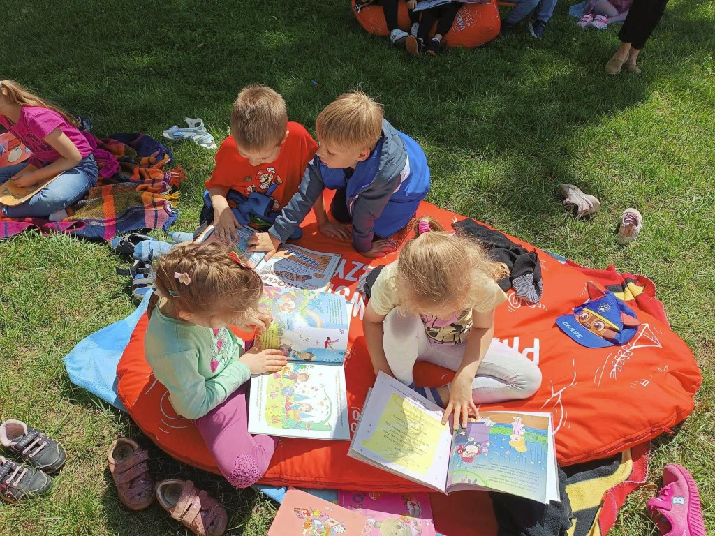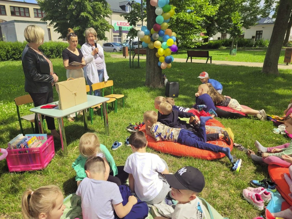 W słoneczne piątkowe popołudnie, 14 czerwca 2024 r., spotkaliśmy się z przedszkolakami z Przedszkola Publicznego nr 1 w Łęcznej na wspólnym czytaniu. Dużą atrakcją był fakt, iż akcja odbywała się na świeżym powietrzu, wśród pięknej zieleni skwerku przed Urzędem Miasta, gdzie zorganizowaliśmy przestrzeń czytelniczą.