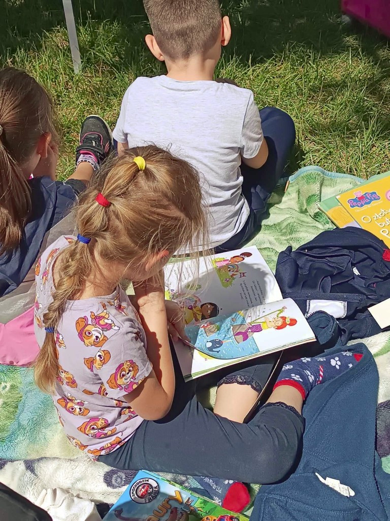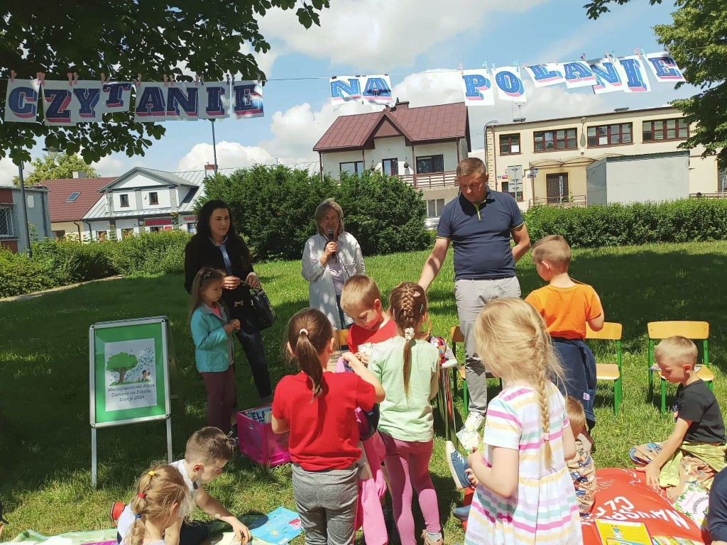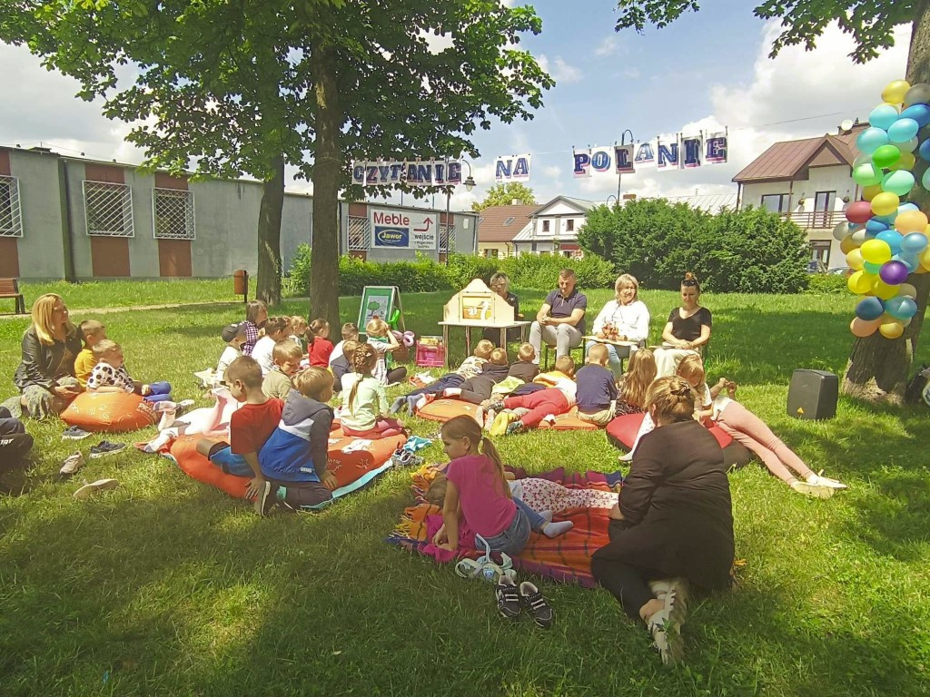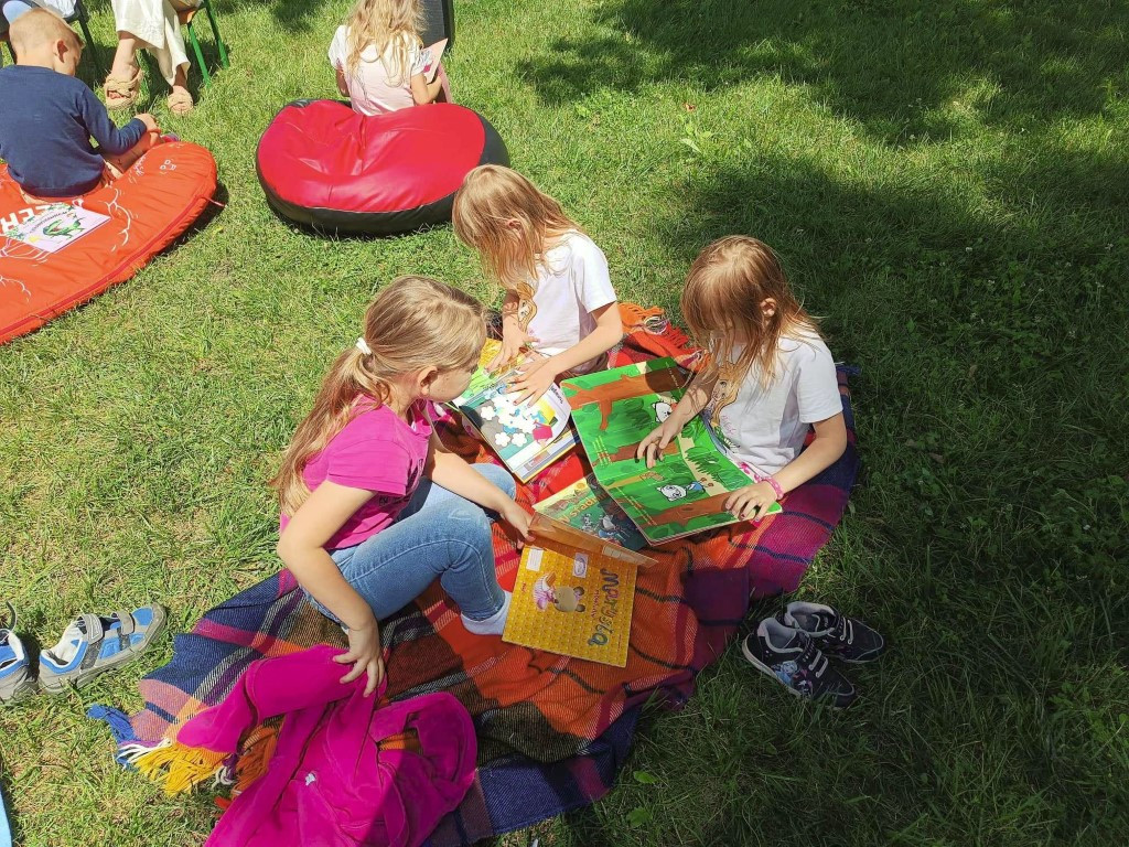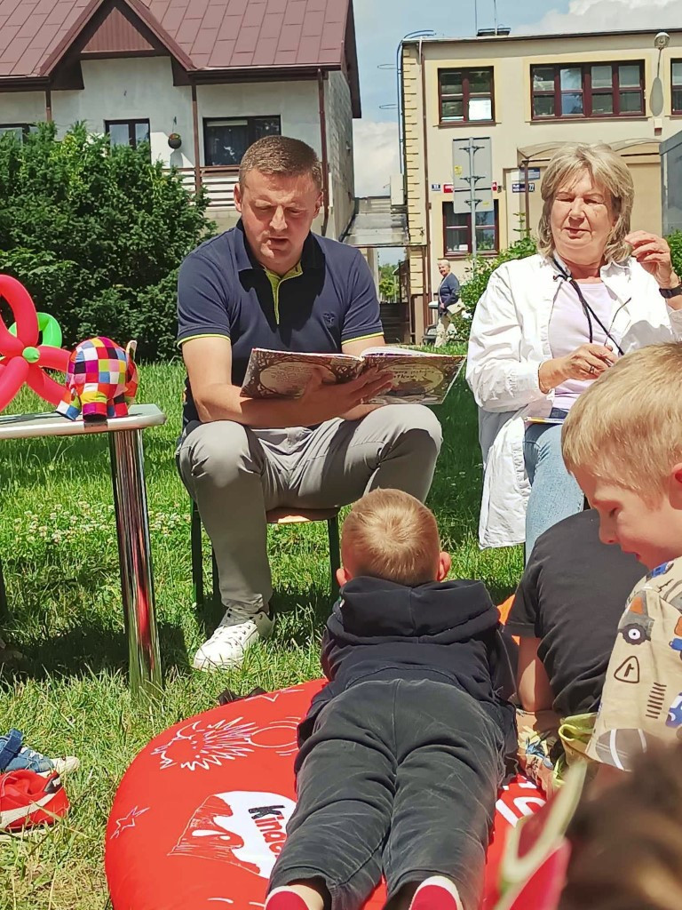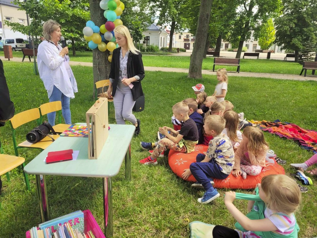 W słoneczne piątkowe popołudnie, 14 czerwca 2024 r., spotkaliśmy się z przedszkolakami z Przedszkola Publicznego nr 1 w Łęcznej na wspólnym czytaniu. Dużą atrakcją był fakt, iż akcja odbywała się na świeżym powietrzu, wśród pięknej zieleni skwerku przed Urzędem Miasta, gdzie zorganizowaliśmy przestrzeń czytelniczą.