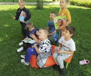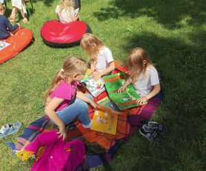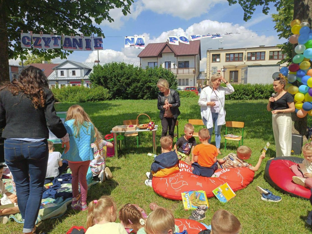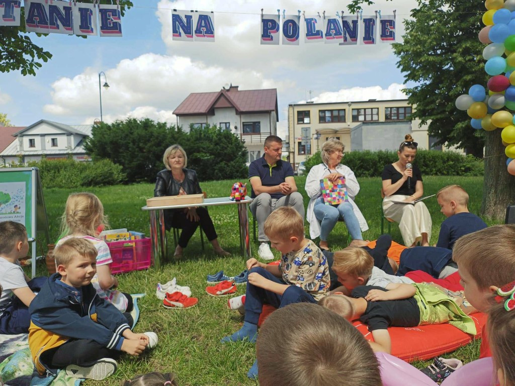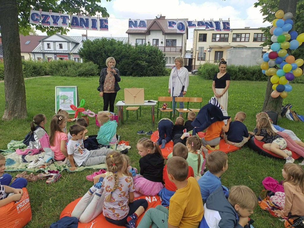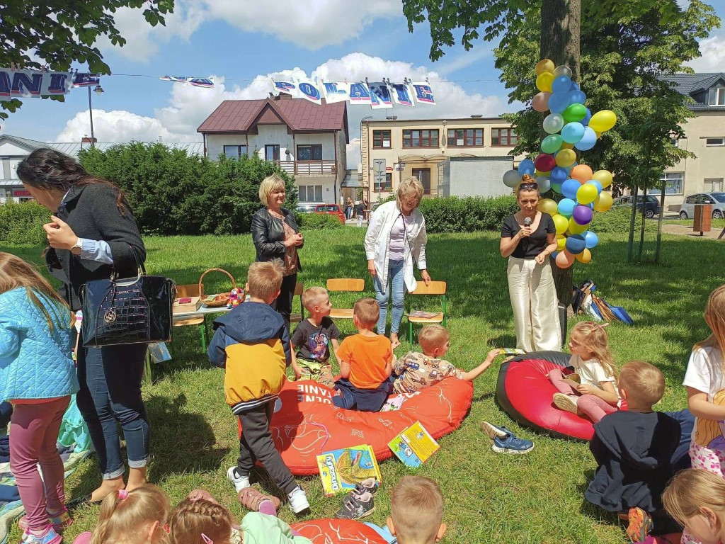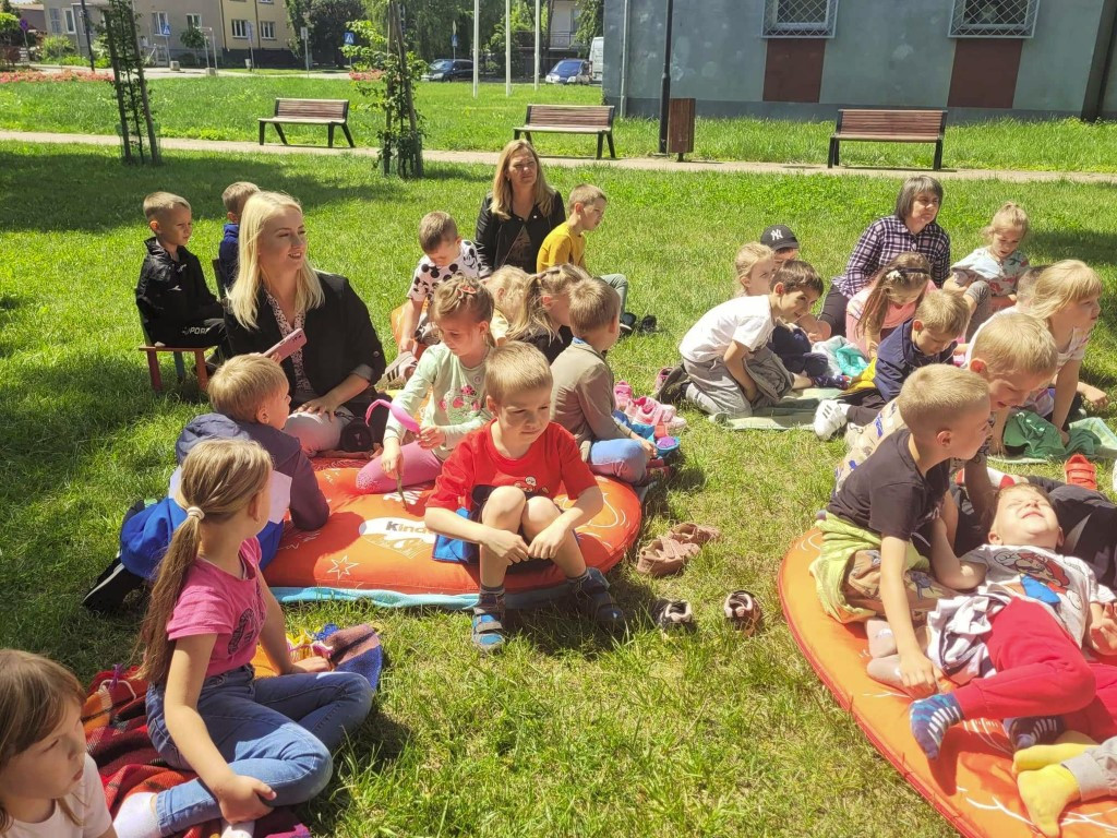 W słoneczne piątkowe popołudnie, 14 czerwca 2024 r., spotkaliśmy się z przedszkolakami z Przedszkola Publicznego nr 1 w Łęcznej na wspólnym czytaniu. Dużą atrakcją był fakt, iż akcja odbywała się na świeżym powietrzu, wśród pięknej zieleni skwerku przed Urzędem Miasta, gdzie zorganizowaliśmy przestrzeń czytelniczą.