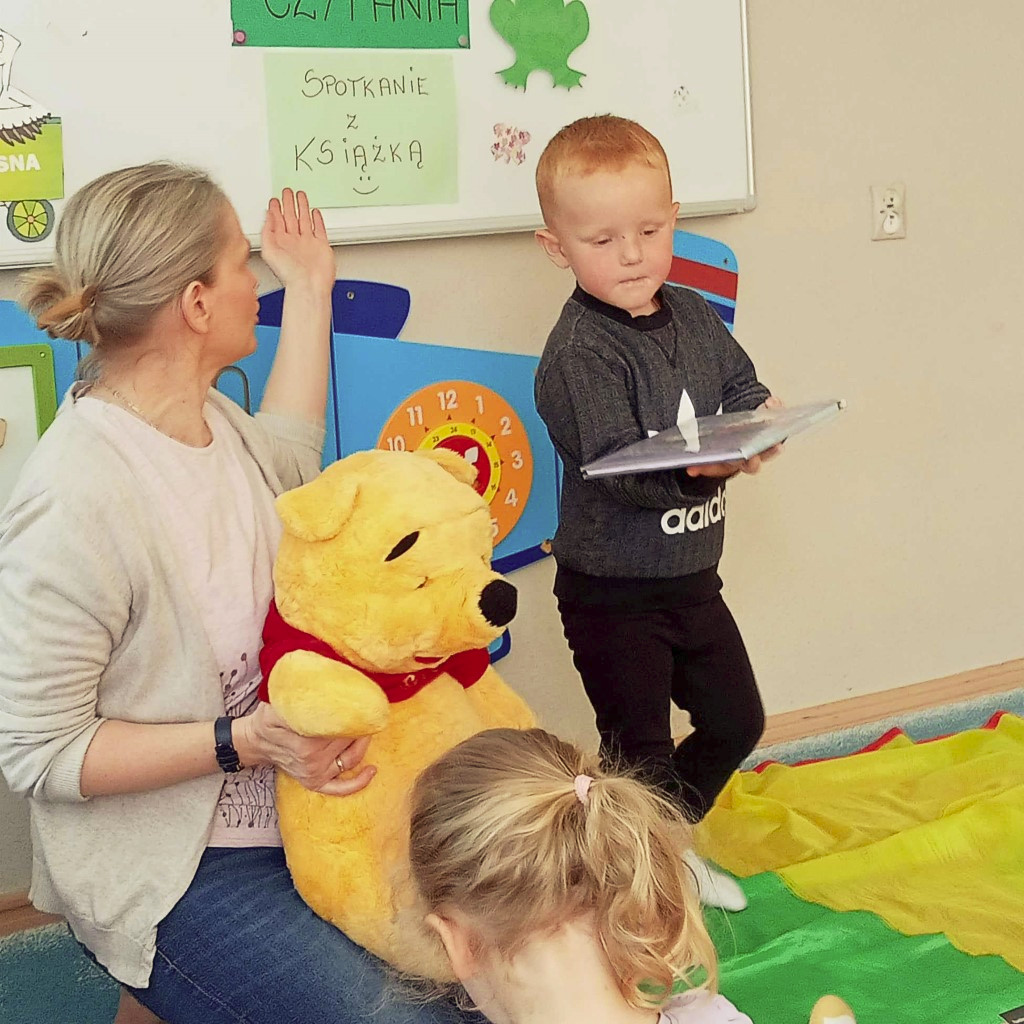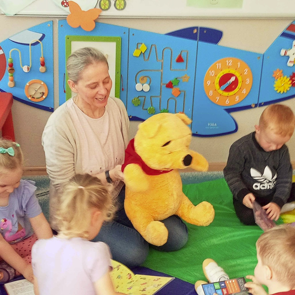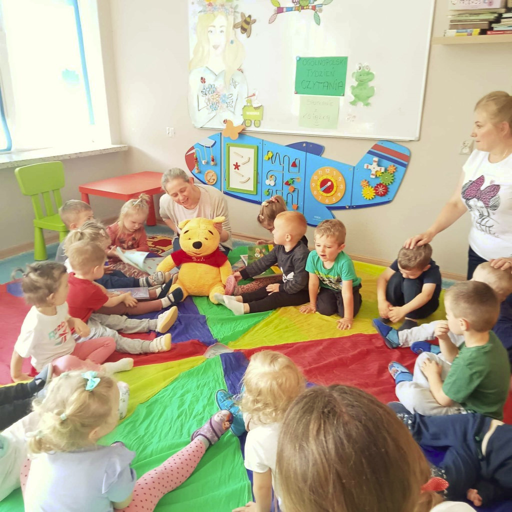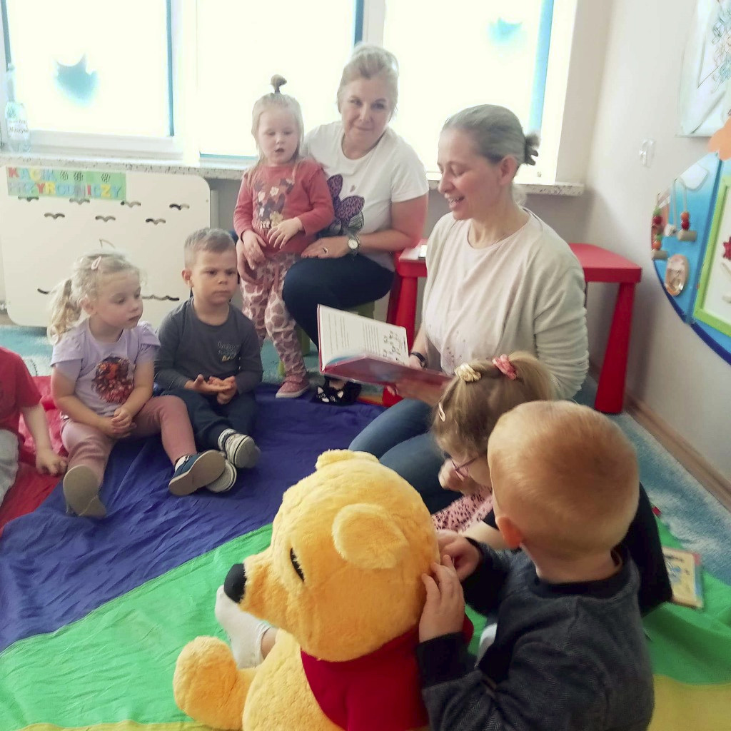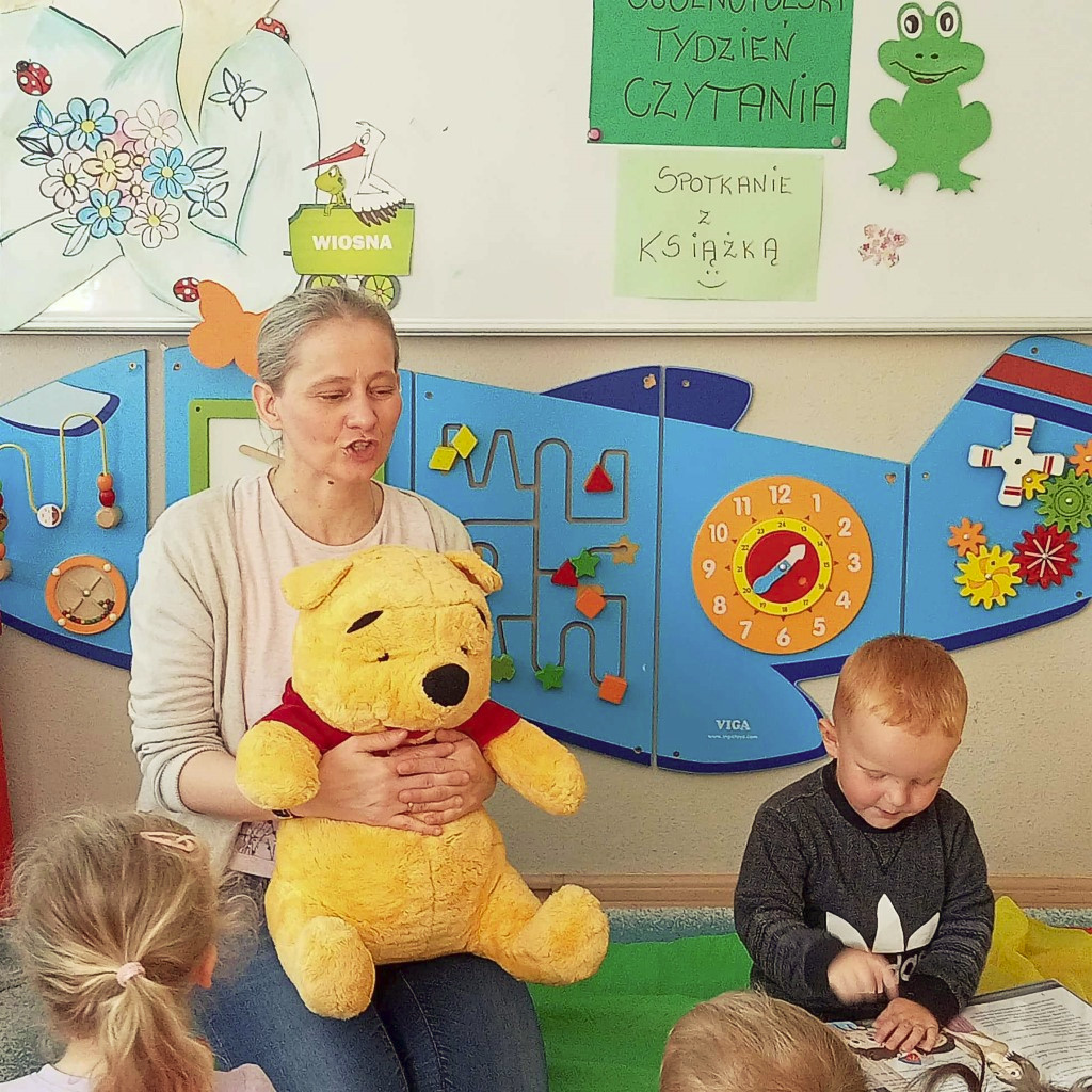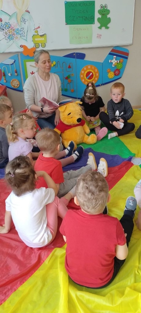 Z okazji XXIII Ogólnopolskiego Tygodnia Czytania bibliotekarka z Filii nr 3 odwiedziła dzieci ze Żłobka Mali Odkrywcy z grupy „ Biedronki” i „Sówki”. Podczas Spotkania z książką mali słuchacze wysłuchali głośnego czytania bajek o przyjaźni. Pani Ewa przeczytała przedszkolakom bajki: „ Miś – nasz przyjaciel ” oraz „ Magiczne słowa” Ewy Stolarczyk. Naszym milusińskim towarzyszył Miś Puchatek bohater bajek o przyjaźni i jedna z najbardziej ulubionych maskotek dzieci. Dzieci poznały podczas spotkania też inne książeczki o przyjaźni np.: „Kicia kocia i przyjaciele”, „Staś Pętęlka Najlepszy przyjaciel” oraz „Bajki o przyjaźni” pod red. Marty Stęplewskiej. Rozmawialiśmy o tym kim jest przyjaciel i jak magiczne słowa: „Proszę, Przepraszam, Dziękuję” mogą pomóc w relacji z przyjacielem. Na zakończenie wszyscy uczestnicy wzięli udział w zabawie z chustą tj. „fali przyjaźni” z Misiem Puchatkiem. Bibliotekarka zachęciła dzieci do odwiedzania biblioteki i wspólnego czytania książek z rodzicami i dziadkami. Zapraszamy do wypożyczania i czytania książek o przyjaźni i nie tylko…