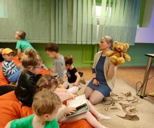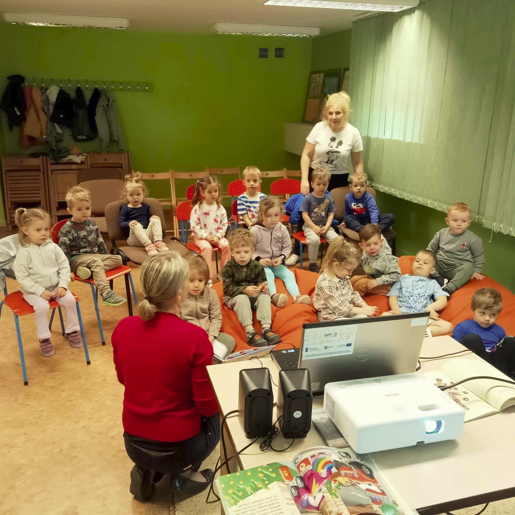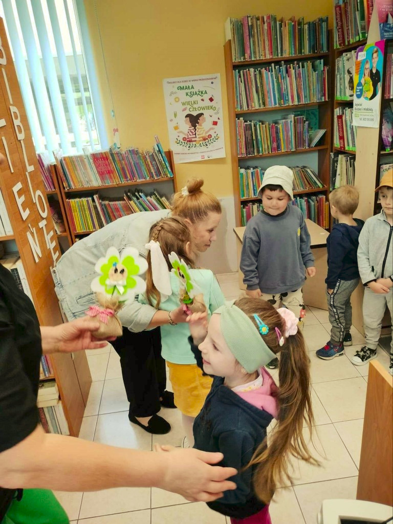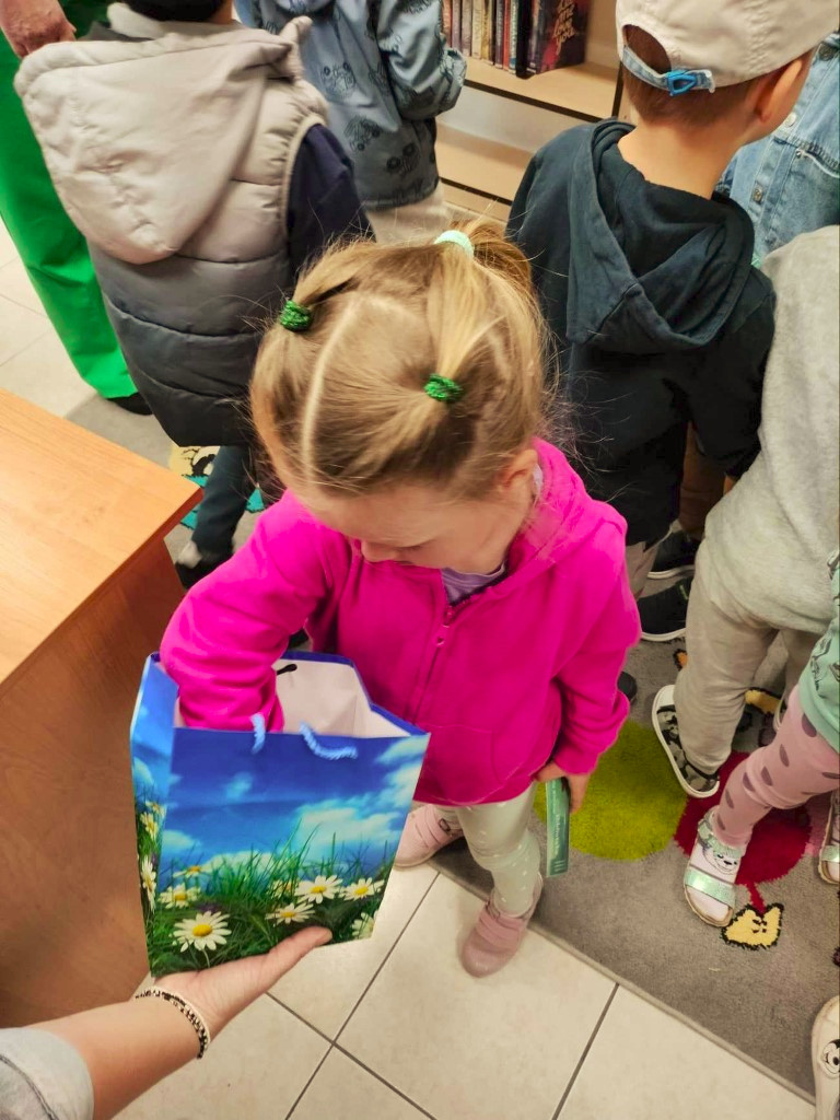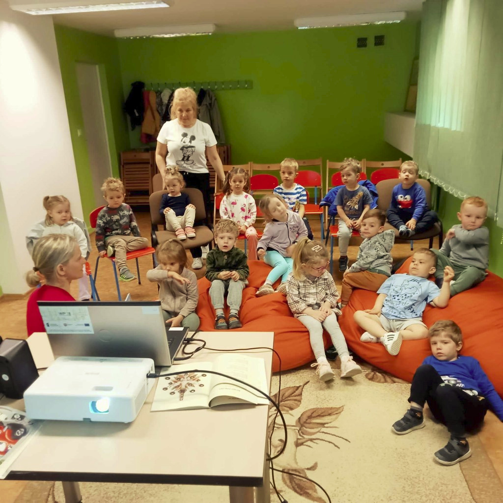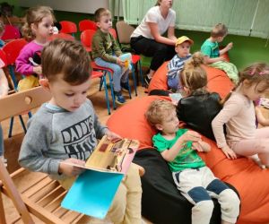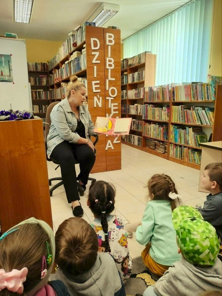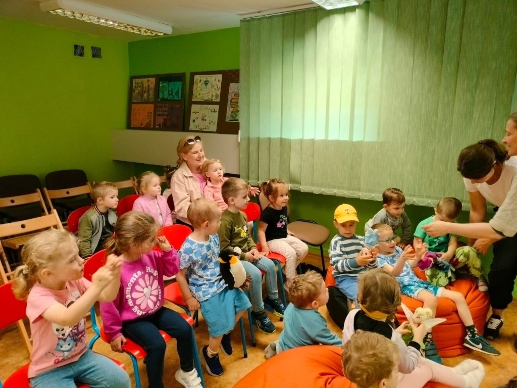 7 maja 2024 r. z okazji zbliżającego się Tygodnia Bibliotek i dnia bibliotekarza Filię nr 3 odwiedziły dzieci z grupy „Biedronki” i „Sówki” z wychowawczyniami ze Żłobka Mali Odkrywcy. Na początku spotkania mali goście złożyli życzenia i wręczyli piękną laurkę paniom z okazji dnia bibliotekarza i święta bibliotek. Następnie pani Ewa zaprosiła dzieci do udziału w spotkaniu edukacyjnym z tej okazji. Uczestnicy obejrzeli film animowany „ Niezwykła przygoda w bibliotece” i wysłuchali bajki „Nowy przyjaciel wilczka” ze zbioru „Bajki o zwierzętach” A. Cholewińskiej - Szkolik. Kto może być przyjacielem dzieci ? - Miś, lalka, delfinek i oczywiście ciekawa książeczka z ulubionymi bohaterami bajek. Podczas spotkania bibliotekarka przeczytała dzieciom bajkę o wilczku, który szukał przyjaciela. Mali słuchacze poznali pozytywną bajkę, która niesie nadzieję i pozytywne emocje dodające otuchy by nigdy nie poddawać się. Książka może być przyjacielem dziecka i rozwijać wyobraźnię dlatego Mali Odkrywcy słuchali bajek i oglądali ciekawe książki z ulubionymi bohaterami. Prowadząca zachęcała dzieci do wspólnego czytania z rodzicami i poznawania pięknych opowieści. Dziękujemy wszystkim za obecność. Do zobaczenia w bibliotece.