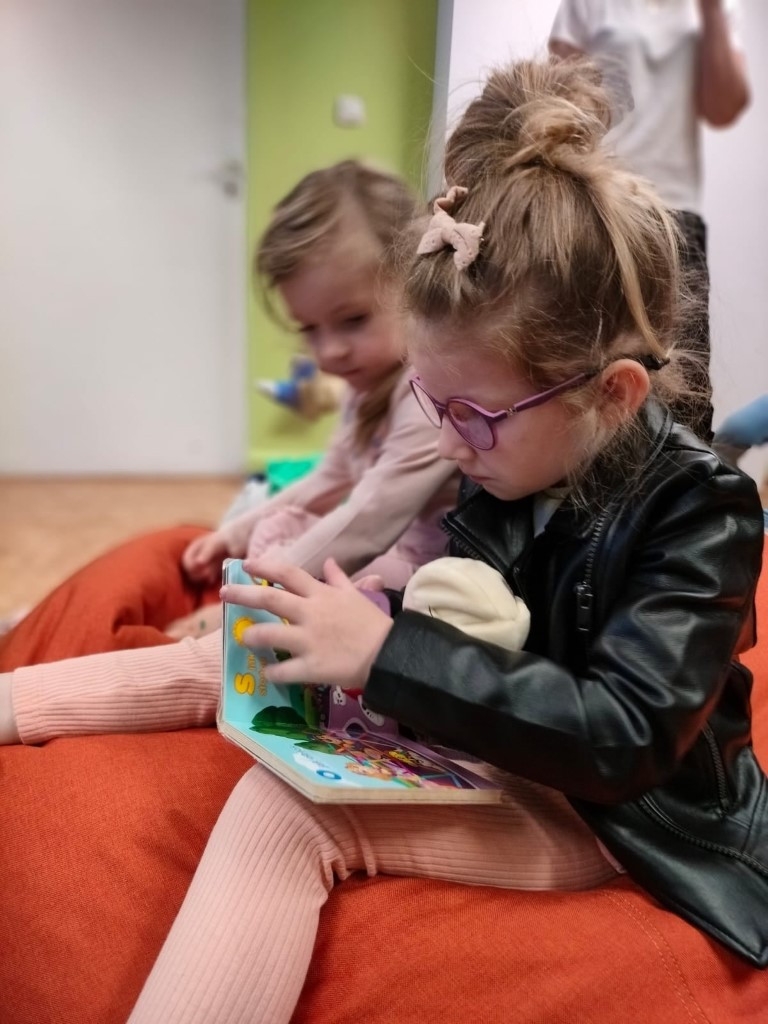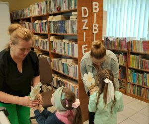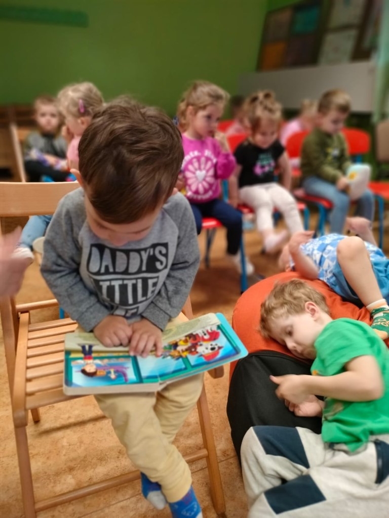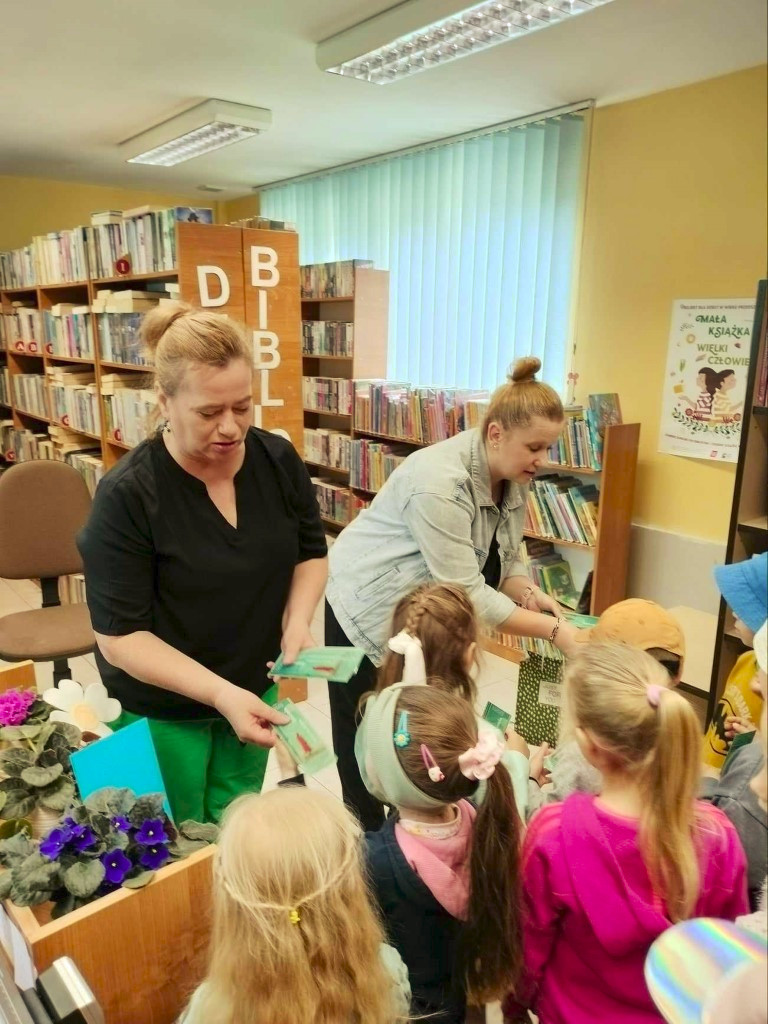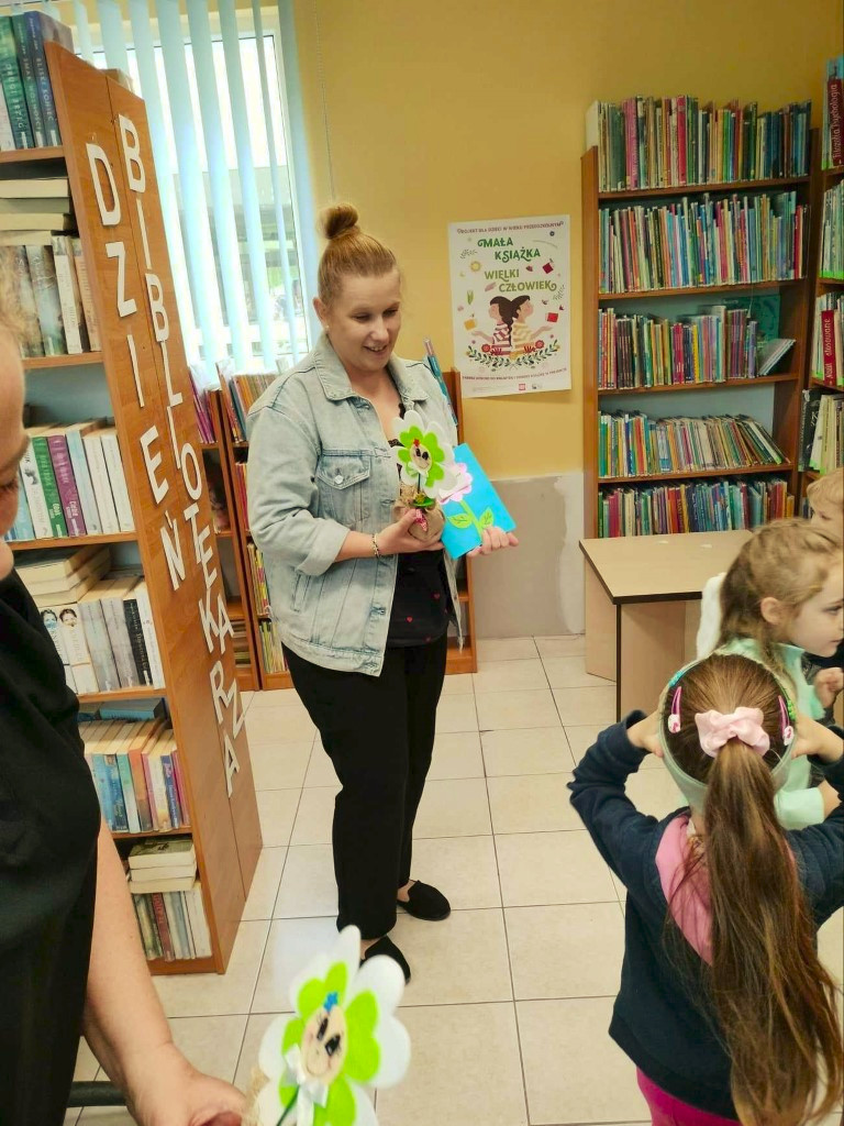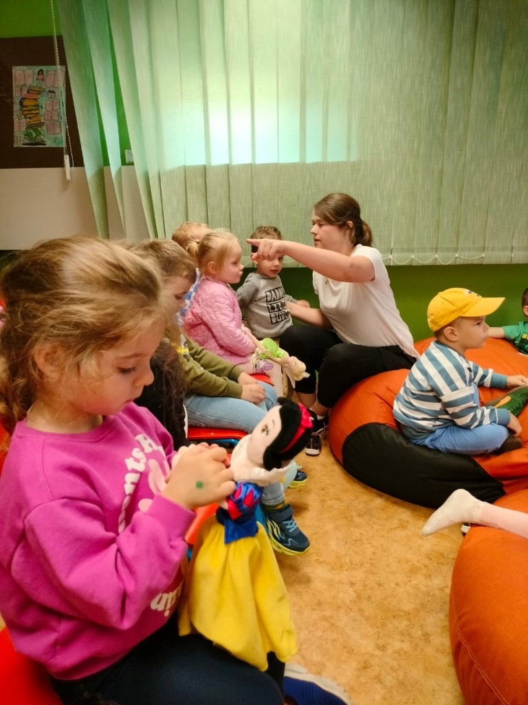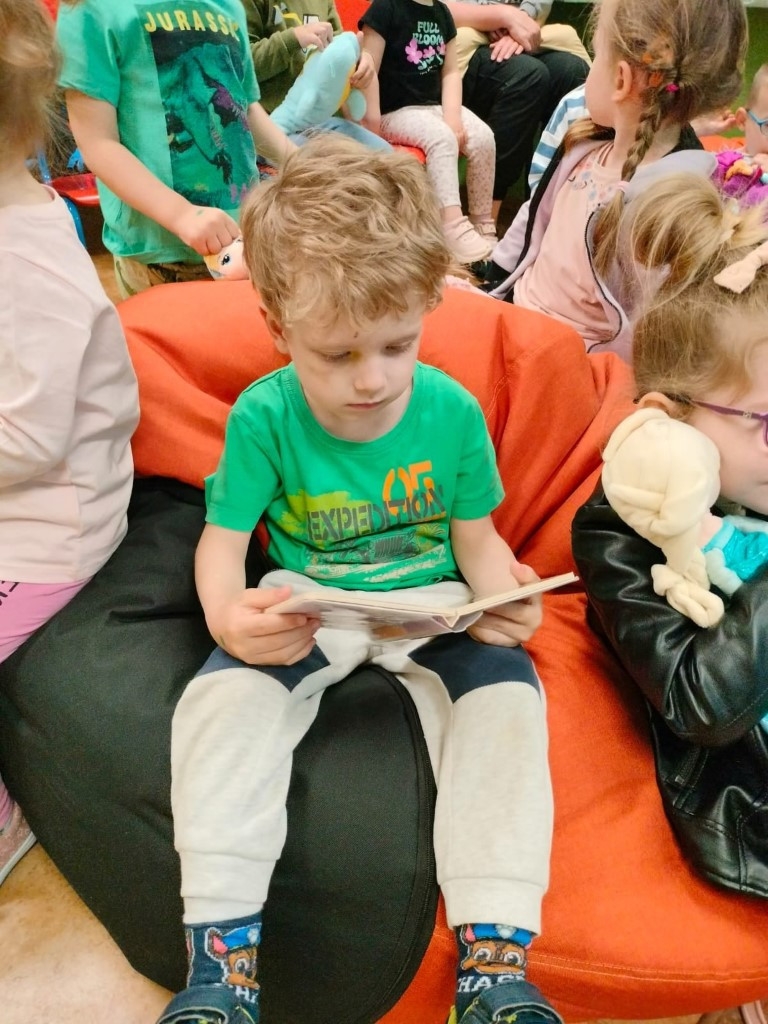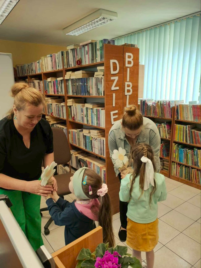 7 maja 2024 r. z okazji zbliżającego się Tygodnia Bibliotek i dnia bibliotekarza Filię nr 3 odwiedziły dzieci z grupy „Biedronki” i „Sówki” z wychowawczyniami ze Żłobka Mali Odkrywcy. Na początku spotkania mali goście złożyli życzenia i wręczyli piękną laurkę paniom z okazji dnia bibliotekarza i święta bibliotek. Następnie pani Ewa zaprosiła dzieci do udziału w spotkaniu edukacyjnym z tej okazji. Uczestnicy obejrzeli film animowany „ Niezwykła przygoda w bibliotece” i wysłuchali bajki „Nowy przyjaciel wilczka” ze zbioru „Bajki o zwierzętach” A. Cholewińskiej - Szkolik. Kto może być przyjacielem dzieci ? - Miś, lalka, delfinek i oczywiście ciekawa książeczka z ulubionymi bohaterami bajek. Podczas spotkania bibliotekarka przeczytała dzieciom bajkę o wilczku, który szukał przyjaciela. Mali słuchacze poznali pozytywną bajkę, która niesie nadzieję i pozytywne emocje dodające otuchy by nigdy nie poddawać się. Książka może być przyjacielem dziecka i rozwijać wyobraźnię dlatego Mali Odkrywcy słuchali bajek i oglądali ciekawe książki z ulubionymi bohaterami. Prowadząca zachęcała dzieci do wspólnego czytania z rodzicami i poznawania pięknych opowieści. Dziękujemy wszystkim za obecność. Do zobaczenia w bibliotece.