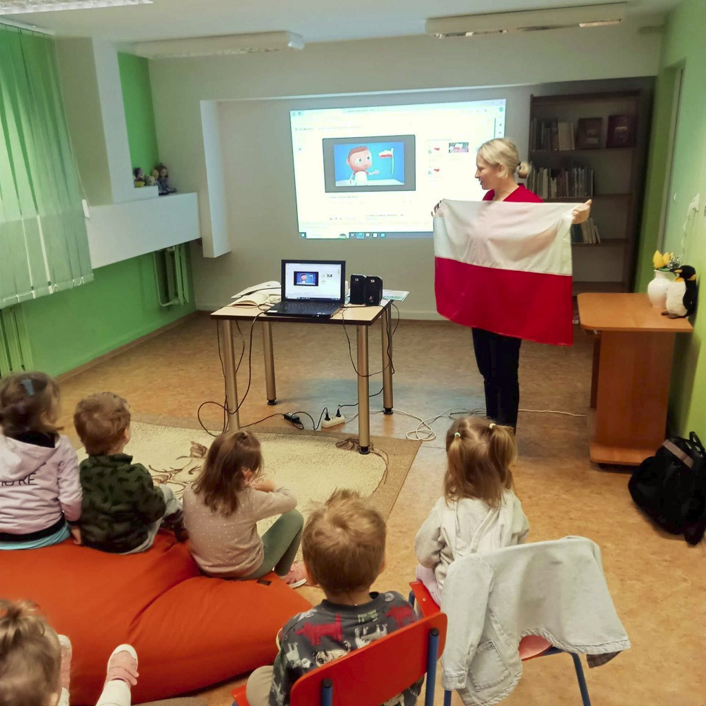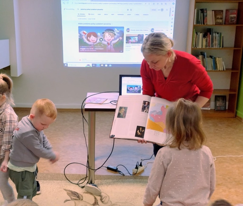 29 kwietnia 2024 r. Filię nr 3 odwiedziły dzieci z grupy „Sówki” i „Biedronki” ze Żłobka Niepublicznego „Mali Odkrywcy” w Łęcznej. Nasi goście uczestniczyli w zajęciach edukacyjnych z okazji Święta Konstytucji 3 Maja. Prowadząca opowiedziała dzieciom dlaczego obchodzimy to święto, kim jest patriota i jakie mamy polskie symbole narodowe. Mali uczestnicy obejrzeli film animowany o symbolach narodowych i Konstytucji 3 Maja. Poznali też piosenkę „Jesteśmy Polką i Polakiem”. Dzieci dowiedziały się jak wygląda flaga Polski i godło narodowe. Wszyscy razem zaśpiewali fragment hymnu narodowego Polski. Pani Ewa przeczytała dzieciom wiersz W. Bełzy „Katechizm polskiego dziecka ” i zaprosiła do wspólnego powtarzania znanego utworu. Dzieci usłyszały czym była Konstytucja 3 Maja oraz kiedy obchodzimy święto flagi. Na zakończenie mali goście otrzymali kolorowankę z białym orłem i obejrzeli książeczki o Polsce. Dziękujemy wszystkim za udział. Do zobaczenia w bibliotece!
