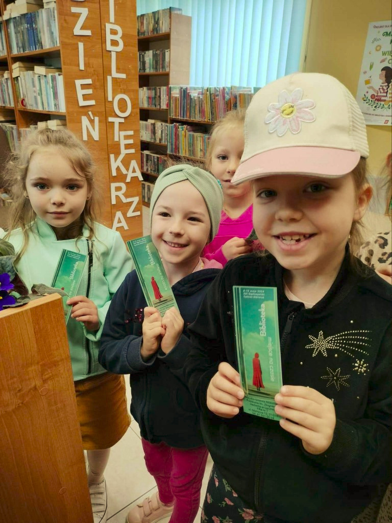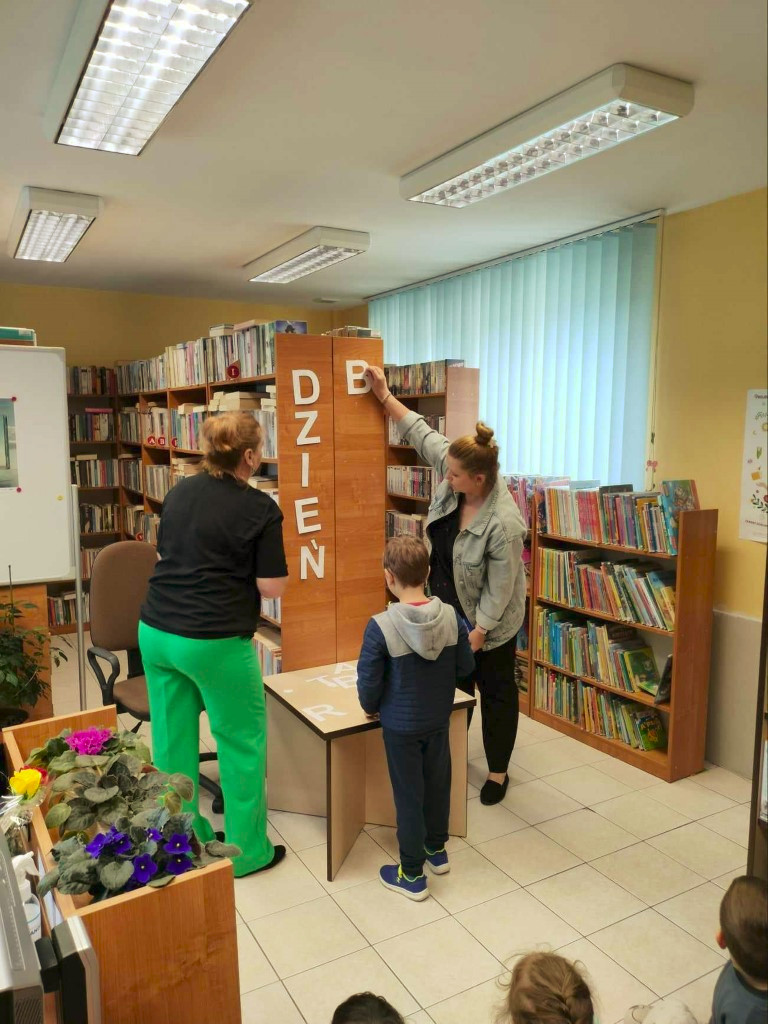 Tydzień bibliotek Filia nr 1 rozpoczęła razem z dziećmi i nauczycielami z Przedszkola Mali Odkrywcy w Łęcznej. Bibliotekarki przygotowały dla przedszkolaków rozsypankę literową, którą dzieci błyskawicznie ułożyły i powstało piękne hasło „Dzień bibliotekarza”. Nie obyło się bez głośnego czytania. Tym razem dzieci wysłuchały przygód Fenka, który wraz z przyjaciółmi poznawał magiczne miejsce jakim jest biblioteka.