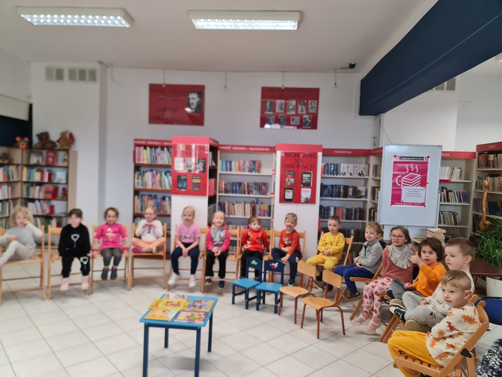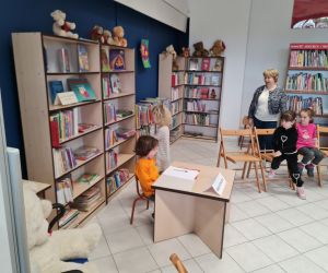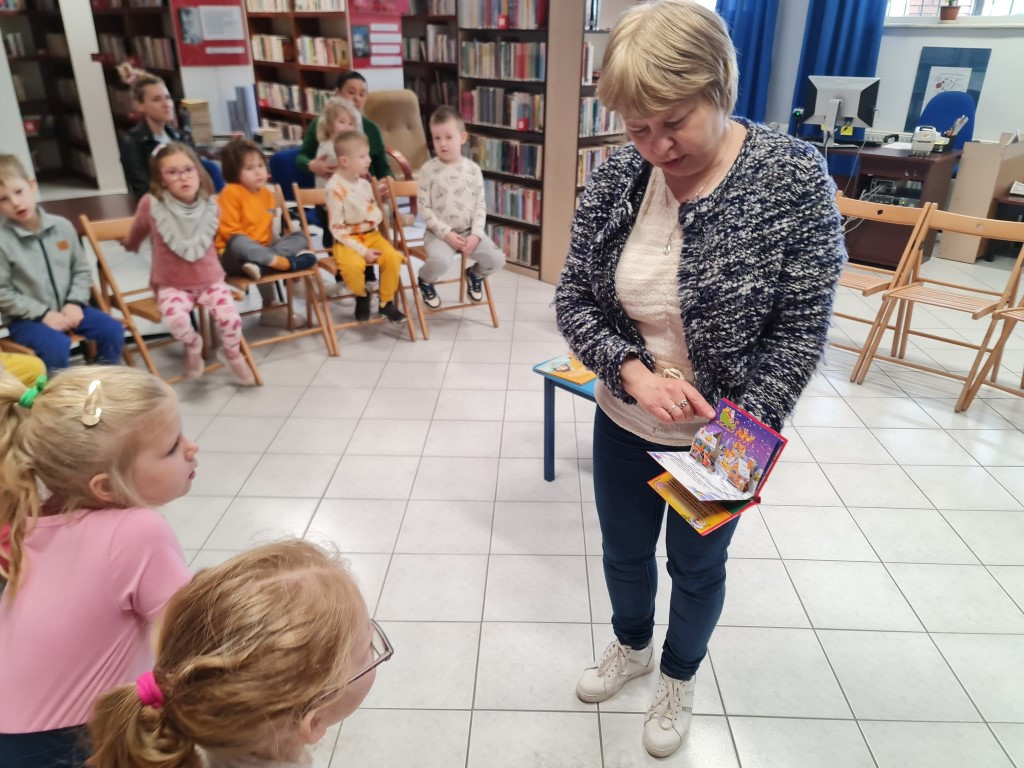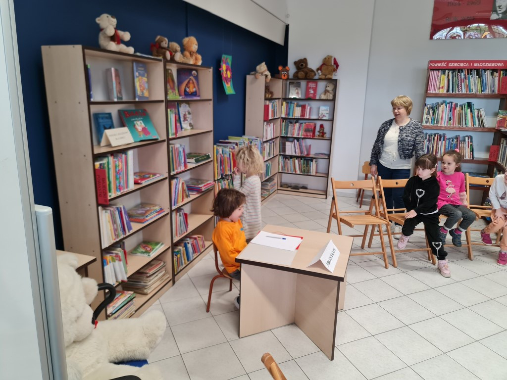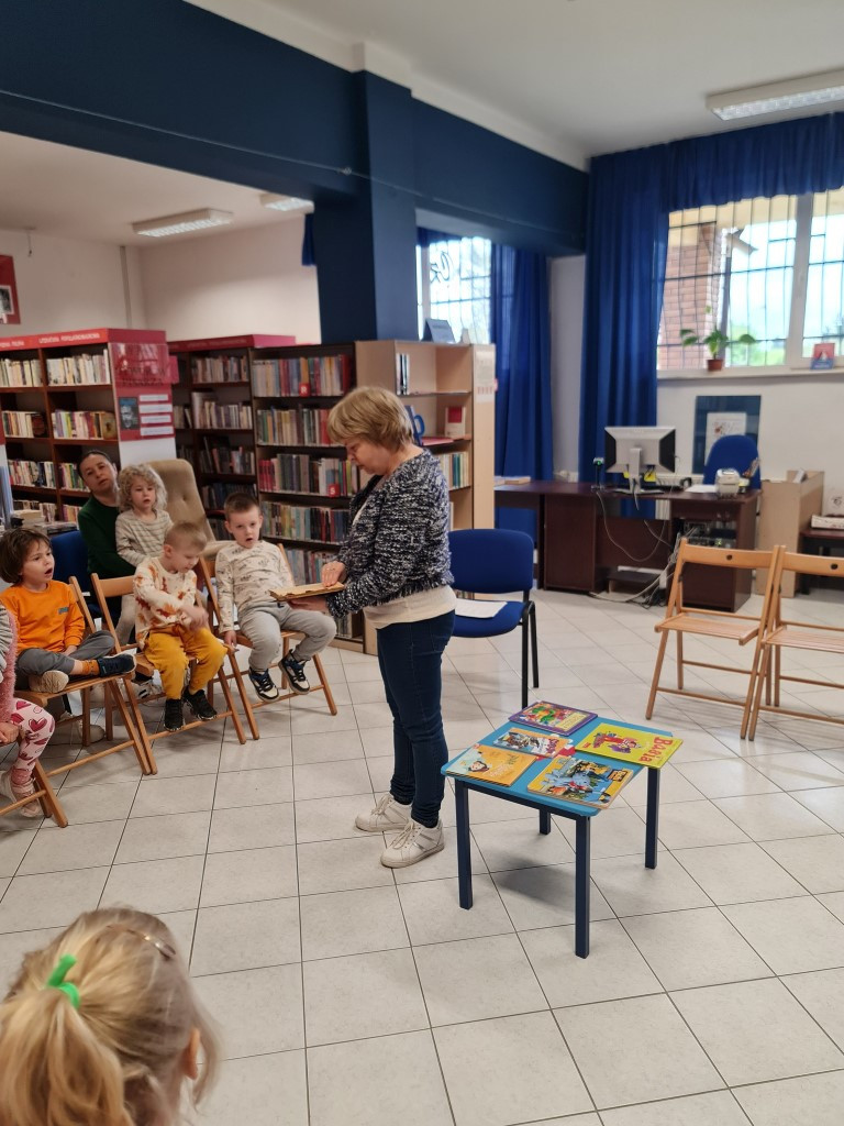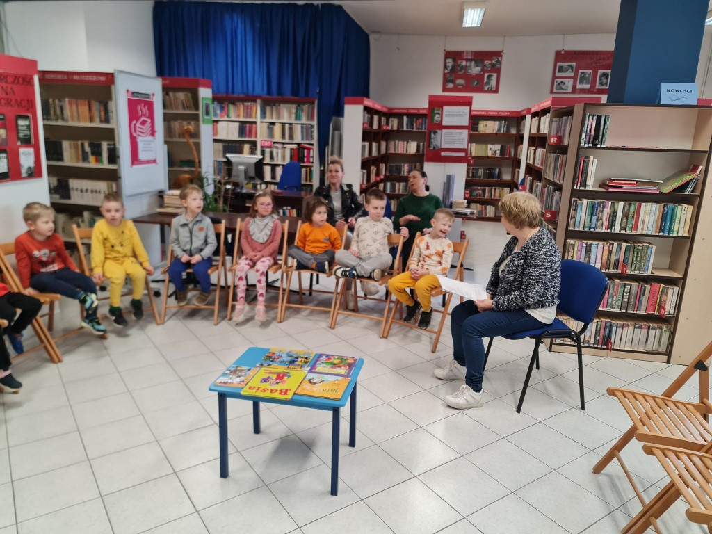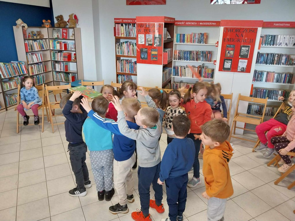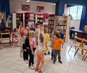 W dniu 18 kwietnia odbyło się w Filii nr 2 kolejne spotkanie dla przedszkolaków pn. „Zabawy z książką”. Tym razem do Biblioteki przybyły dzieci z grupy „Żabki” z Przedszkola Publicznego nr 4. Dzieci aktywnie uczestniczyły w zajęciach, wykazując się znajomością treści bajek, odgadywały zagadki, a także brały udział w zabawach ruchowych.