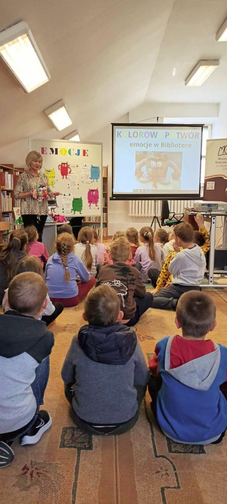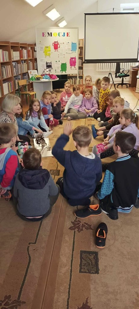 Na początku zajęć edukacyjnych uczniowie wysłuchali książki pop- up pt. "Kolorowy Potwór" autorstwa A. Llenas wydanej przez #WydawnictwoMamania. Następnie dzieci uczyły się rozpoznawać i nazywać emocje oraz umieszczały je w odpowiednich słoikach. Uczniowie słuchali piosenek o emocjach, a także pokazywali, za pomocą mimiki twarzy oraz gestu, emocje wyrzucane "kostką uczuć".