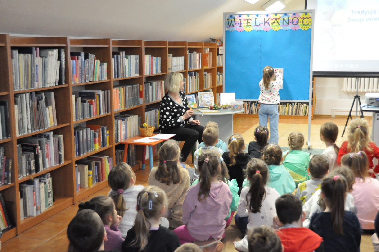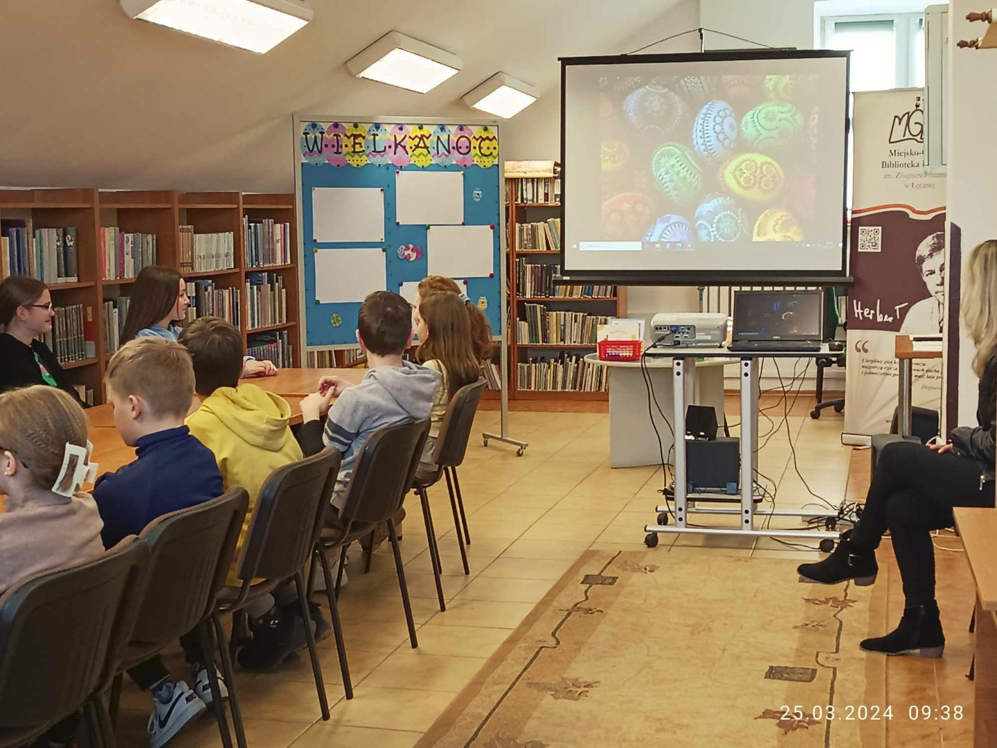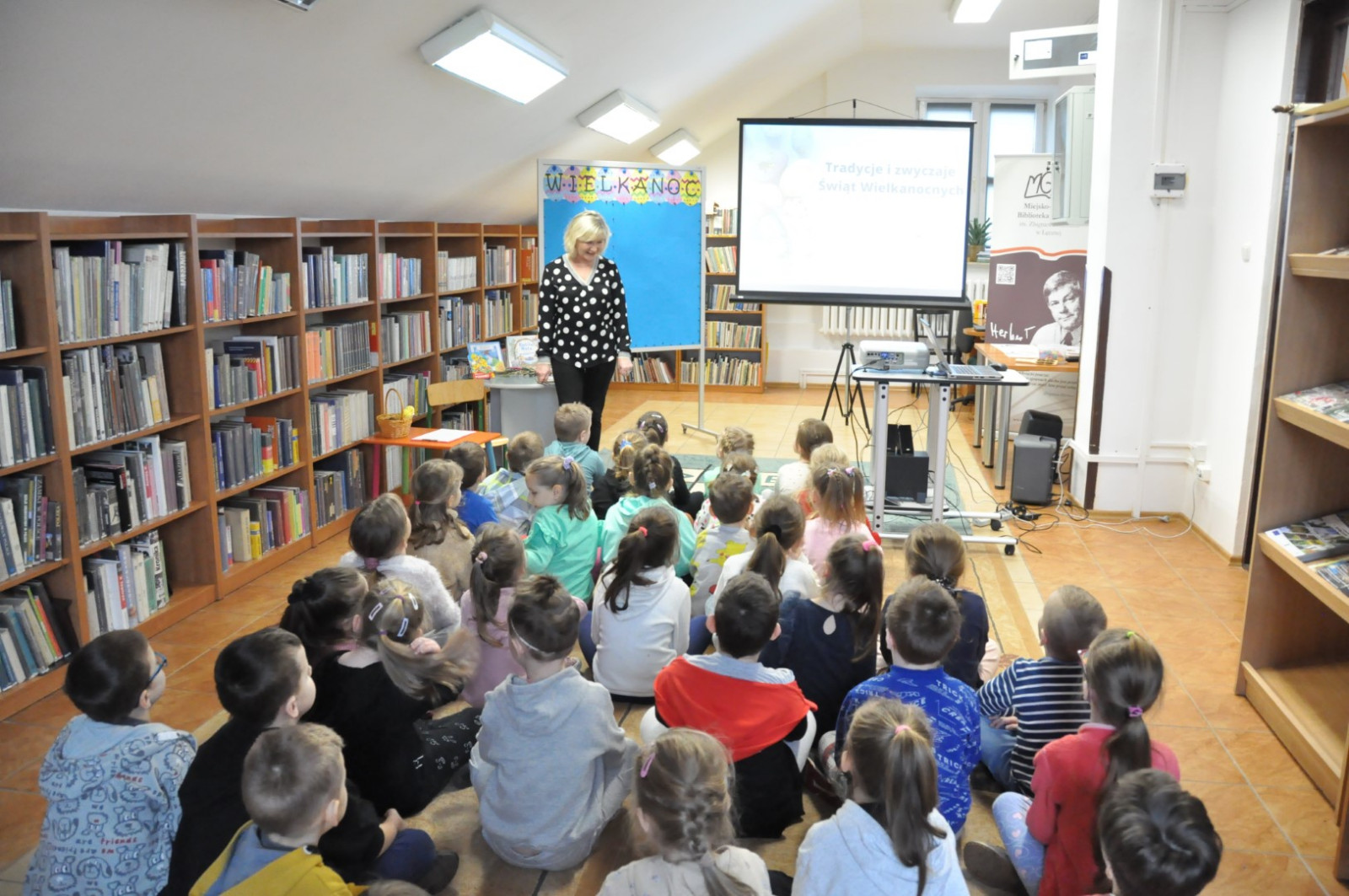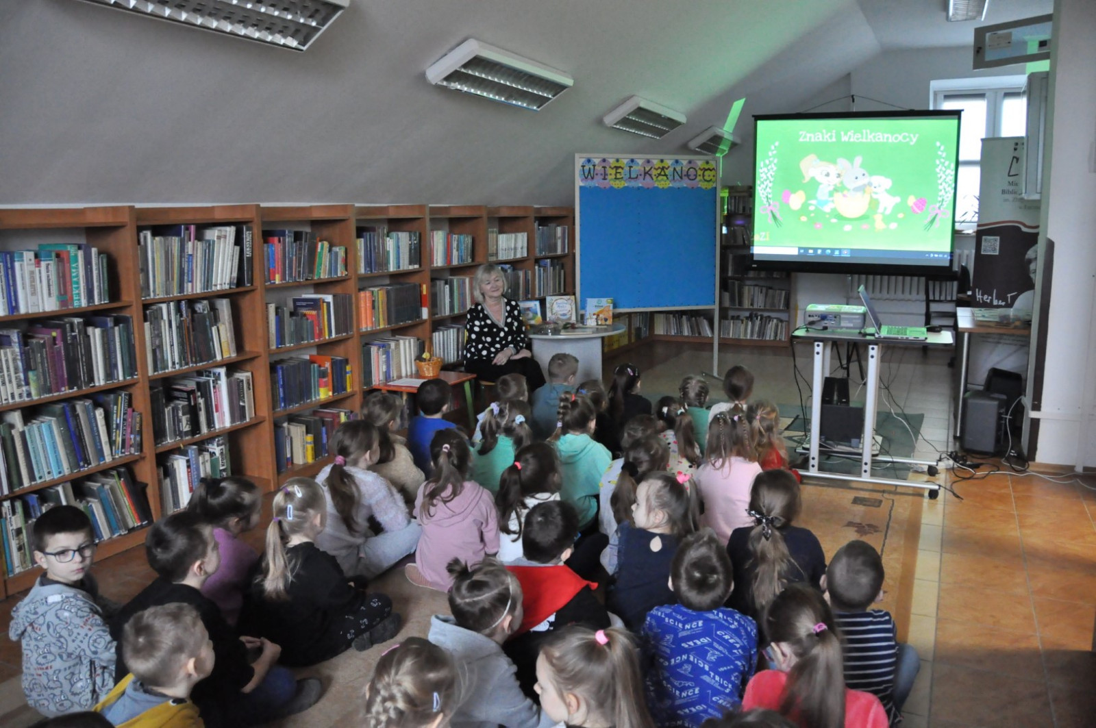 W dniach 18 i 22 marca, Bibliotekę przy ul. Bożnicznej 21 odwiedziły dzieci z grup: O B, O C i O D ze Szkoły Podstawowej nr 2 w Łęcznej. Uczniowie wzięli udział w zajęciach edukacyjnych dotyczących Świąt Wielkanocnych. Podczas zajęć dzieci wysłuchały książek: Małgorzaty Strzałkowskiej pt. "Wielkanoc" oraz "Wielkanocne pisanki" autorstwa Urszuli Kozłowskiej, oglądały film o tradycjach i zwyczajach wielkanocnych oraz słuchały piosenek. Był czas na zagadki wielkanocne, zabawę- czy to prawda, czy fałsz oraz oglądanie wystawy pn. "Moc pasji -Jajko- najważniejszy symbol Wielkanocy". Mamy nadzieję, zorganizowane w bibliotece spotkania przybliżyły dzieciom tradycje i zwyczaje Świąt Wielkanocnych.