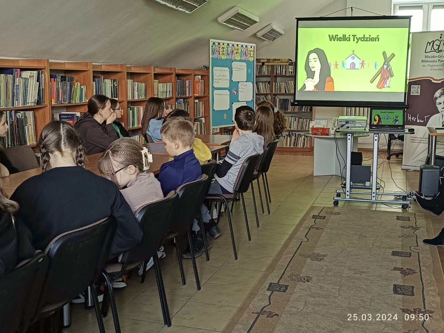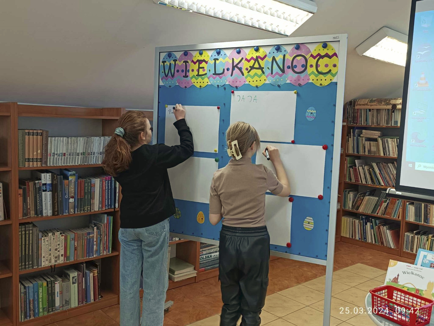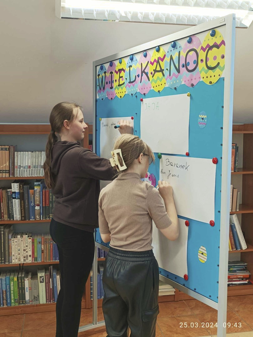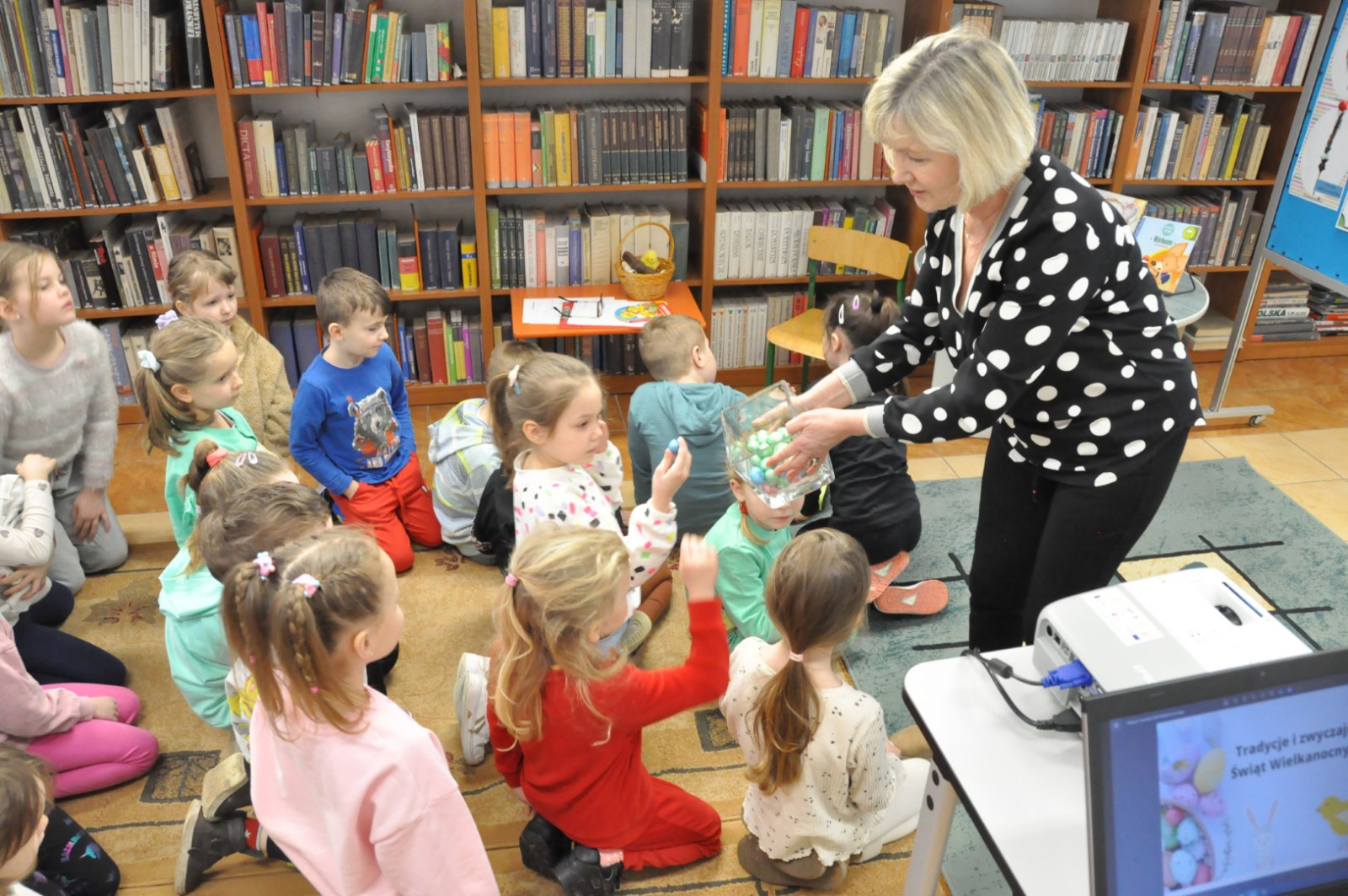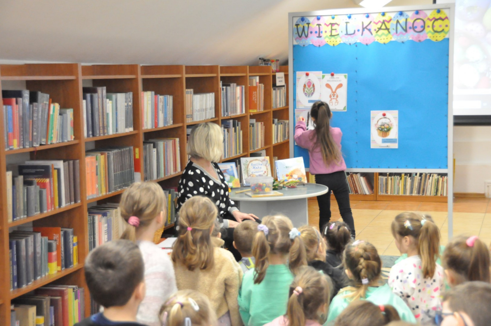 W dniach 18 i 22 marca, Bibliotekę przy ul. Bożnicznej 21 odwiedziły dzieci z grup: O B, O C i O D ze Szkoły Podstawowej nr 2 w Łęcznej. Uczniowie wzięli udział w zajęciach edukacyjnych dotyczących Świąt Wielkanocnych. Podczas zajęć dzieci wysłuchały książek: Małgorzaty Strzałkowskiej pt. "Wielkanoc" oraz "Wielkanocne pisanki" autorstwa Urszuli Kozłowskiej, oglądały film o tradycjach i zwyczajach wielkanocnych oraz słuchały piosenek. Był czas na zagadki wielkanocne, zabawę- czy to prawda, czy fałsz oraz oglądanie wystawy pn. "Moc pasji -Jajko- najważniejszy symbol Wielkanocy". Mamy nadzieję, zorganizowane w bibliotece spotkania przybliżyły dzieciom tradycje i zwyczaje Świąt Wielkanocnych.
