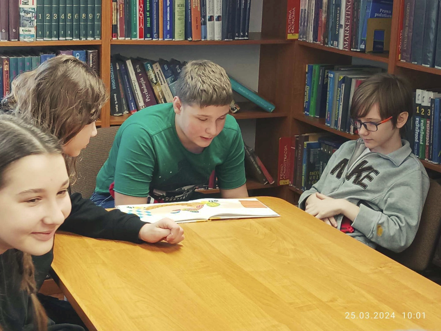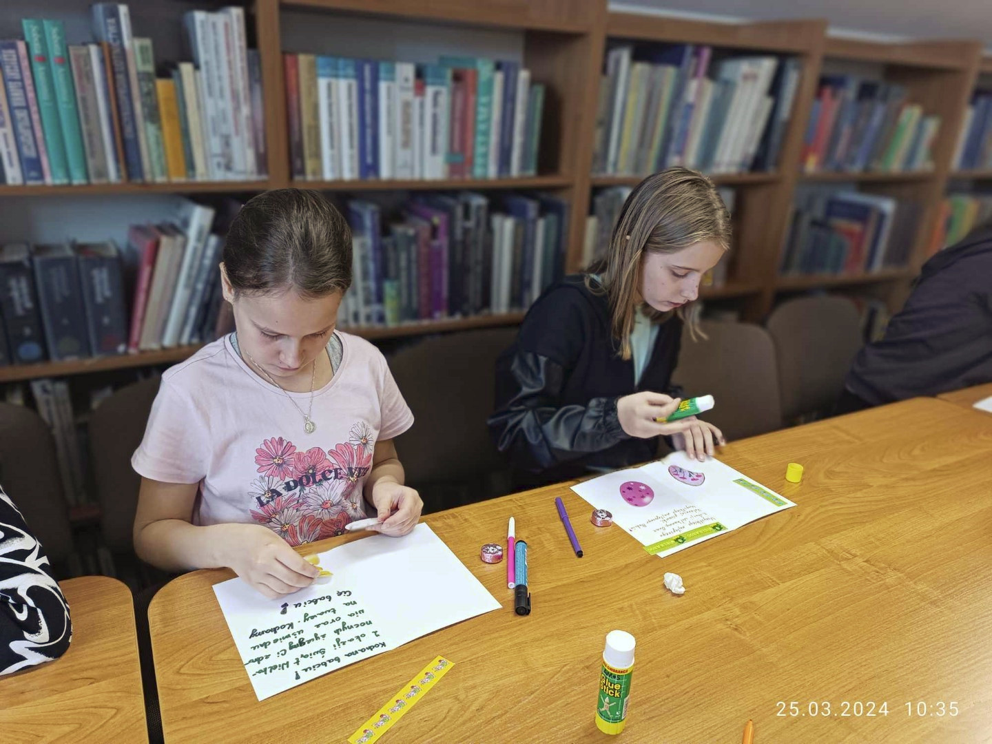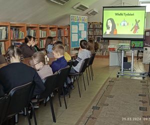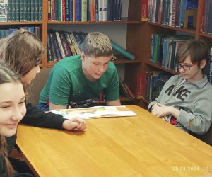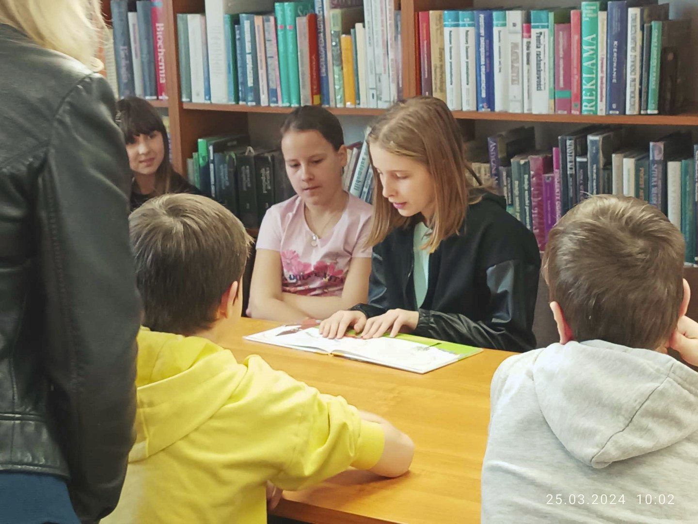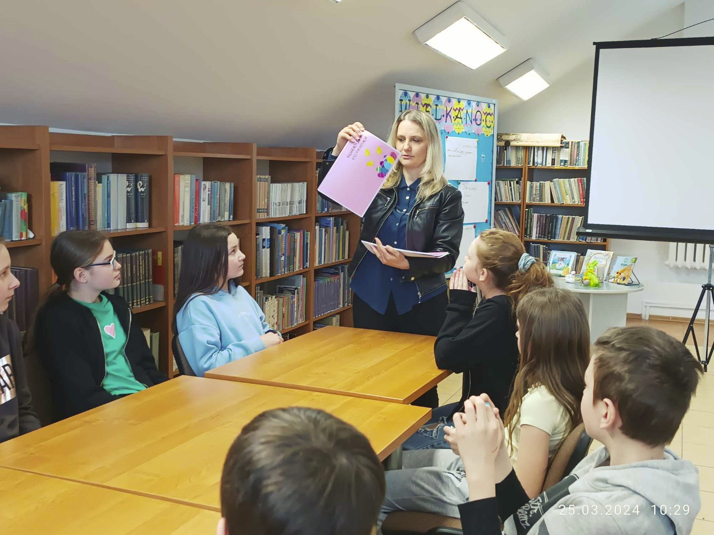 W dniu 25.03.2023 r. Bibliotekę Główną odwiedziła klasa 5 F ze Szkoła Podstawowa nr 2 w Łęcznej wraz z wychowawcą . Uczniowie wzięli udział w zajęciach dotyczących Świąt Wielkanocnych. Dzieci opowiadały z czym kojarzą im się święta Wielkiej Nocy, obejrzały film dotyczący tradycji wielkanocnych oraz wspólnie czytały książkę pt. „Wielkanoc”. Następnie uczniowie rozwiązywali krzyżówki z hasłami dotyczącymi nadchodzących Świąt i odnajdywali różnice na obrazkach wielkanocnych. Osoby, które najszybciej wykonały zadania otrzymały figurki z czekolady. Był też czas na zawody ruchowe polegające na noszeniu pisanek z czekolady na łyżkach. Na koniec zajęć uczniowie wykonywali kartki wielkanocne, które zabrali ze sobą do domu.