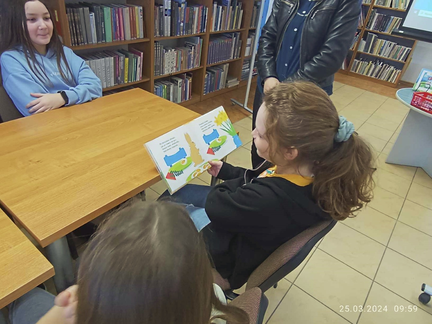 W dniu 26 marca do Filii nr 2 przybyły dzieci z Przedszkola Publicznego nr 3 grupa „Mądre Sowy”. Podobnie jak na poprzednich zajęciach przedszkolaki wysłuchały kilku wierszy. Wspólnie z Bibliotekarką „przeczytały” wiersz Juliana Tuwima pt. „Rzepka”. Odpowiadały też na pytania dotyczące Wielkanocy.