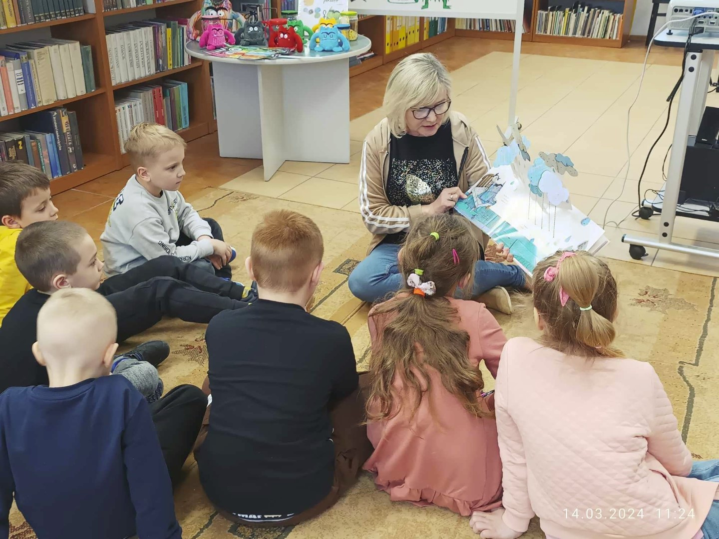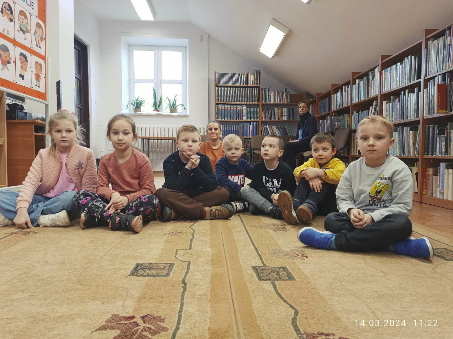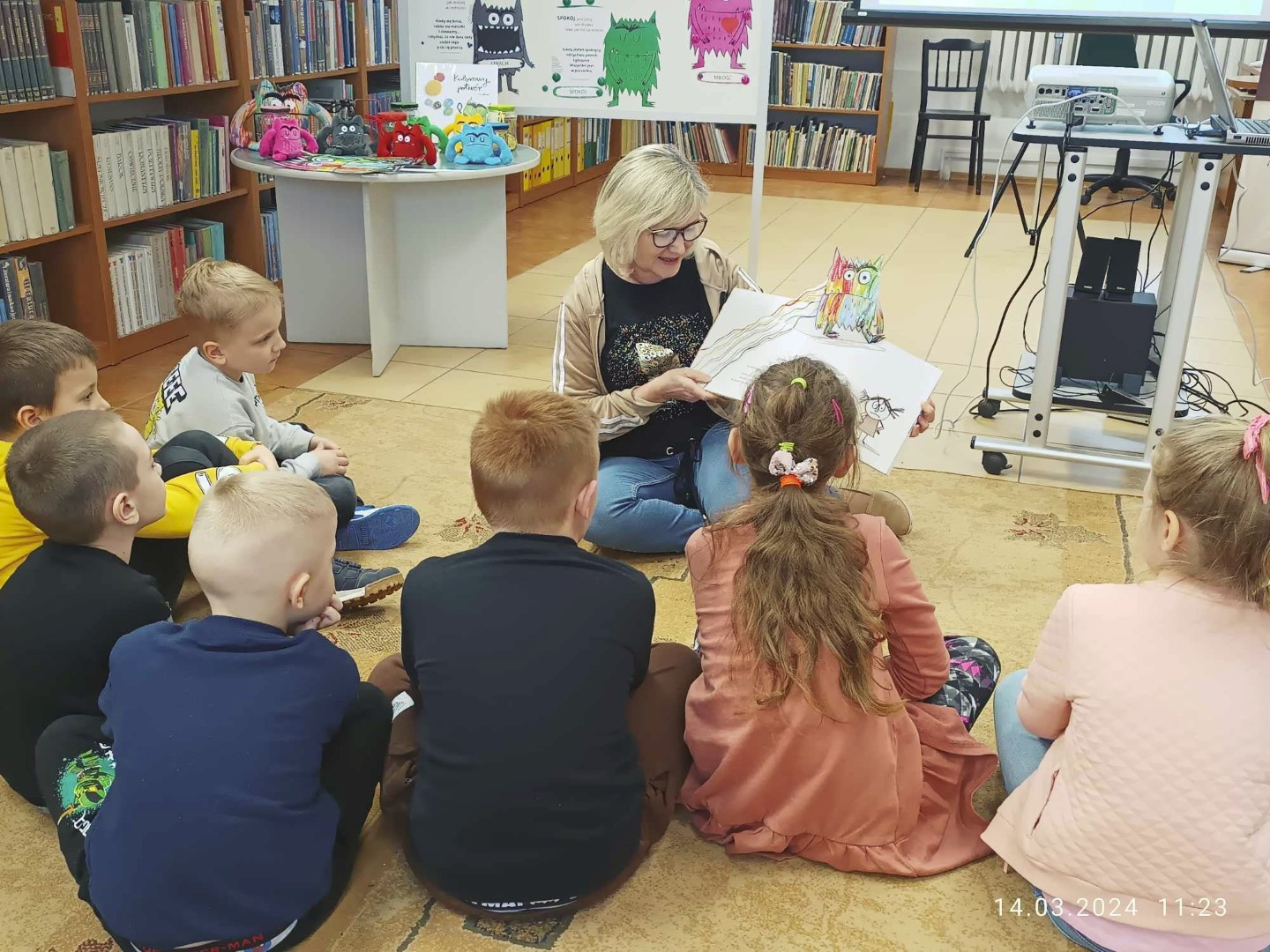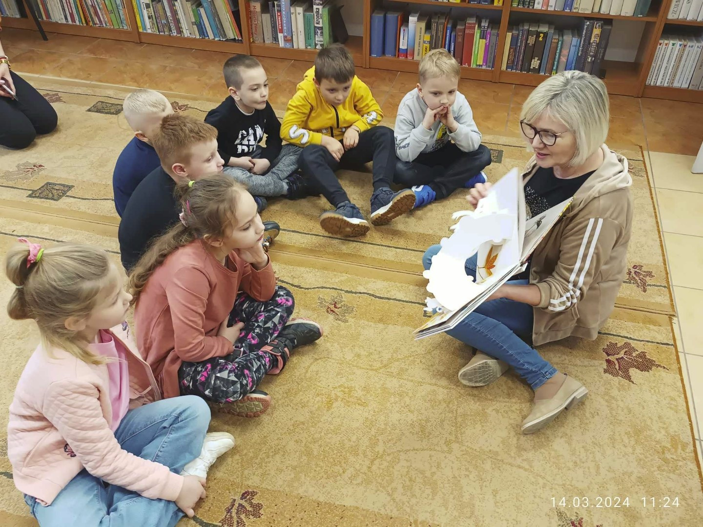 Dzieci bardzo aktywnie brały udział w zajęciach i odpowiadały na pytania bibliotekarki.