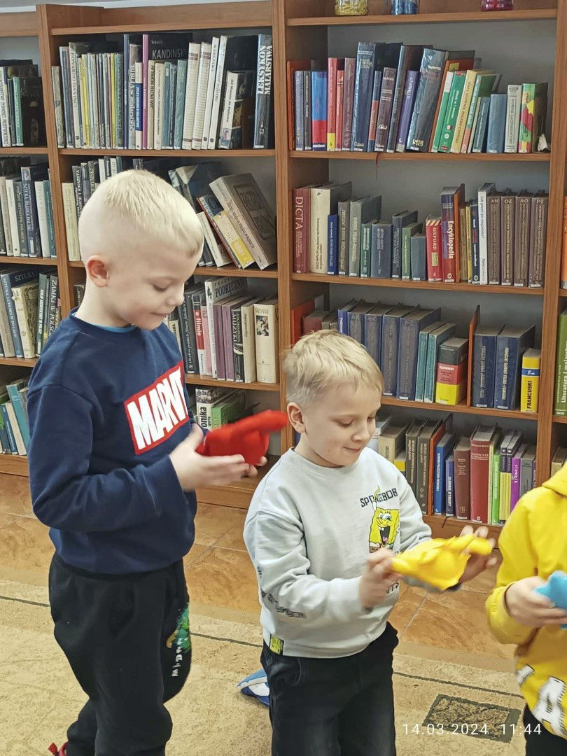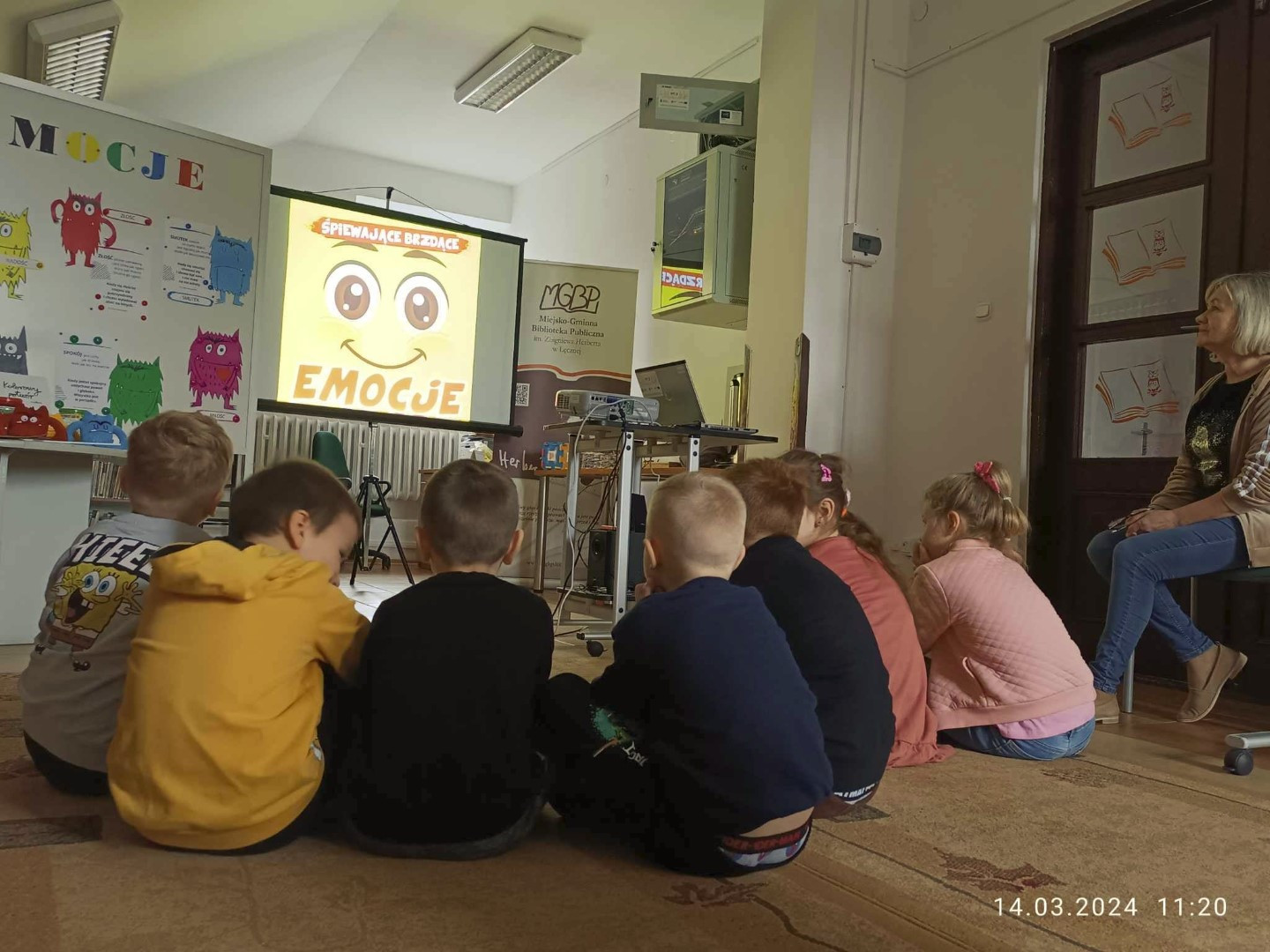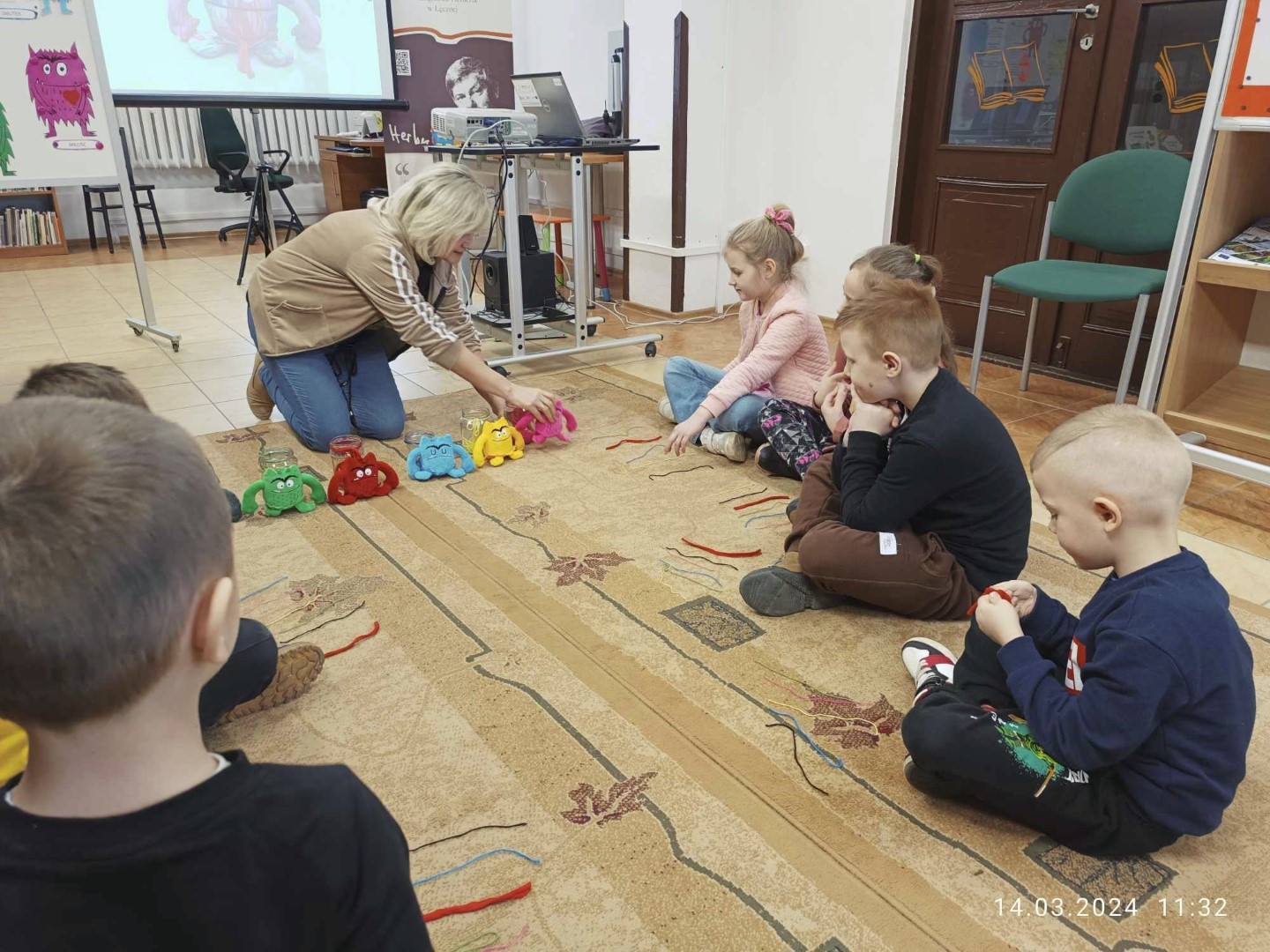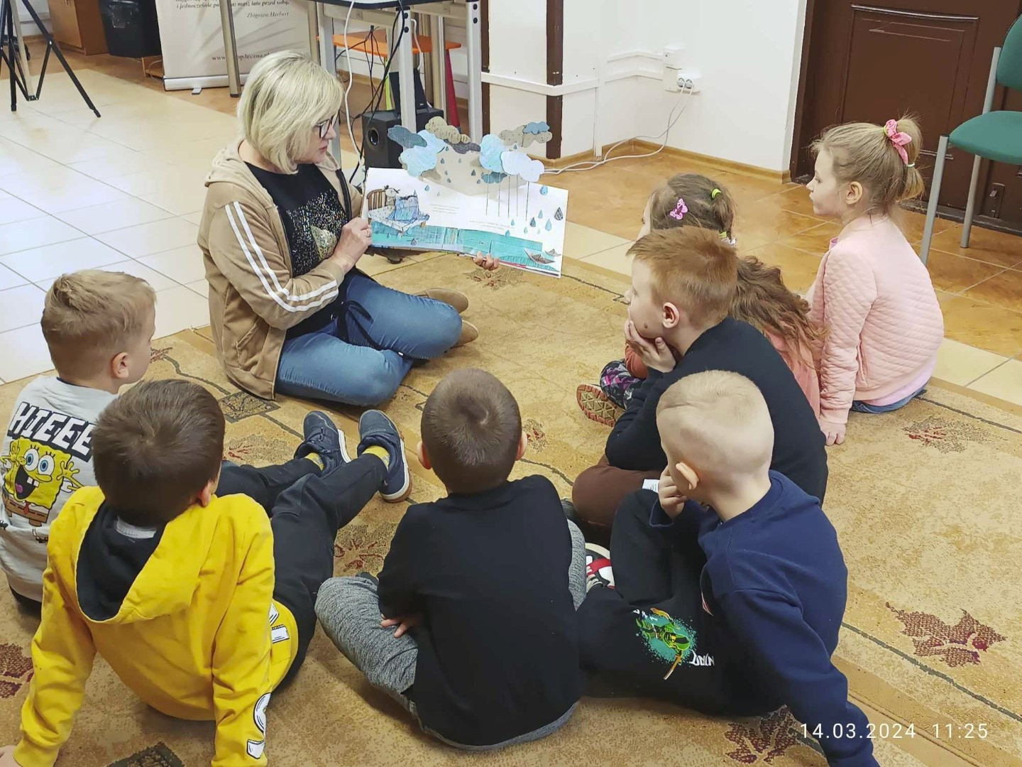 Dzieci bardzo aktywnie brały udział w zajęciach i odpowiadały na pytania bibliotekarki.