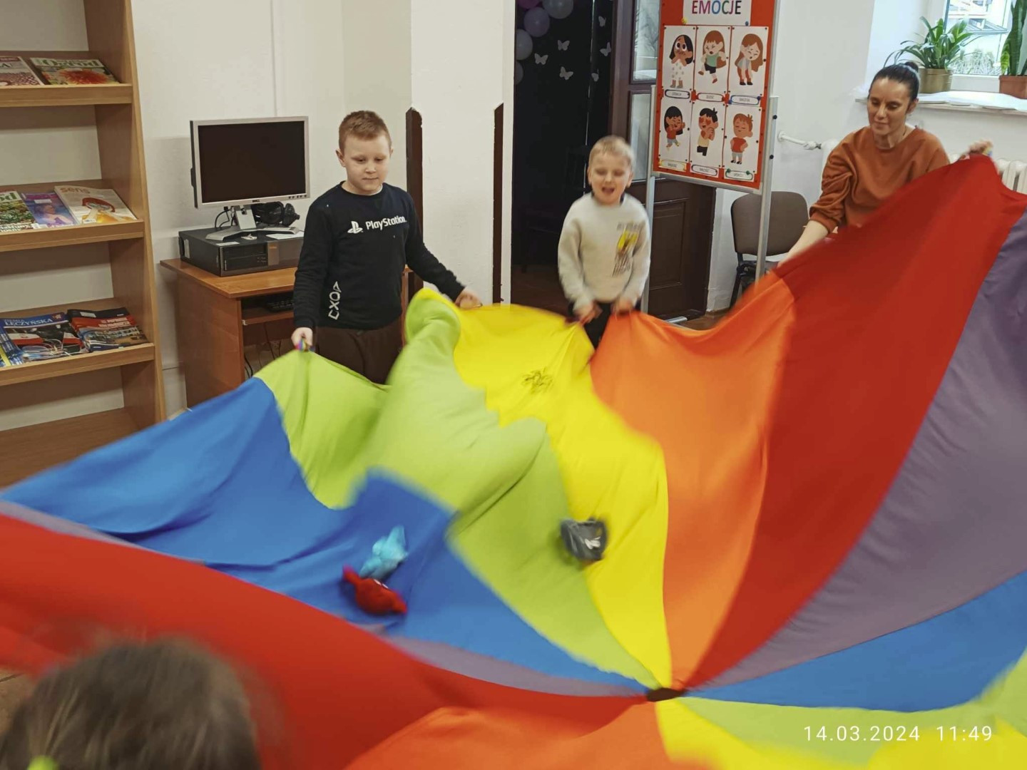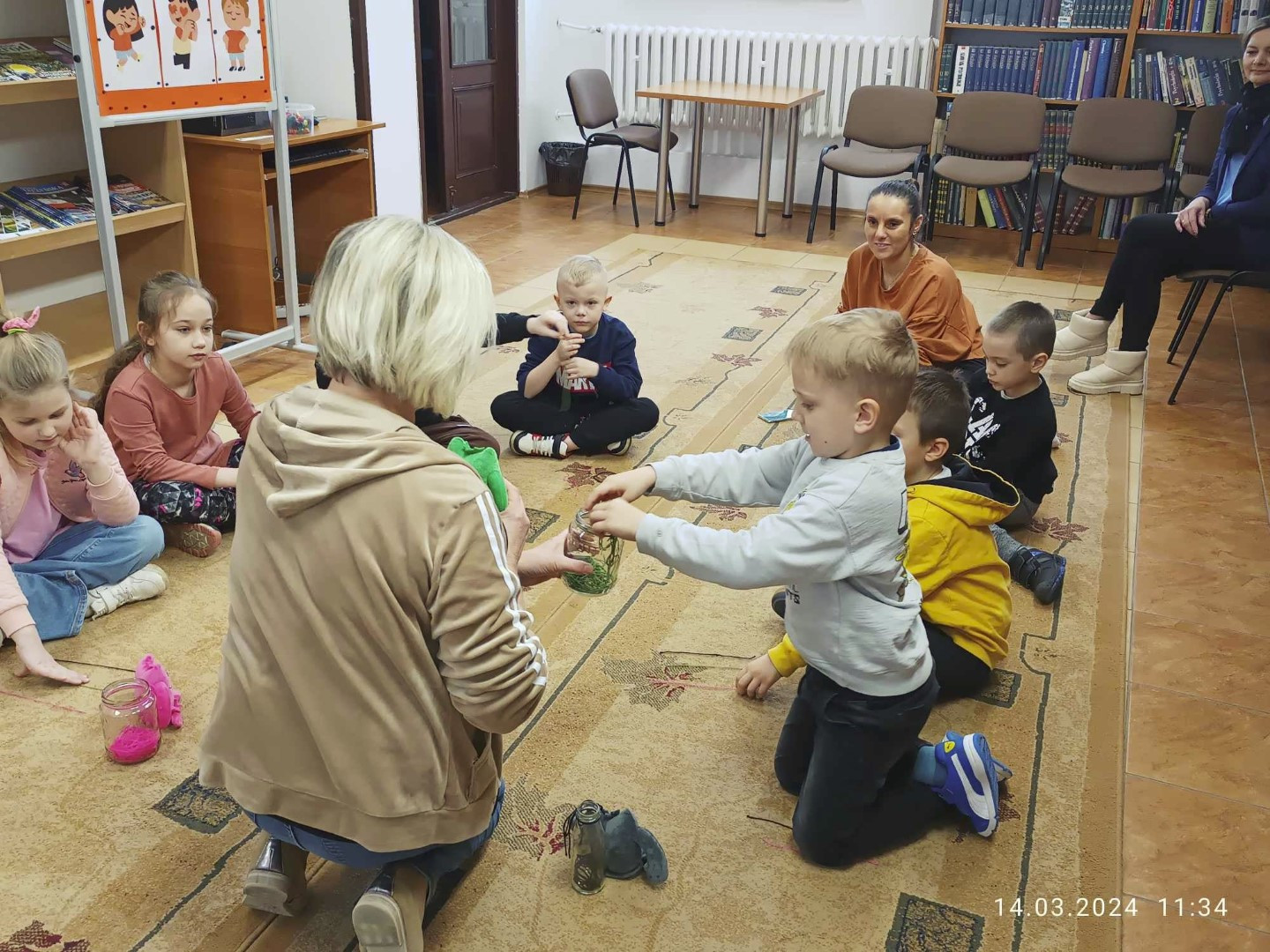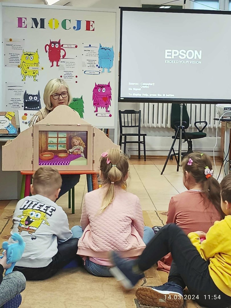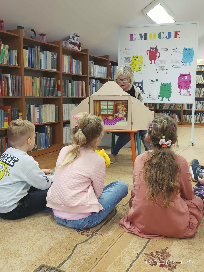Dzieci bardzo aktywnie brały udział w zajęciach i odpowiadały na pytania bibliotekarki.