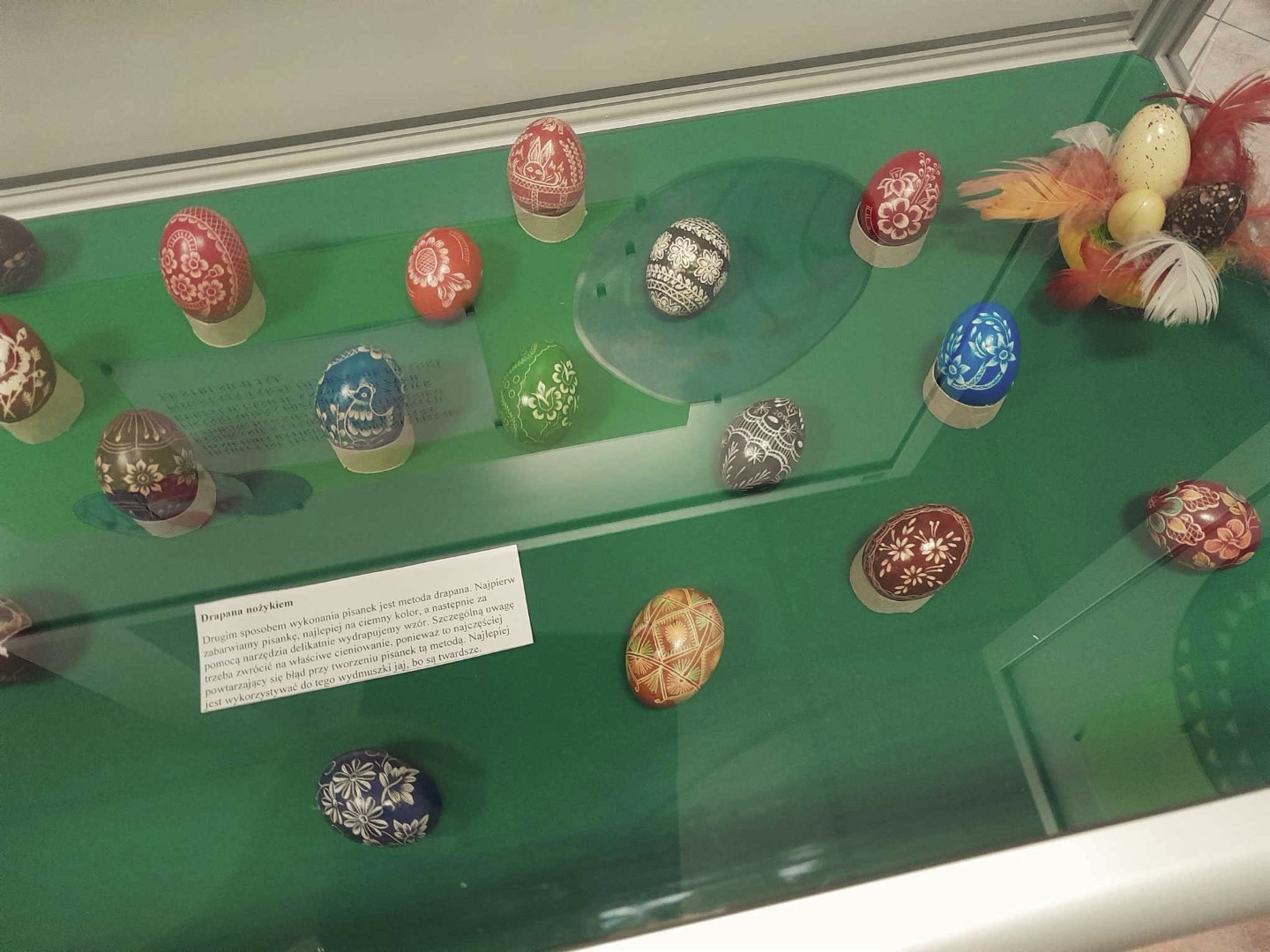 Ekspozycja zawiera kolekcję pisanek, którą użyczyła nam na potrzeby wystawy nasza czytelniczka Danuta Binkiewicz- Kołodziej.