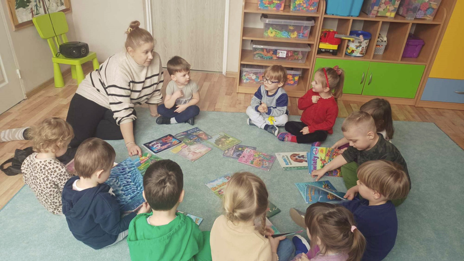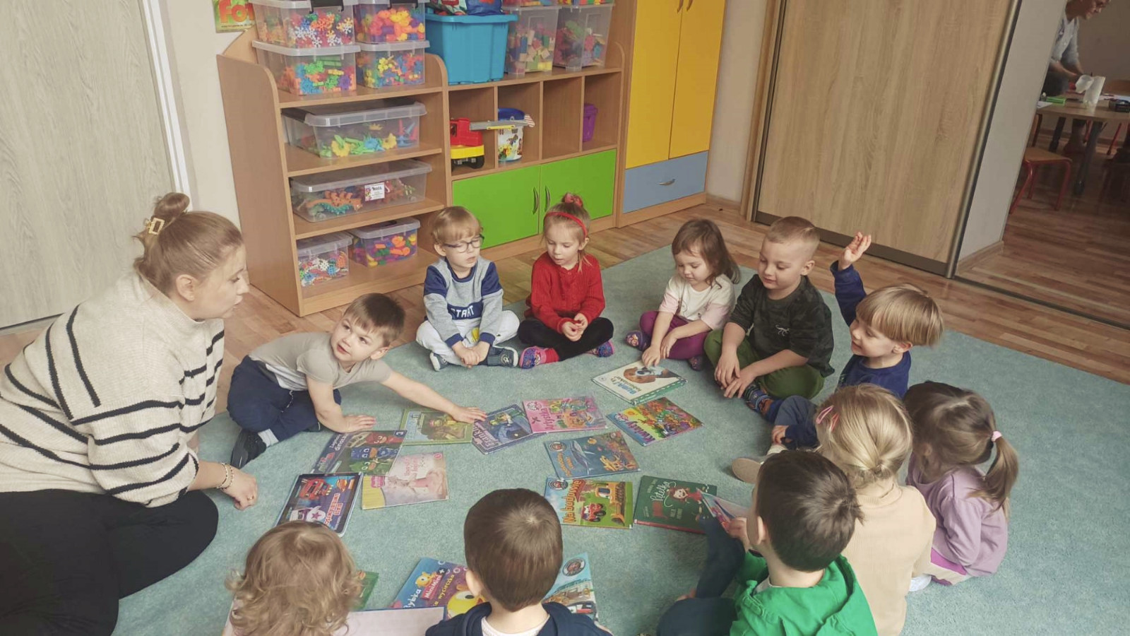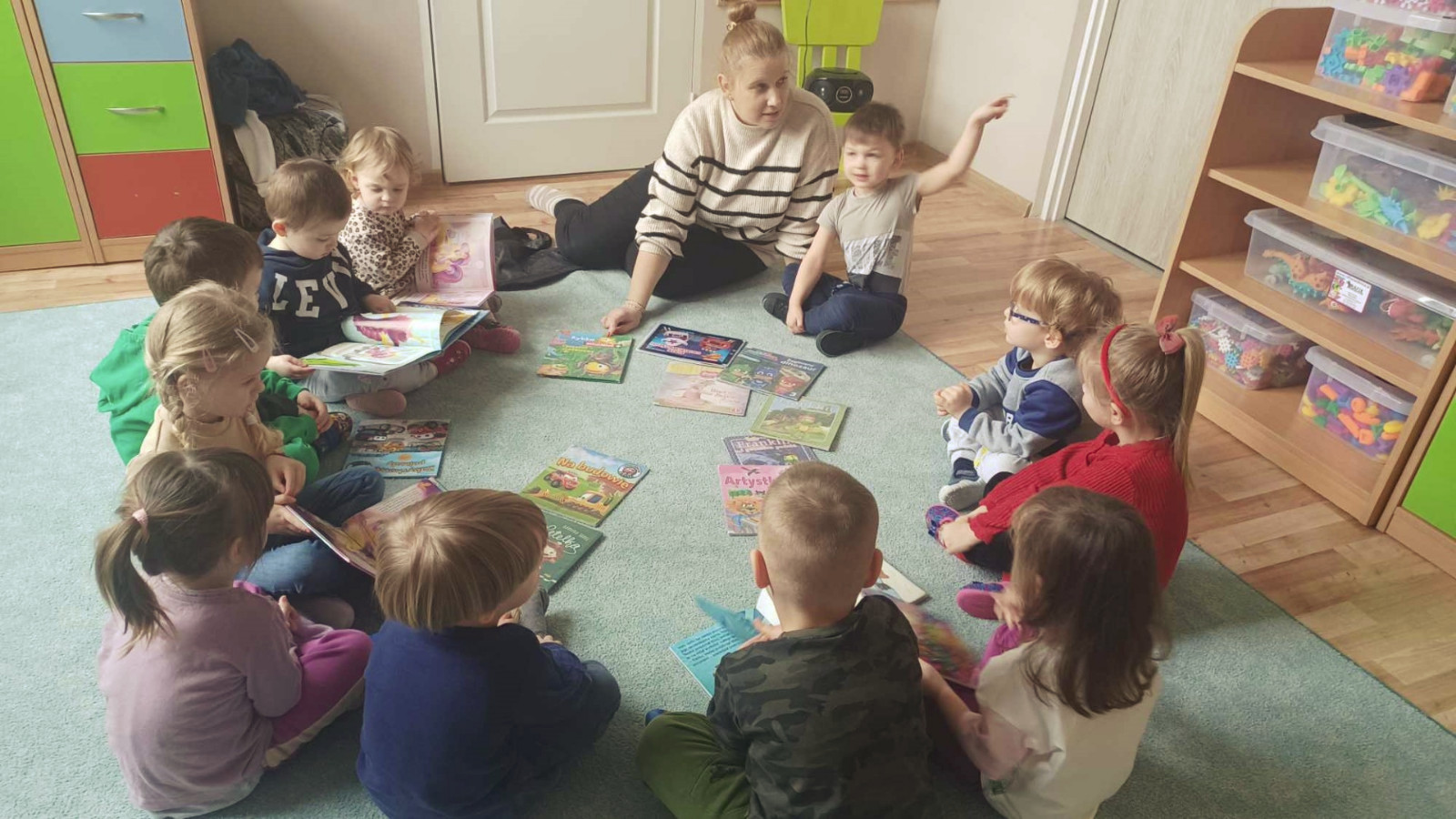Poniedziałek to dzień wypożyczania książeczek przez grupę 2-3 latków z Przedszkola Mali Odkrywcy .