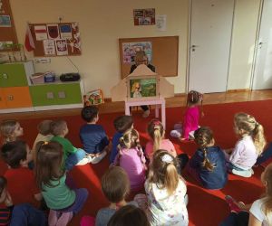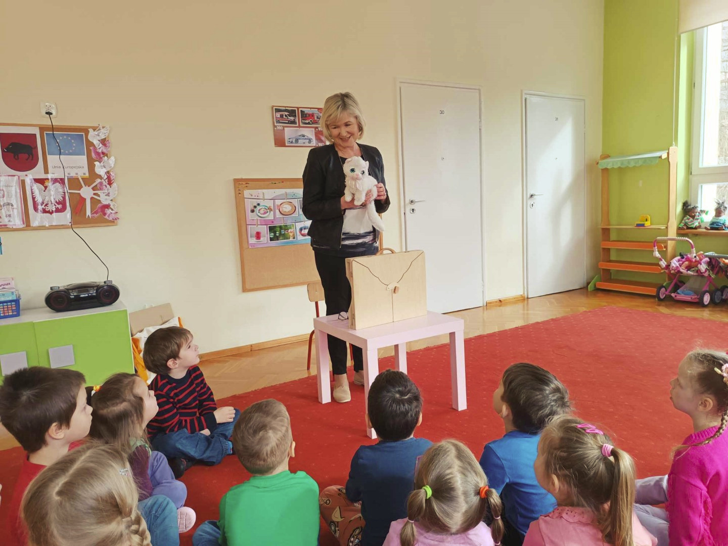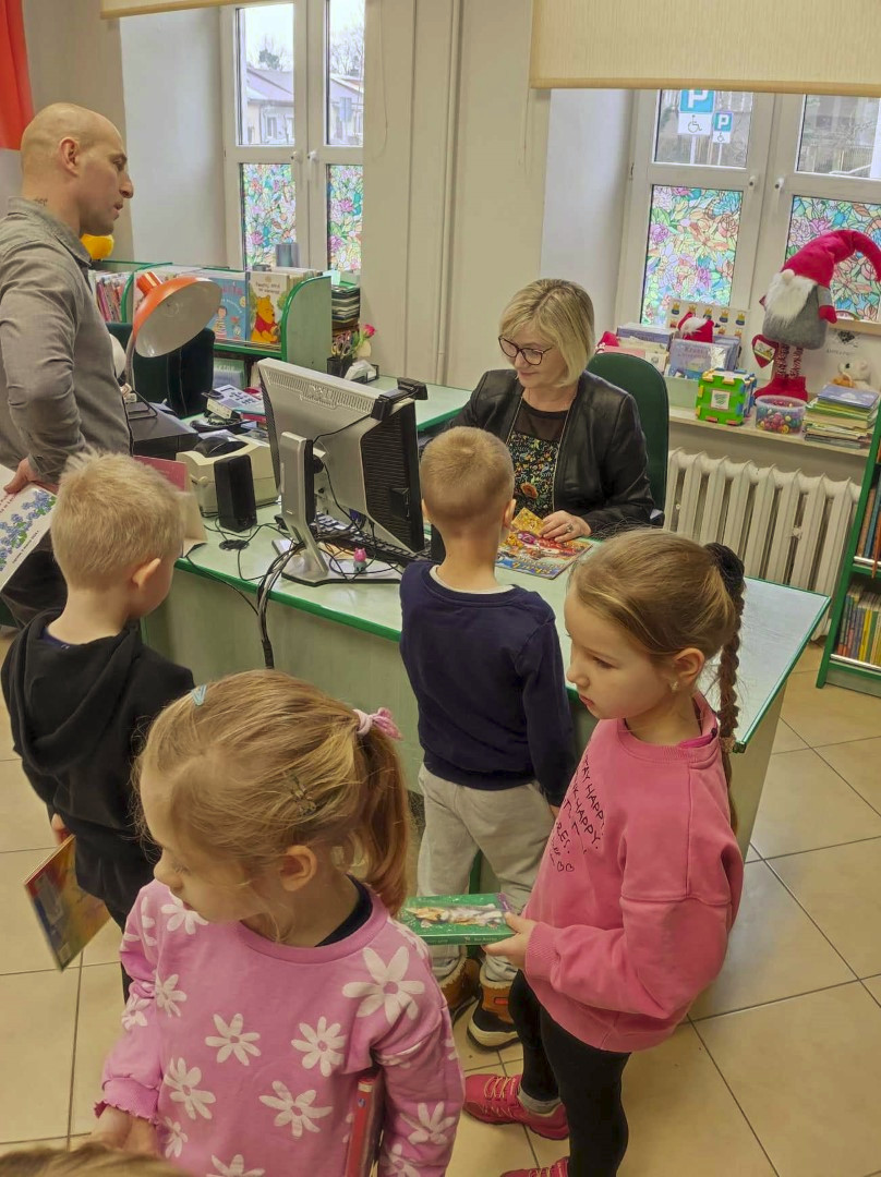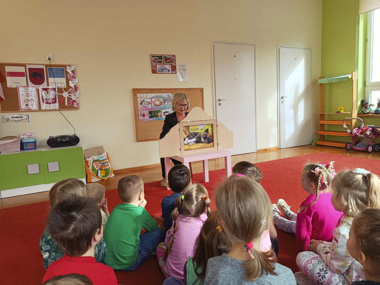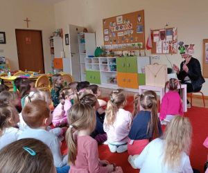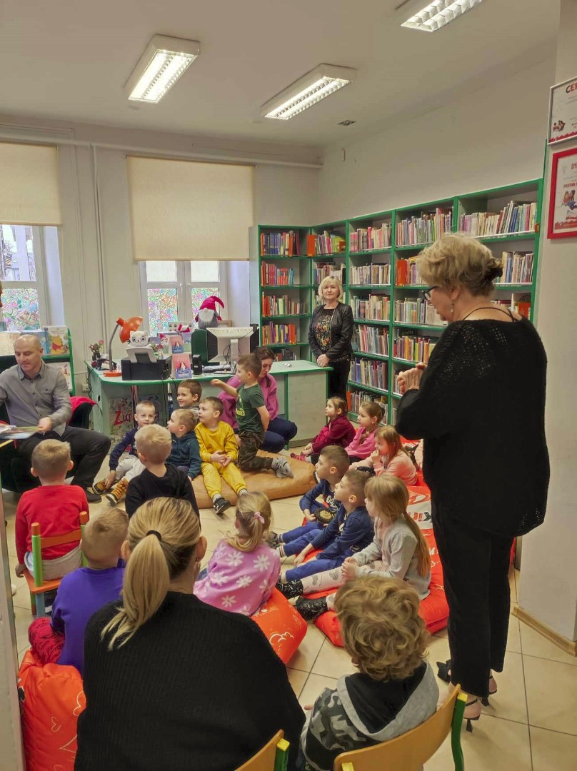 W dniu 28 lutego bibliotekarka z Oddziału dla Dzieci - Biblioteki przy ul. Bożnicznej 21- odwiedziła przedszkolaków z grupy „Kotki” i "Misie" w Przedszkole nr 4 w Łęcznej
