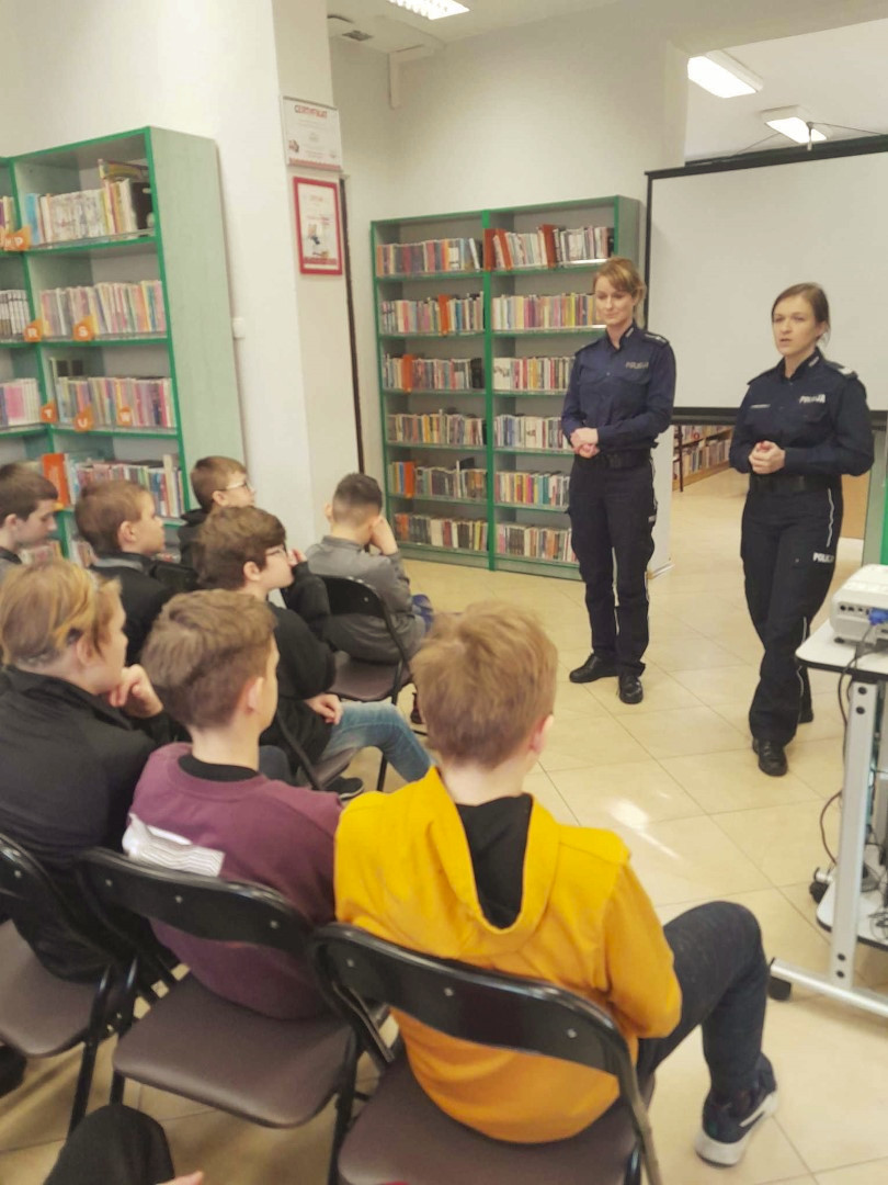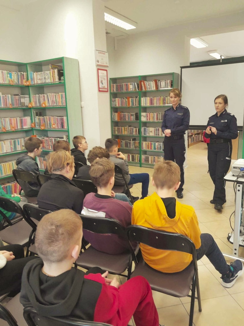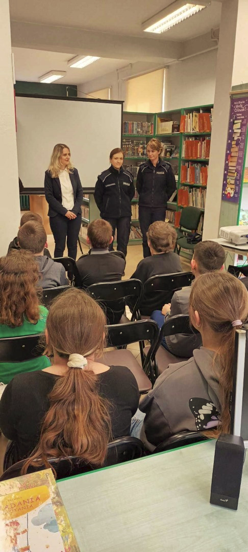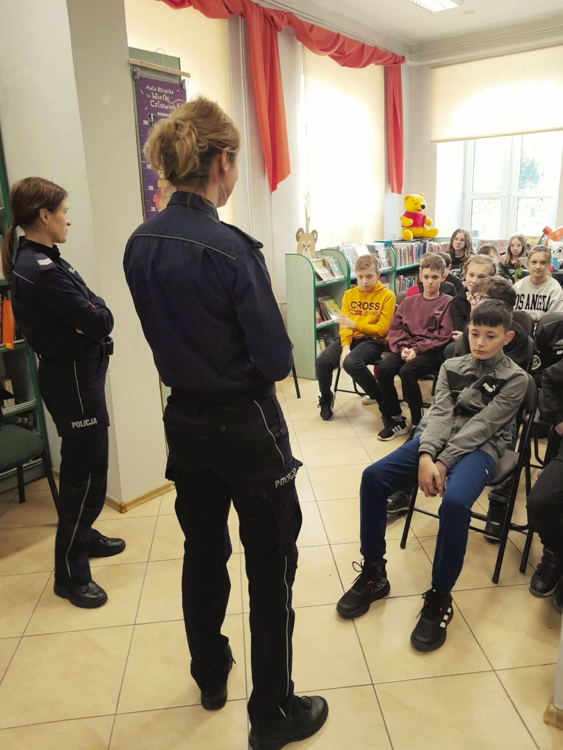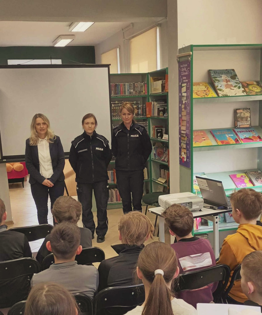 Dzieci podczas spotkania dowiedziały się także, z jakimi zagrożeniami mogą zetknąć się korzystając z Internetu. Policjantki omówiły problemy: kontaktu z niebezpiecznymi treściami czy osobami, przemocy rówieśniczej i uzależnienia od Internetu.