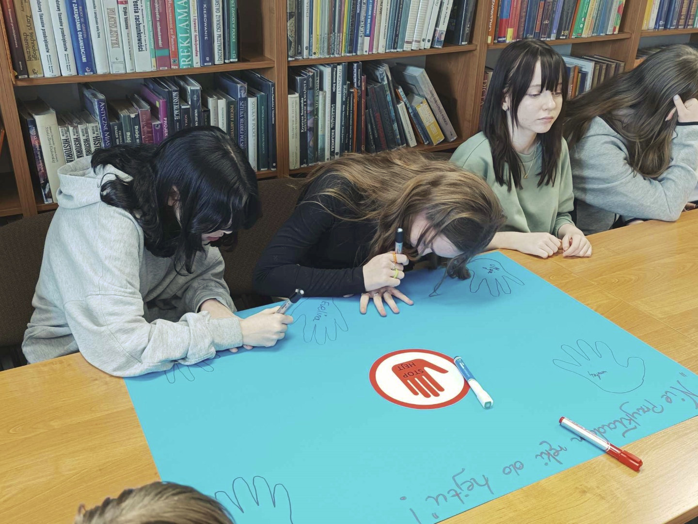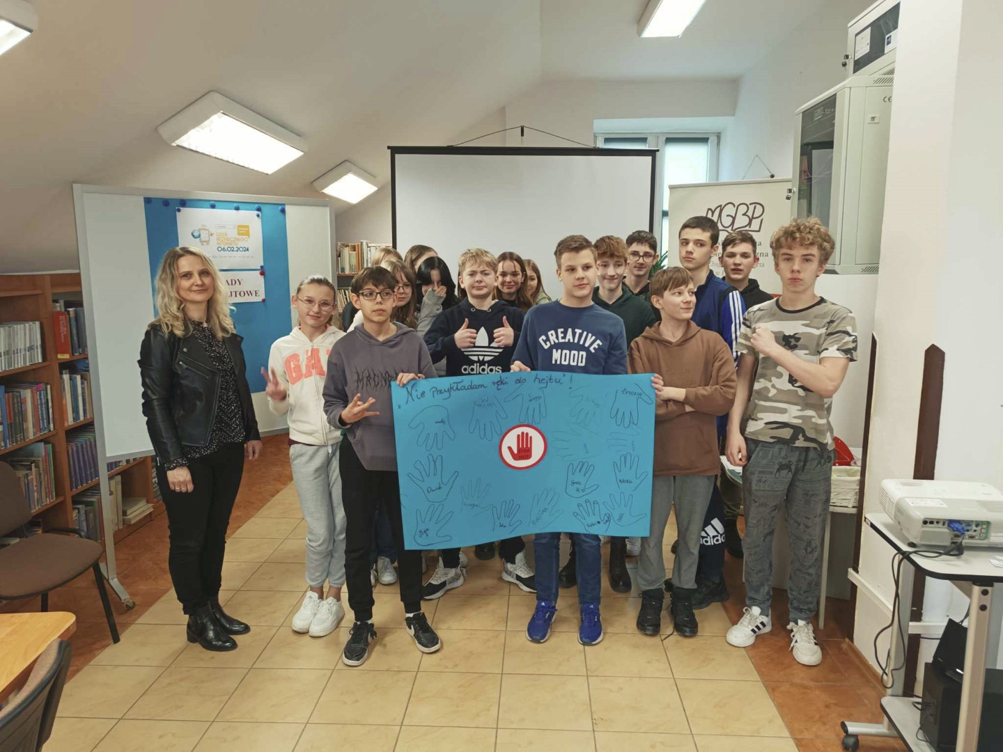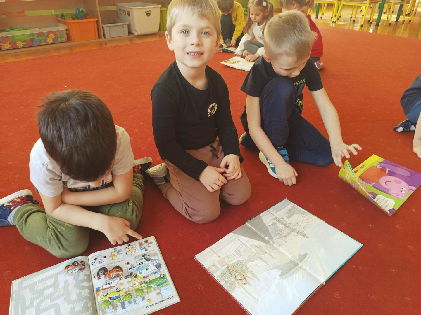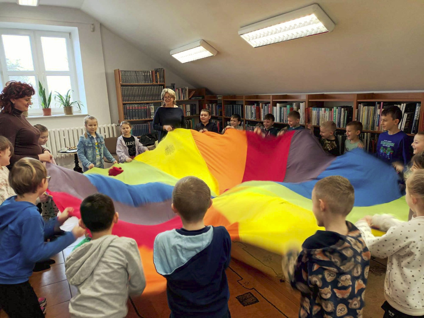 Podczas wizyty dzieci wysłuchały książki autorstwa Wiesława Drabika pt. "Dzień Kota" oraz bajki Kamishibai pt. "Kotka Psotka". Dziękujemy za zaproszenie i do zobaczenia ponownie.