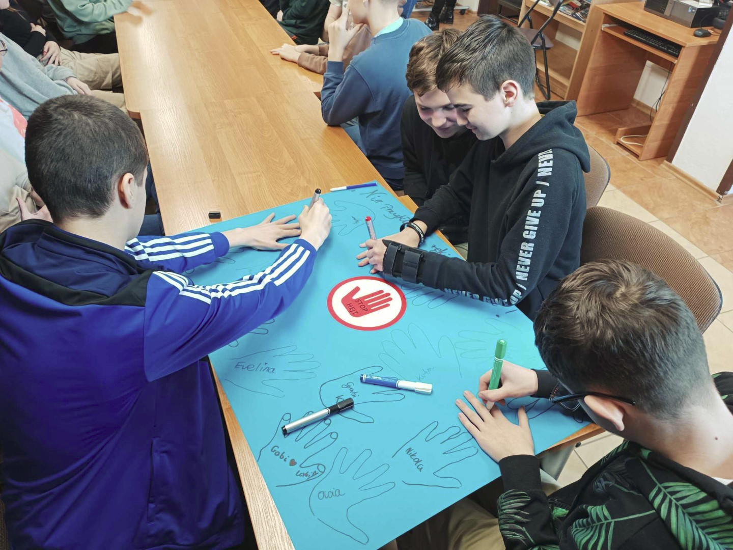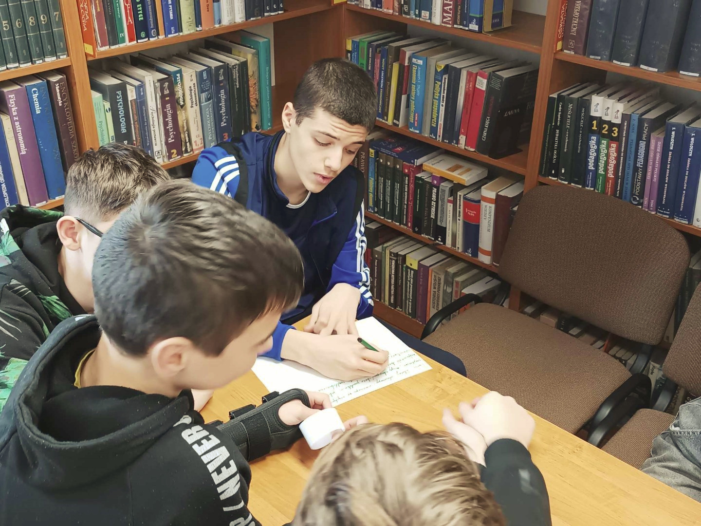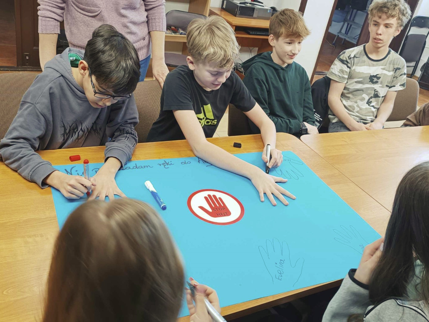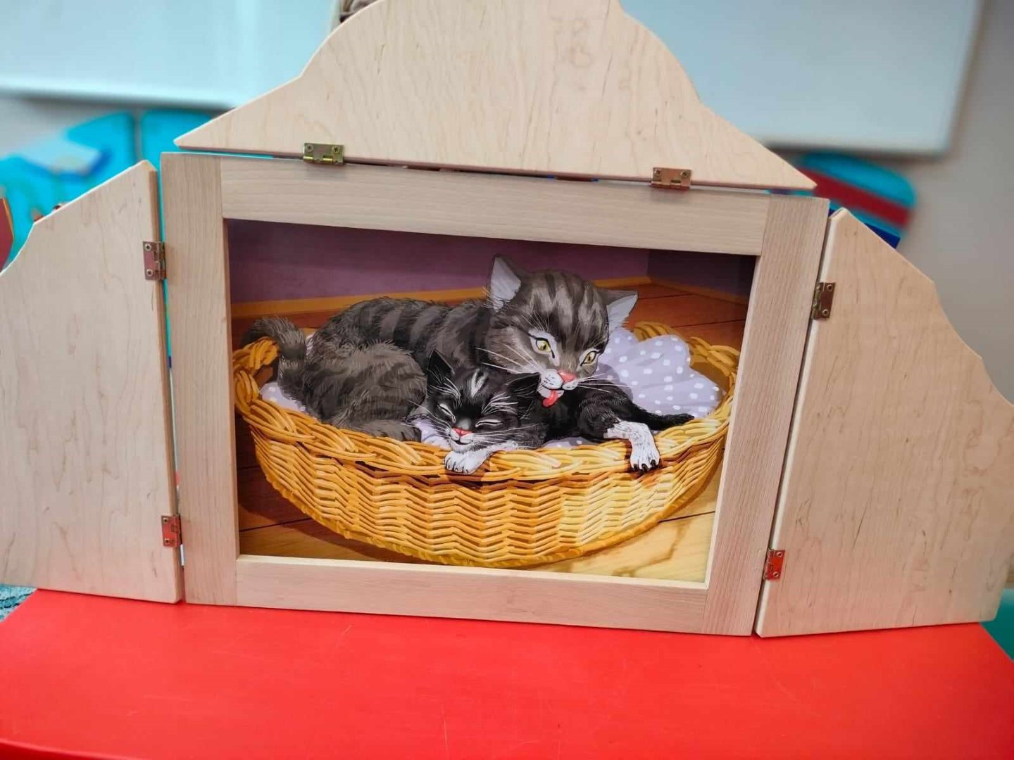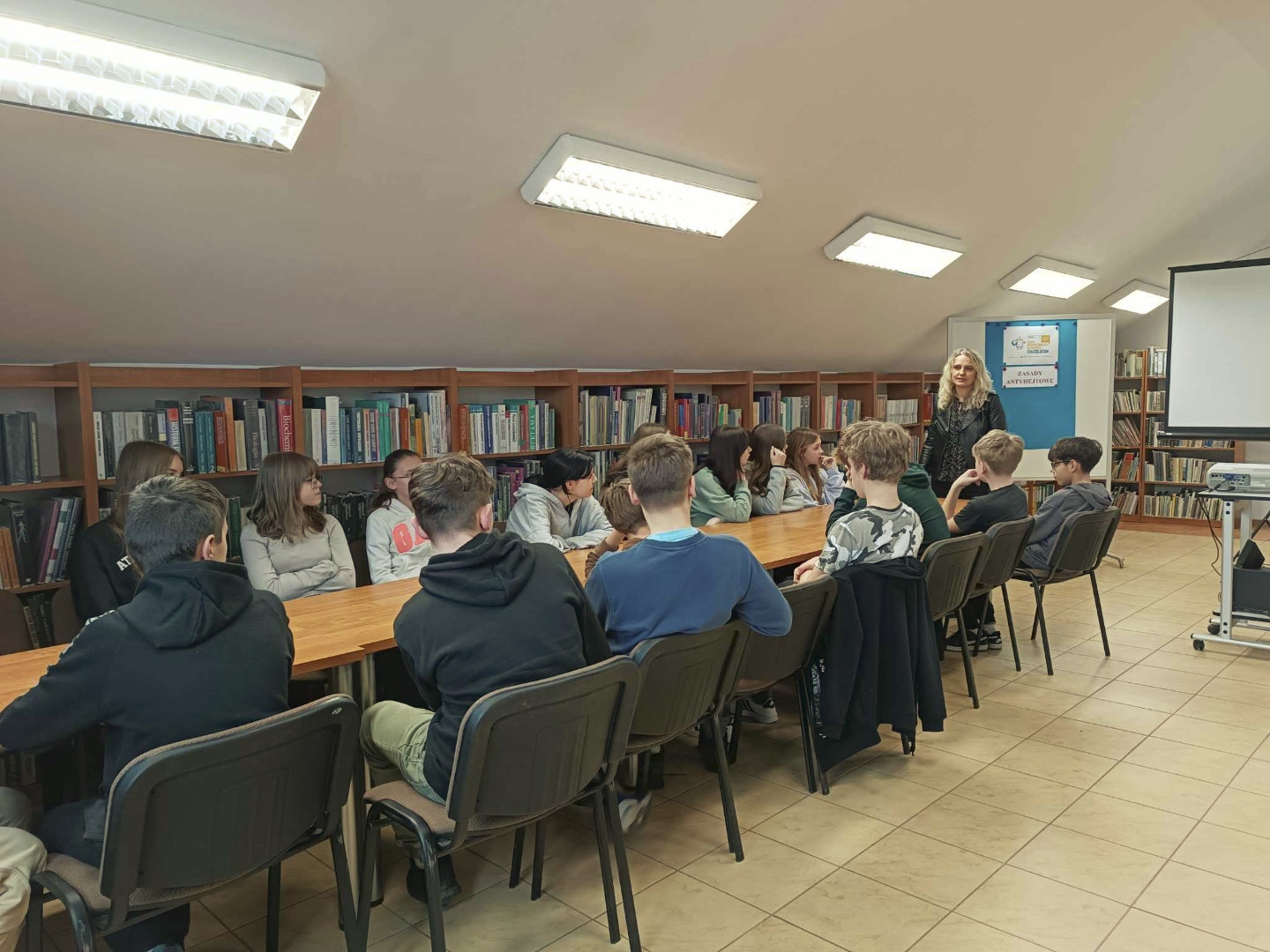 Podczas wizyty dzieci wysłuchały książki autorstwa Wiesława Drabika pt. "Dzień Kota" oraz bajki Kamishibai pt. "Kotka Psotka". Dziękujemy za zaproszenie i do zobaczenia ponownie.