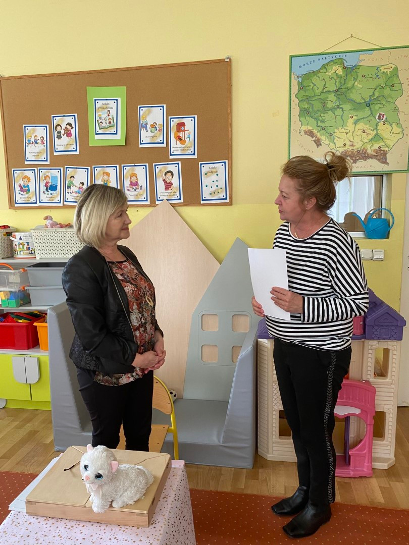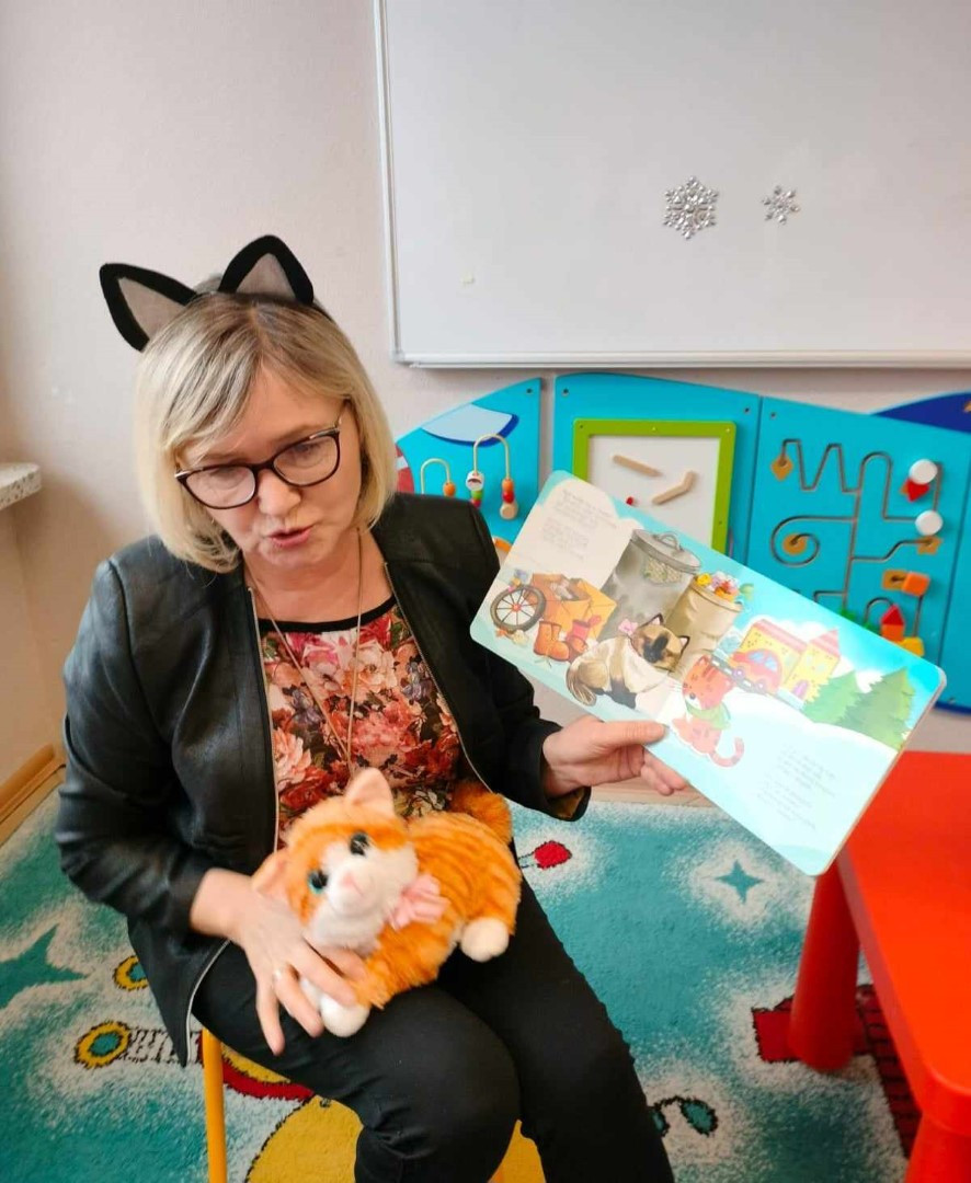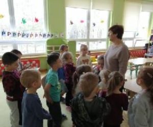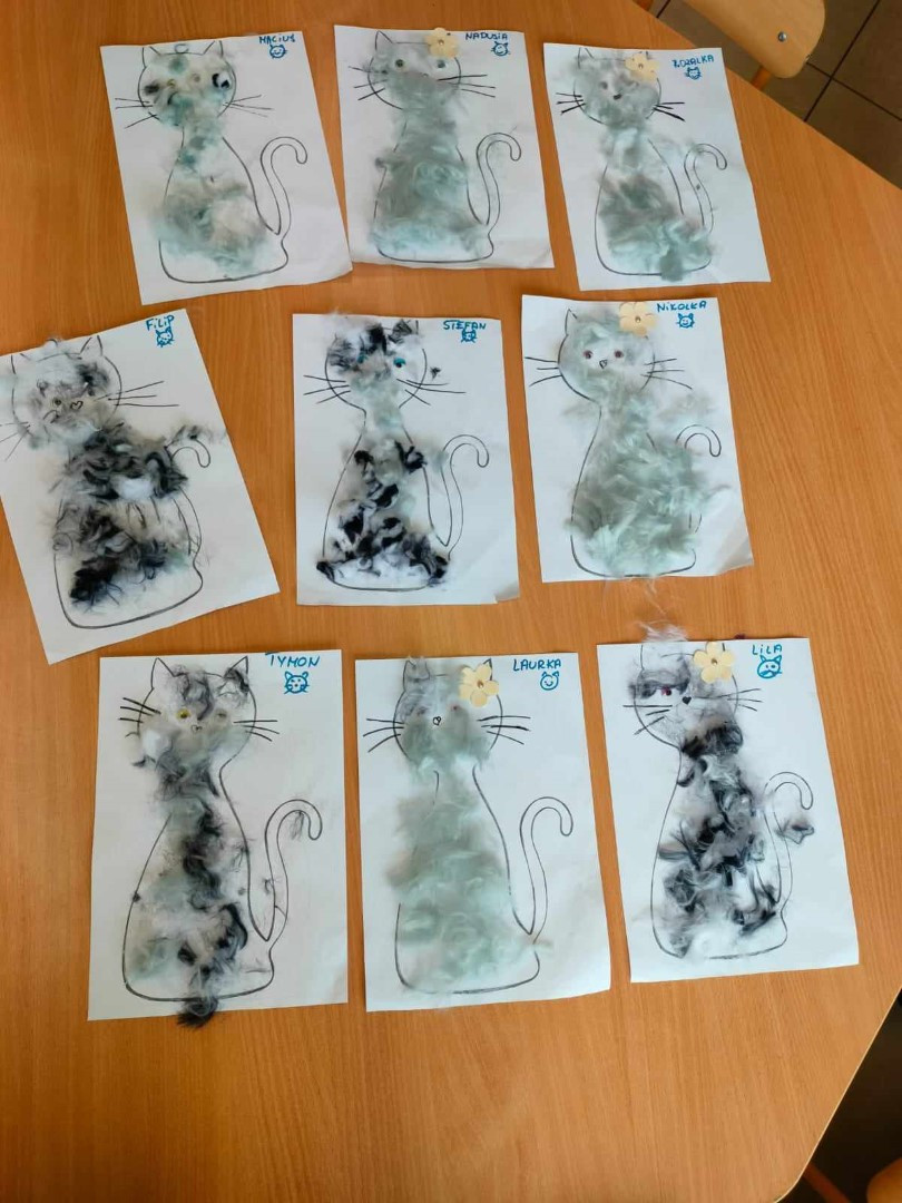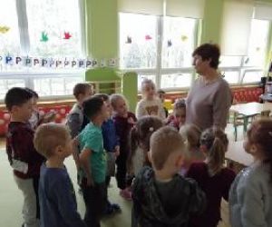 Wybór tematyki spotkania nie był przypadkowy, bowiem kilka dni temu świętowaliśmy Dzień Kota. Podczas wizyty dzieci wysłuchały książki autorstwa Wiesława Drabika pt. "Dzień Kota" oraz bajki Kamishibai pt. "Kotka Psotka". Na zakończenie przedszkolaki wykonały pracę plastyczną z kotkiem- bohaterem dzisiejszego spotkania.