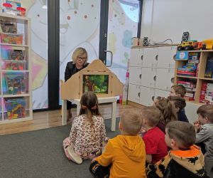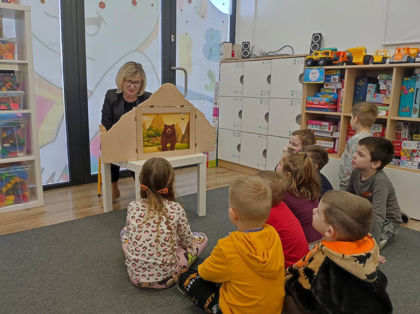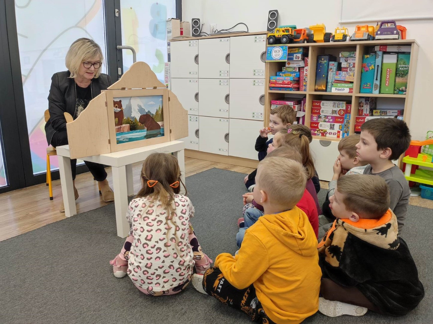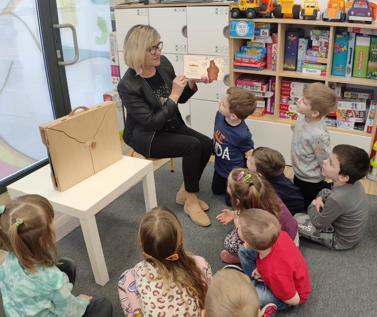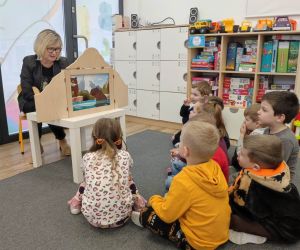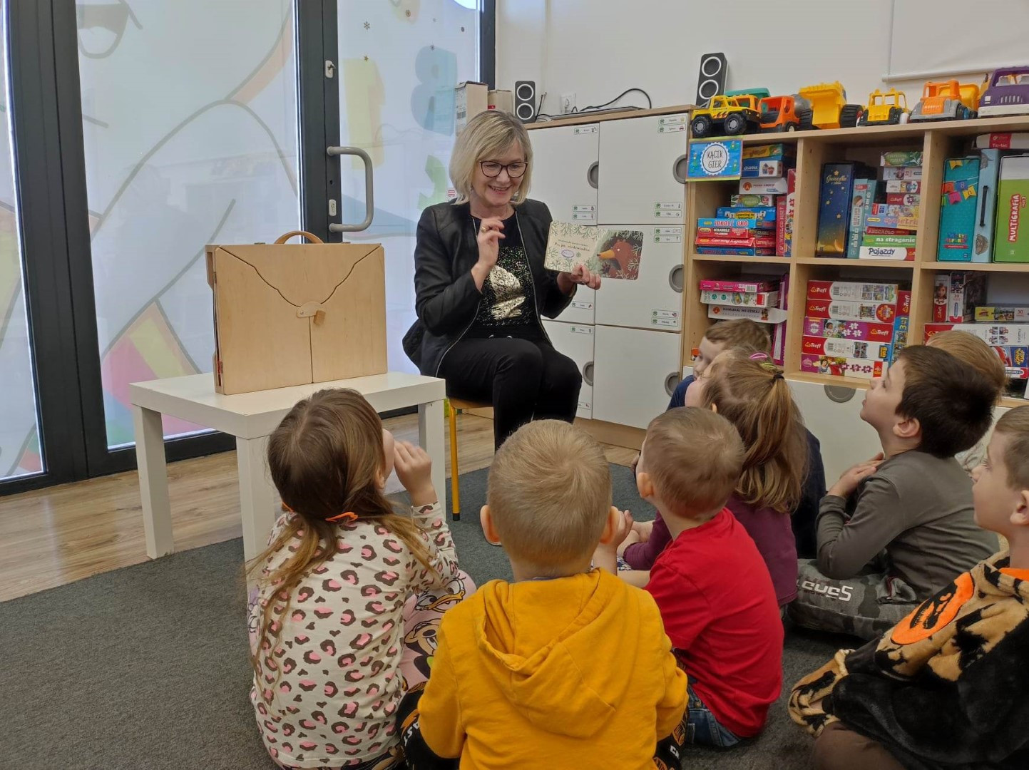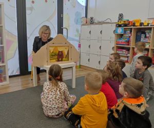 W dniu 13 lutego bibliotekarka z Oddziału dla Dzieci Biblioteki przy ul. Bożnicznej 21 odwiedziła dzieci z grupy Sówki i Biedronki w Żłobek Niepubliczny Mali Odkrywcy. Bibliotekarka przyszła z tajemniczą skrzynką, w której mieściły się Ilustrowane opowieści teatrzyku Kamishibai.