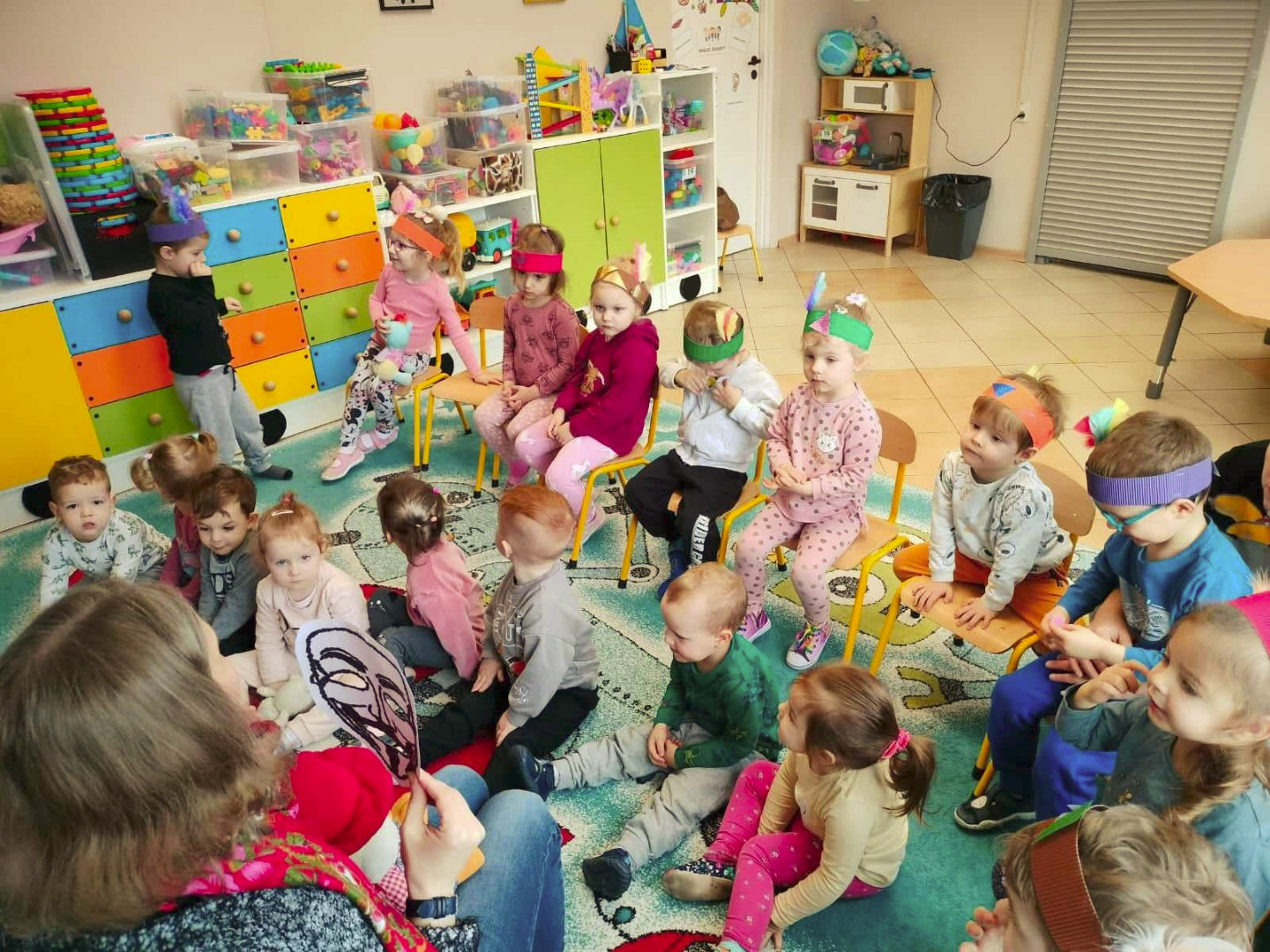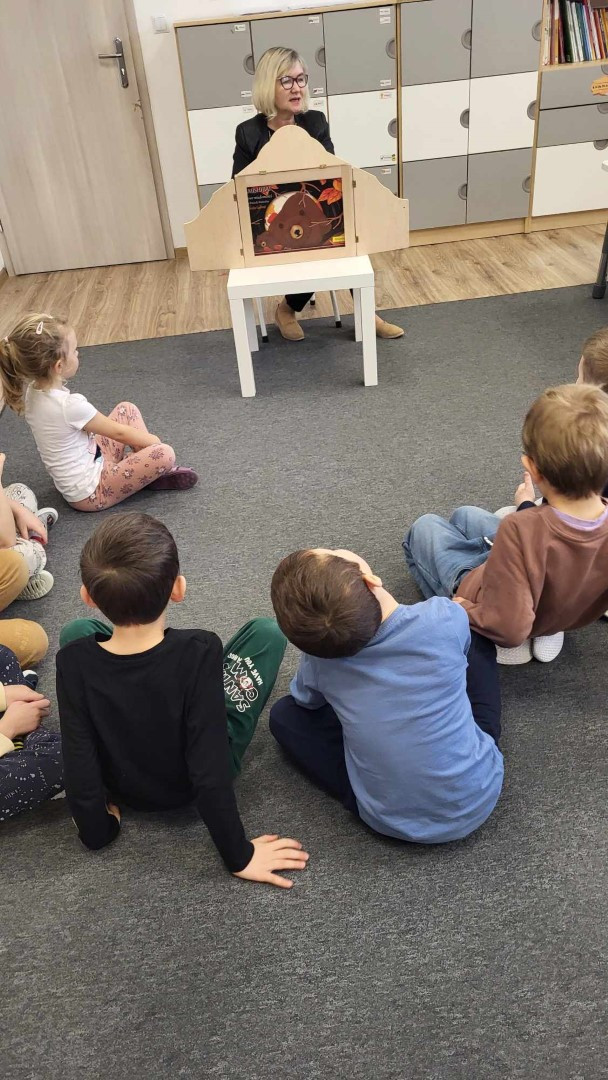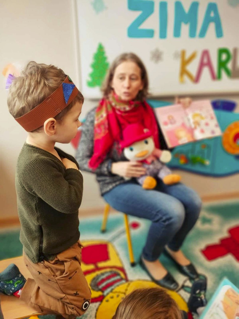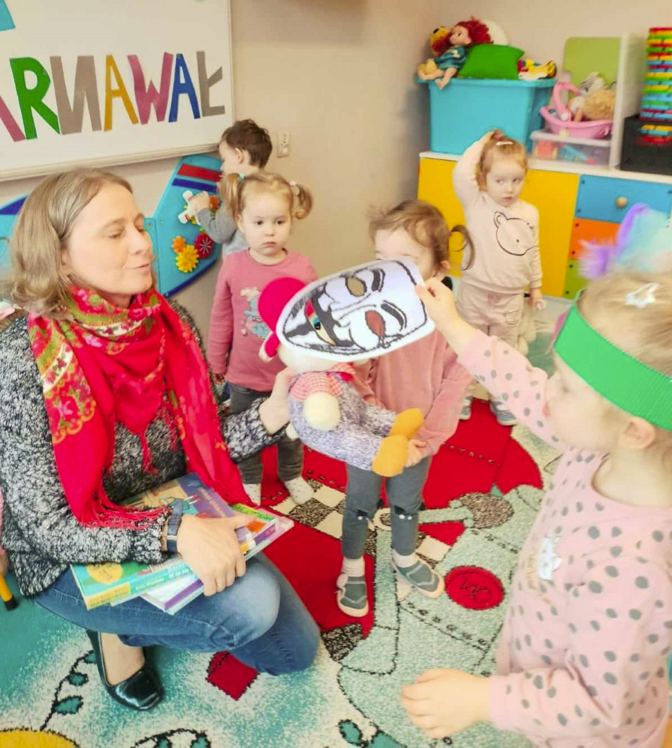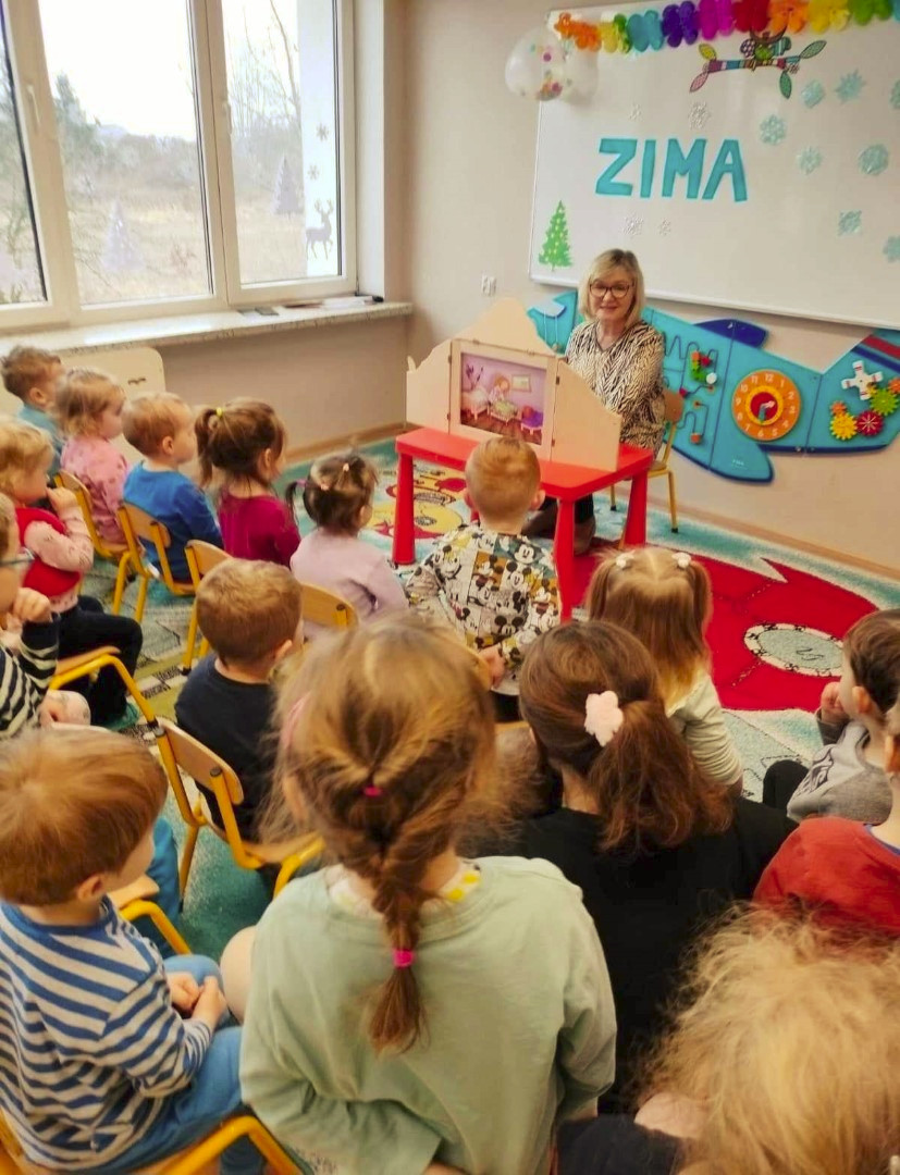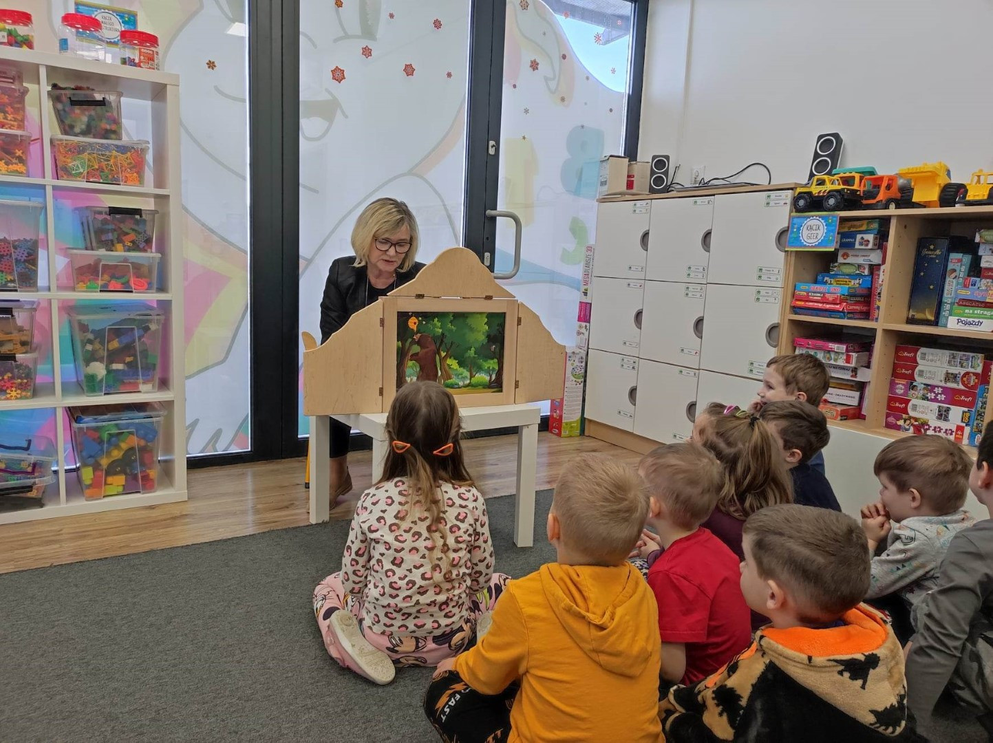 W dniu 13 lutego bibliotekarka z Oddziału dla Dzieci Biblioteki przy ul. Bożnicznej 21 odwiedziła dzieci z grupy Sówki i Biedronki w Żłobek Niepubliczny Mali Odkrywcy. Bibliotekarka przyszła z tajemniczą skrzynką, w której mieściły się Ilustrowane opowieści teatrzyku Kamishibai.