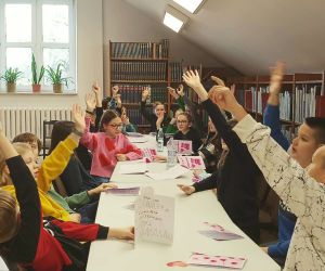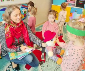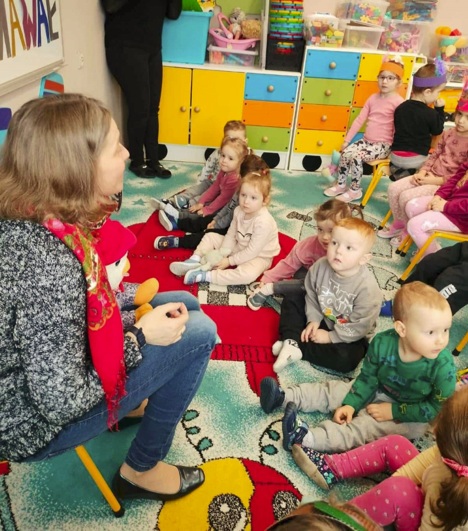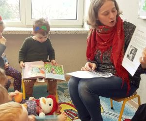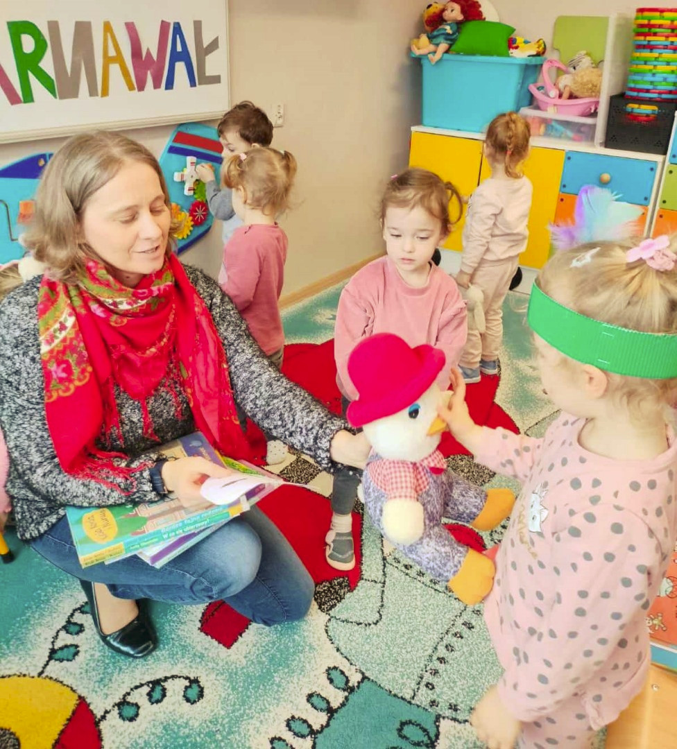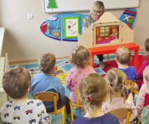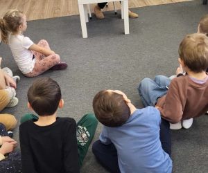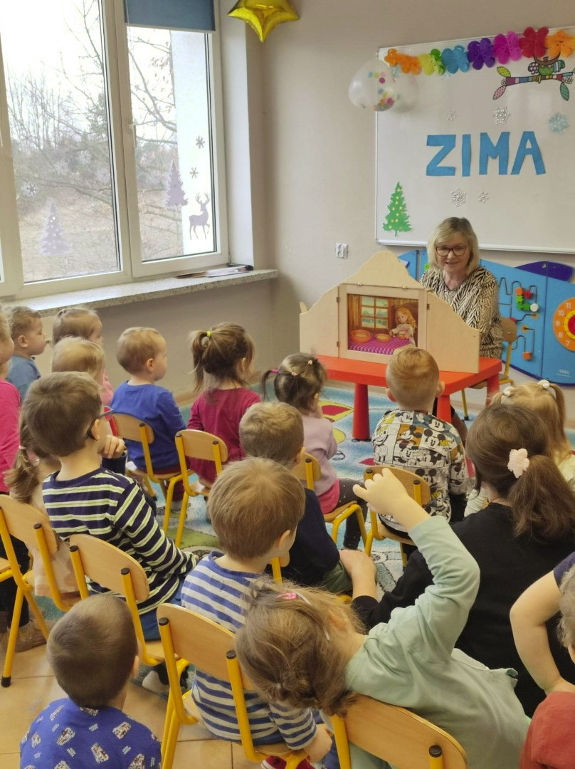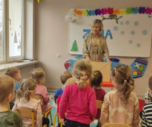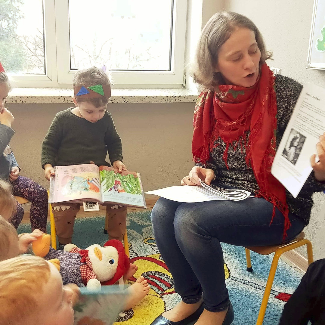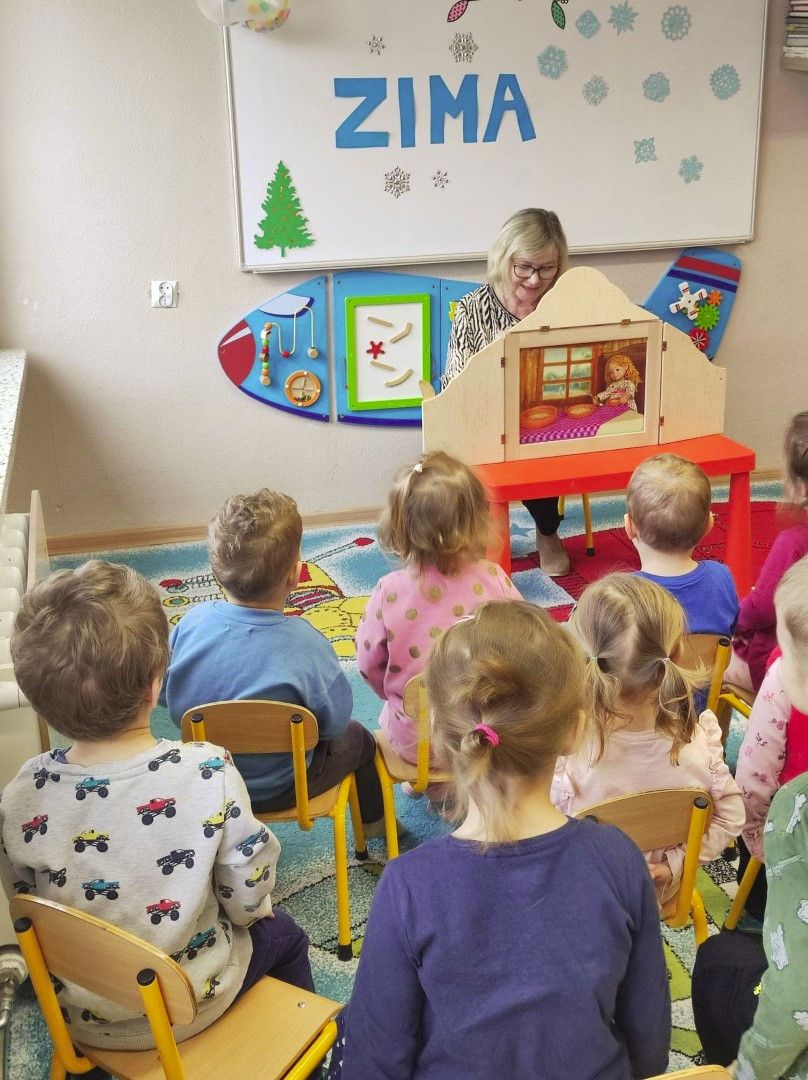 W dniu 13 lutego bibliotekarka z Oddziału dla Dzieci Biblioteki przy ul. Bożnicznej 21 odwiedziła dzieci z grupy Sówki i Biedronki w Żłobek Niepubliczny Mali Odkrywcy. Bibliotekarka przyszła z tajemniczą skrzynką, w której mieściły się Ilustrowane opowieści teatrzyku Kamishibai.