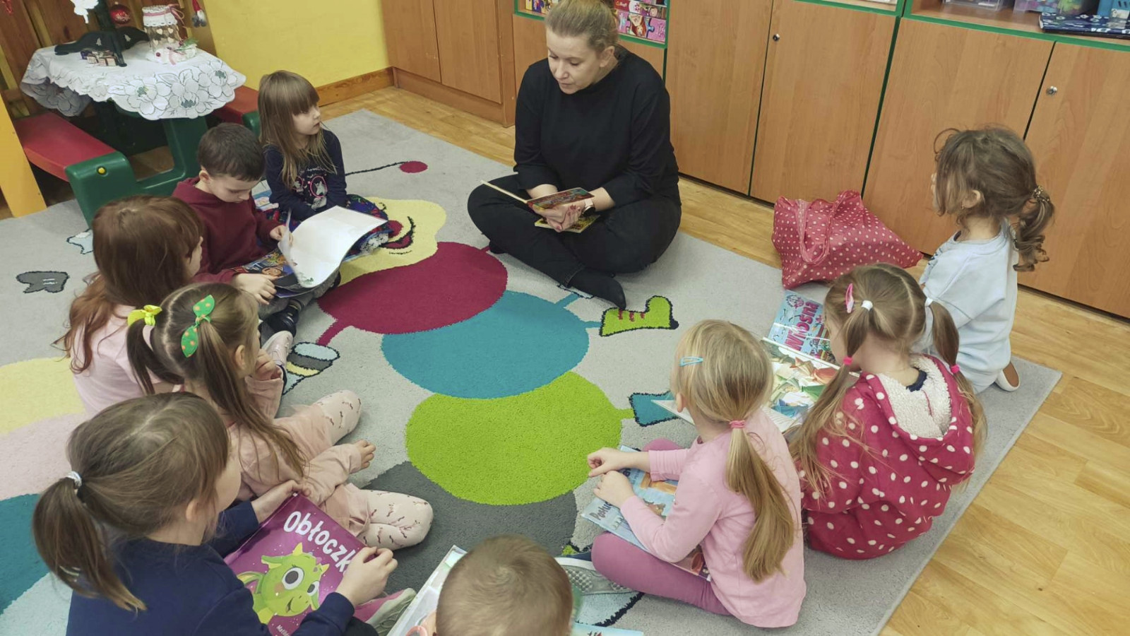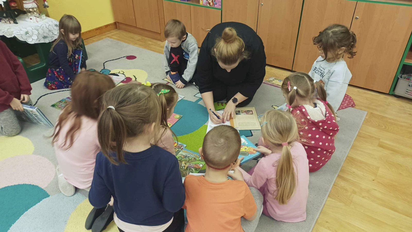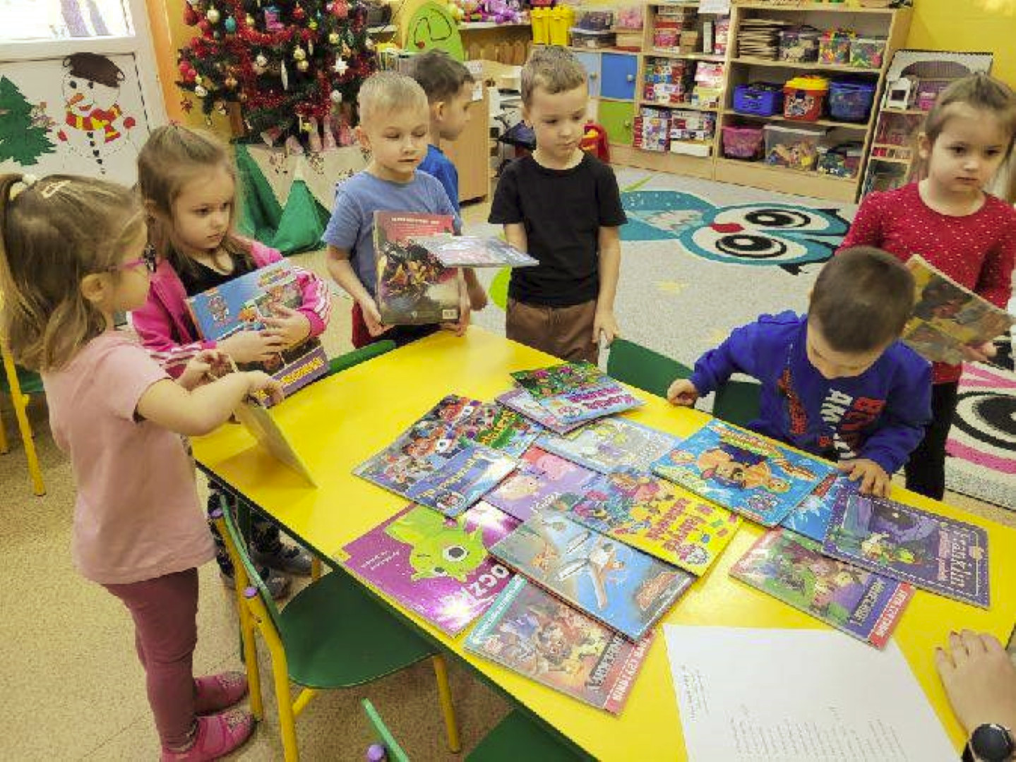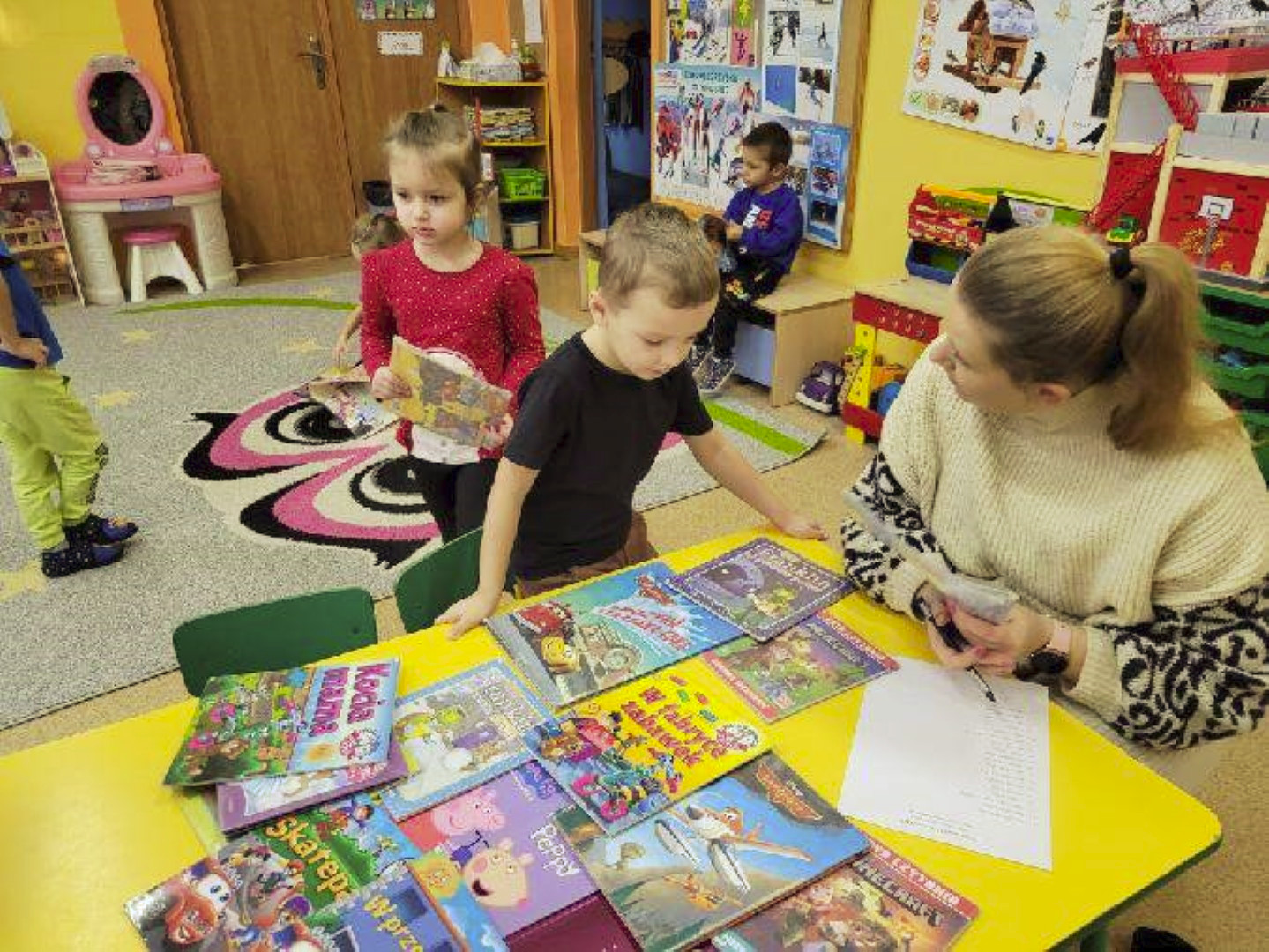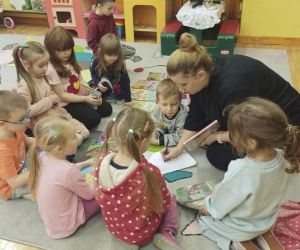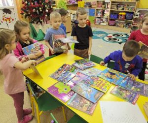 Gdy za oknem padał śnieg i mróz szczypał w uszy Bibliotekarka Ola z Fili nr 1 odwiedziła dzieci z grupy „Misie” w Przedszkolu Publicznym nr 2. Przedszkolaki wysłuchały utworu Aleksandra Fredry pt. „Dwa koguty” oraz wypożyczyły książeczki z ulubionymi bohaterami.