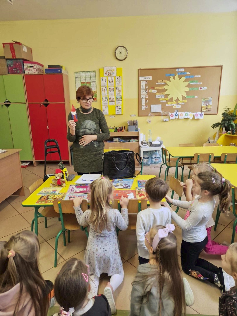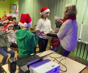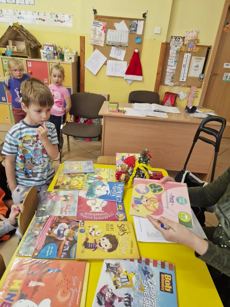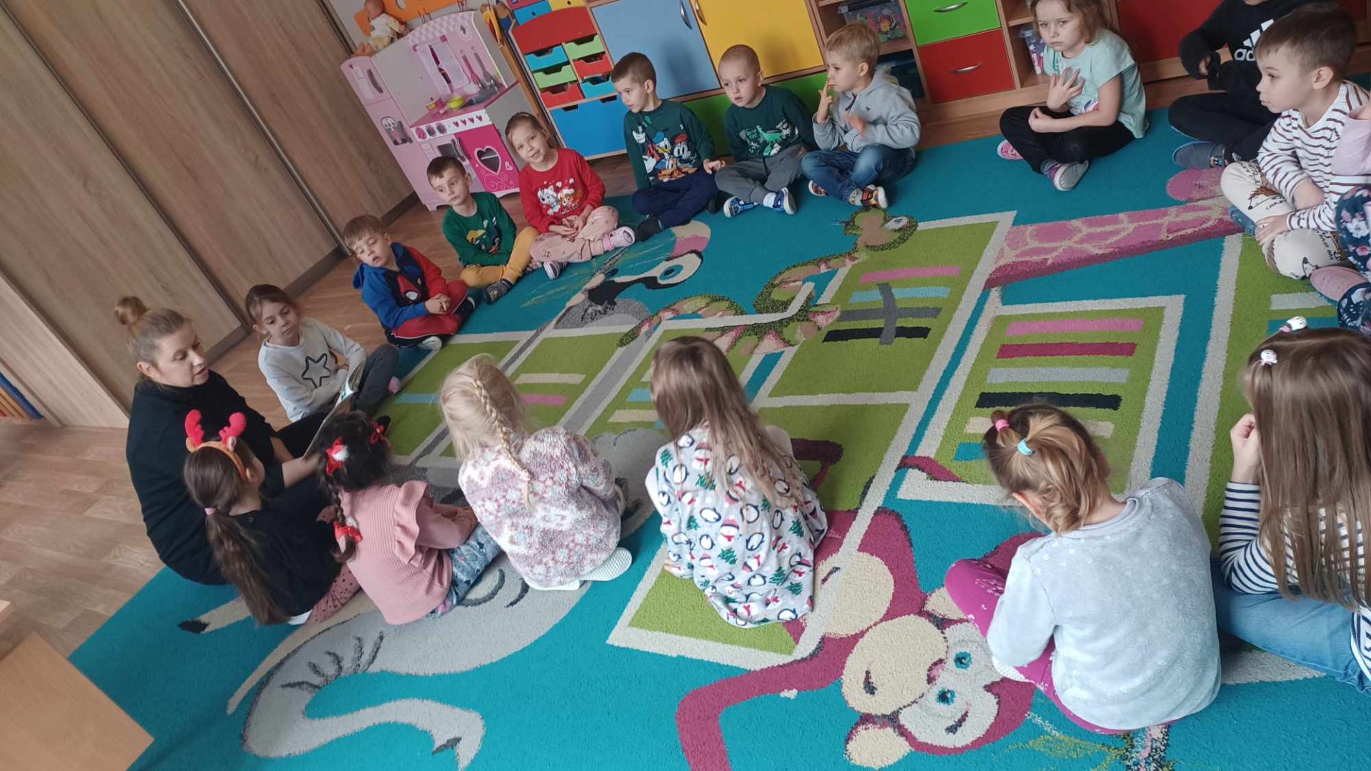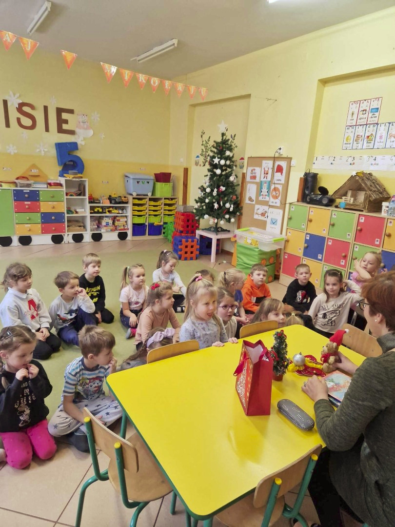 Niedawno były Mikołajki i z tej okazji dzieci wysłuchały opowieści Wiesława Drabika pt.: „Wielka zadyma z Mikołajem”. Gdy w ciepłym domu Agatka spogląda przez okno z komina wypadł Mikołaj i bezdomny kot. Agatka miała szczęście, że mogła wybrać sobie prezent. Jaki? Dzieci dowiedziały po wysłuchaniu tej zabawnej historii. Morał z tej opowieści jest taki, że potrzebujemy siebie nawzajem!