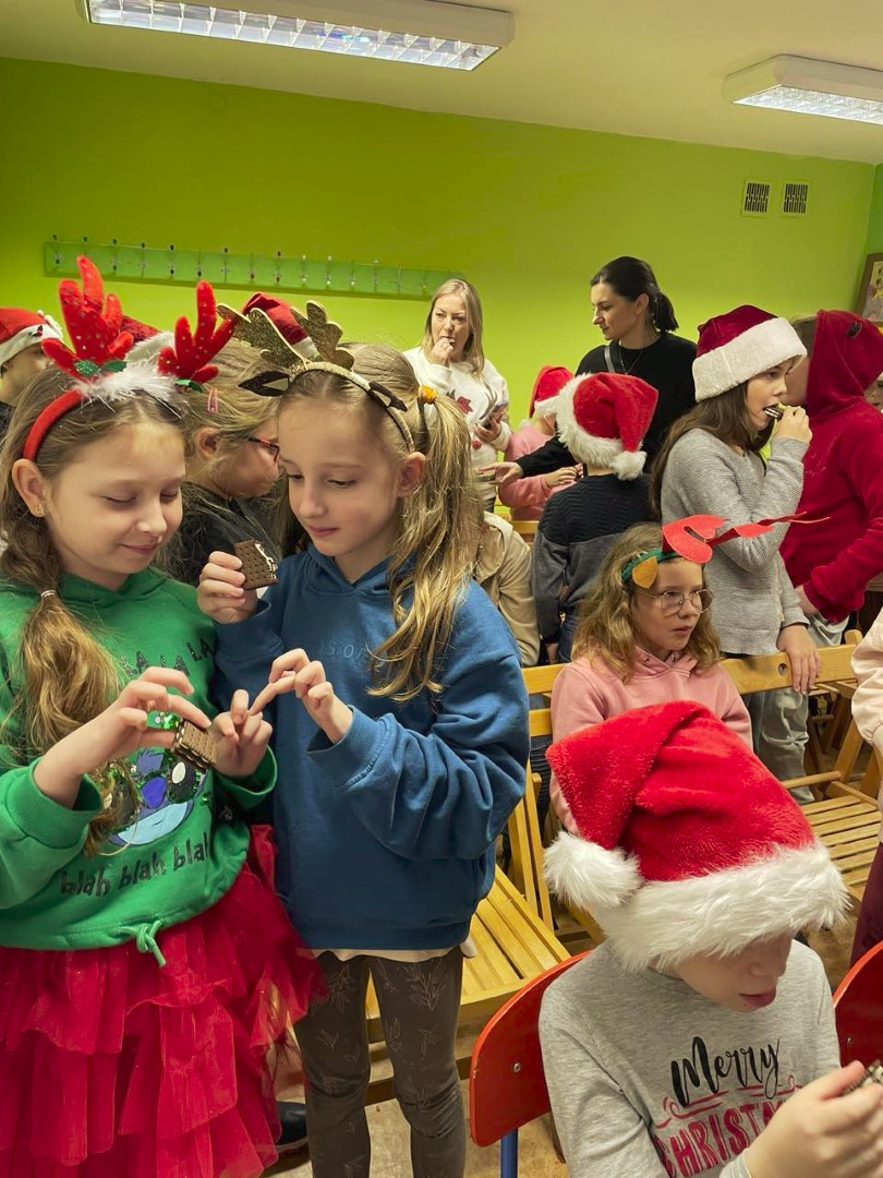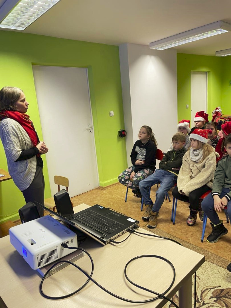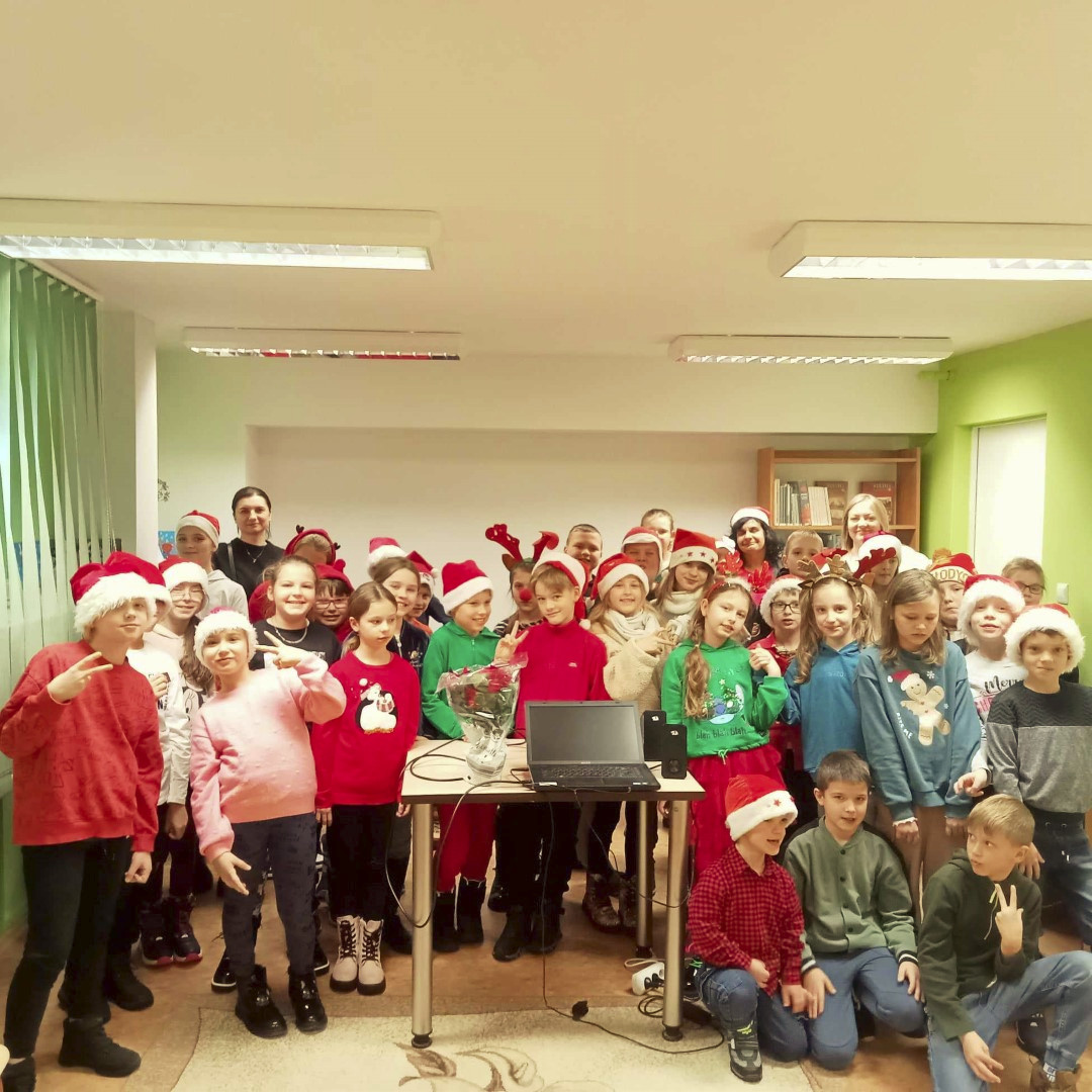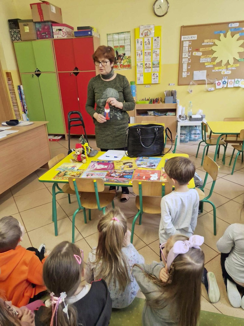 Niedawno były Mikołajki i z tej okazji dzieci wysłuchały opowieści Wiesława Drabika pt.: „Wielka zadyma z Mikołajem”. Gdy w ciepłym domu Agatka spogląda przez okno z komina wypadł Mikołaj i bezdomny kot. Agatka miała szczęście, że mogła wybrać sobie prezent. Jaki? Dzieci dowiedziały po wysłuchaniu tej zabawnej historii. Morał z tej opowieści jest taki, że potrzebujemy siebie nawzajem!