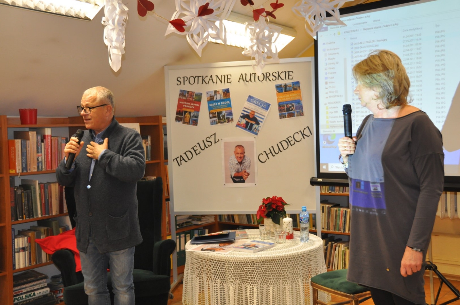 Podczas spotkania Tadeusz Chudecki pokazywał zdjęcia z miejsc, które odwiedził i opowiadał niezwykłe historie i anegdoty z nimi związane. Po spotkaniu chętnie odpowiadał na pytania dotyczące podróży i nie tylko!