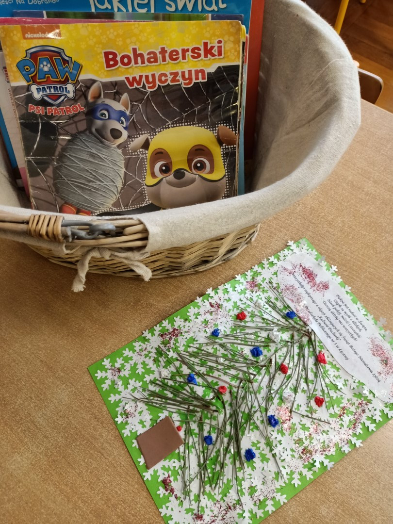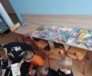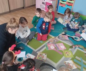 Spotkanie odbyło się w ramach akcji „Koszyk z książkami”. Po wysłuchaniu opowieści dzieci samodzielnie wybrały sobie i wypożyczyły książki do przeczytania w domu.
