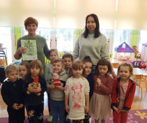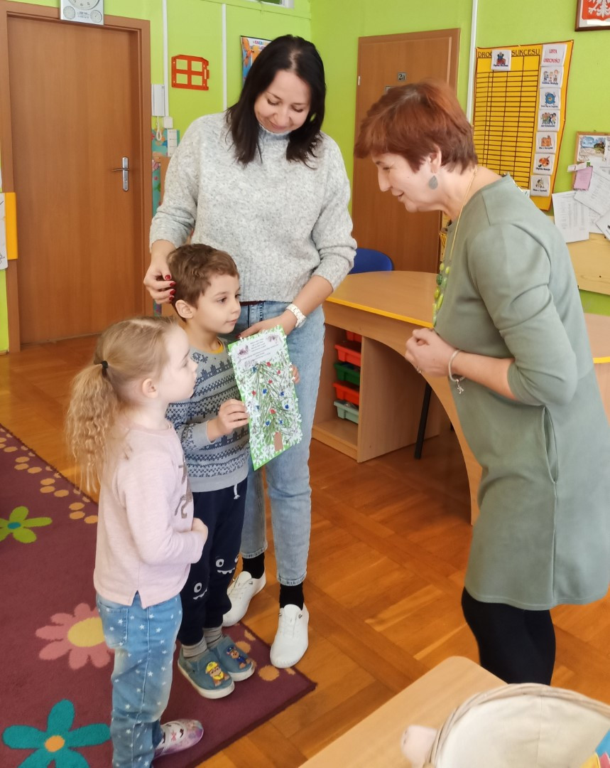 Na zakończenie miłego spotkania bibliotekarka otrzymała własnoręcznie przygotowaną kartkę z życzeniami z okazji zbliżających się Świat Bożego Narodzenia i Nowego roku. Dziękujemy Pani Ewie i dzieciom za miłe spotkanie.