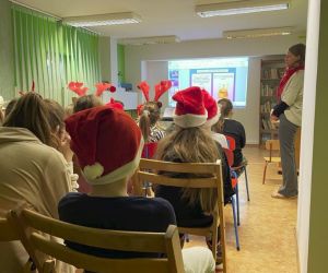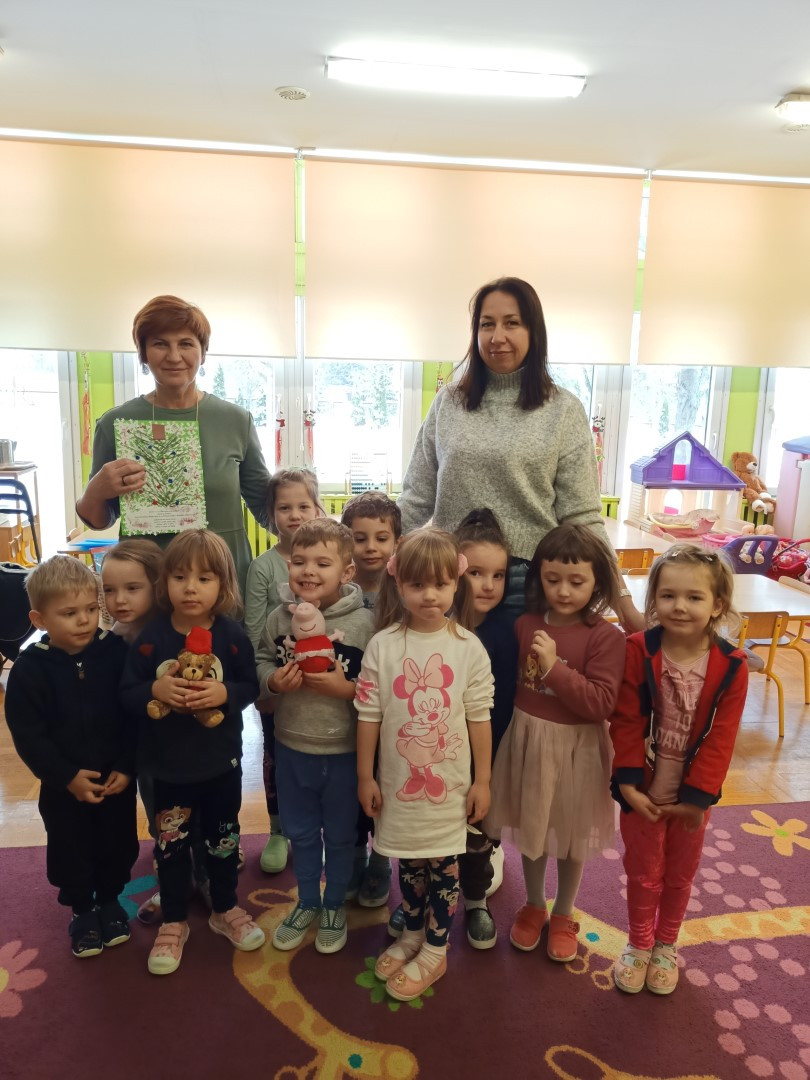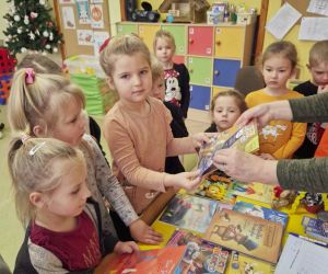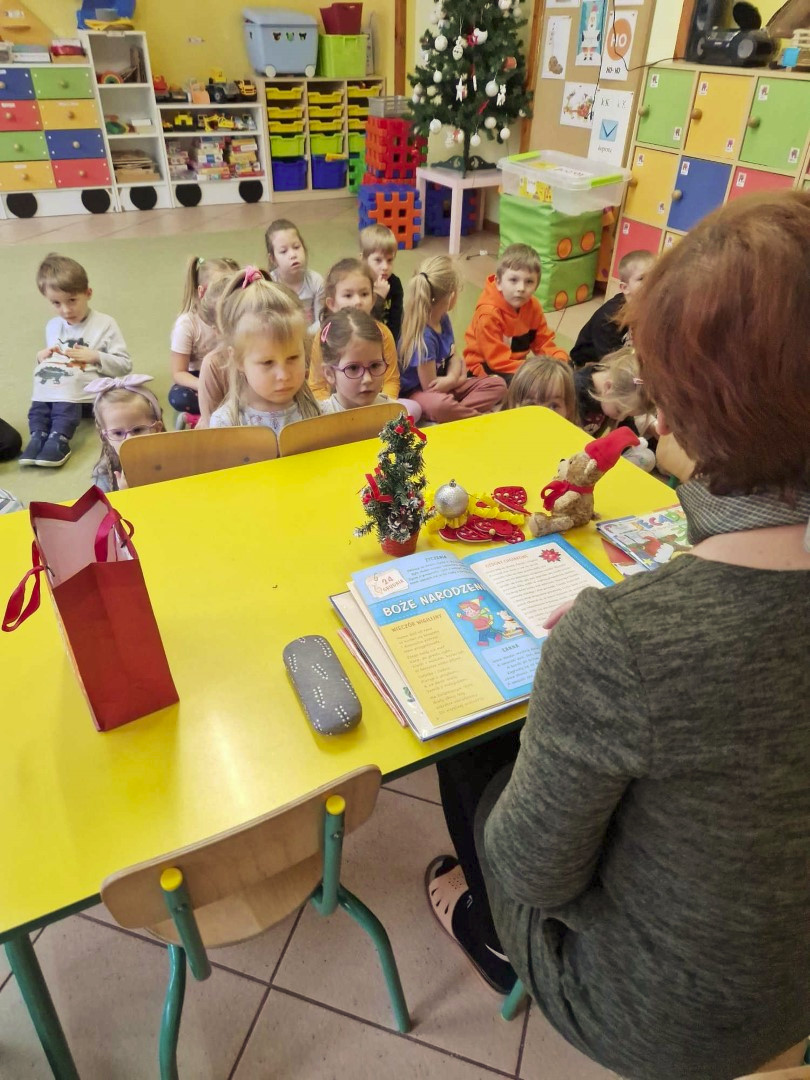 12 grudnia bibliotekarka z Filii nr 2 po raz pierwszy spotkała się z dziećmi z grupy „Misie” w Przedszkolu nr 4 w Łęcznej na głośnym czytaniu. Jako, że Święta Bożego Narodzenia tuż, tuż dzieci wysłuchały opowiadania Elżbiety Safarzyńskiej pt. : „Ozdoby choinkowe”. Przedszkolaki dowiedziały się , że własnoręcznie wykonane aniołki i bałwanki ,papierowe gwiazdki i piernikowe ludziki są najpiękniejsze bo w ich przygotowanie włożone jest wiele serca. Dzieci dowiedziały się o Wigilii, o ozdobach choinkowych, opowiadały o ubieraniu choinki i pieczeniu pierniczków. Odgadywały zagadki związane z zimą. Było to pierwsze spotkanie w ramach akcji „Koszyk z książkami”, dzieci samodzielnie wybrały sobie książki i wypożyczyły do domu. Każde dziecko otrzymało w prezencie zakładkę do książki i cukierka.