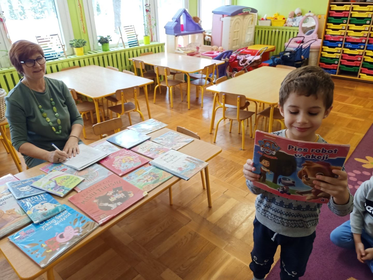 Na koniec wizyty przedszkolaki wypożyczyły książeczki.